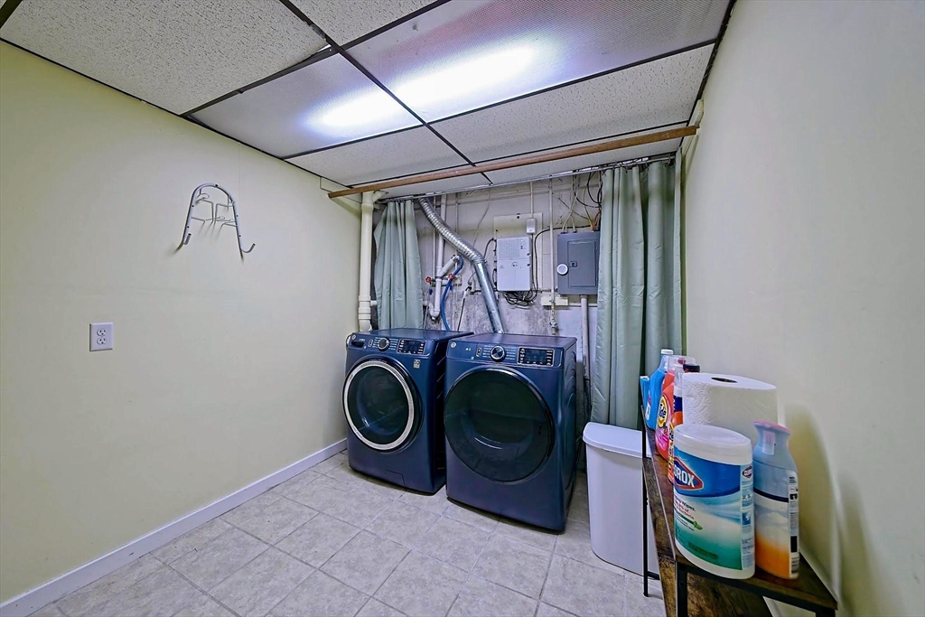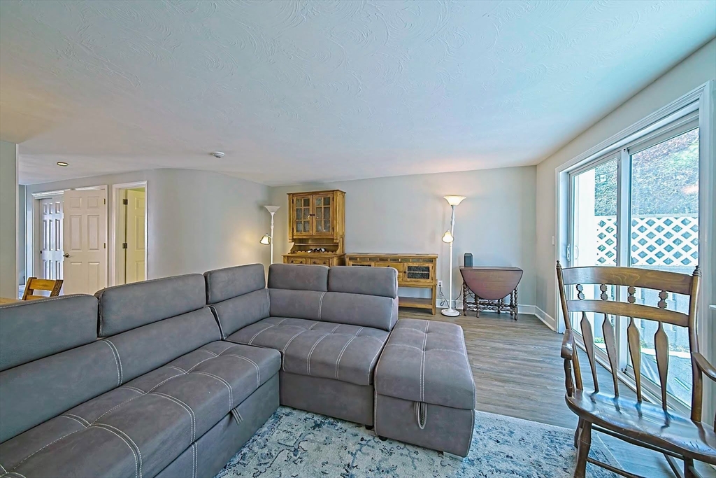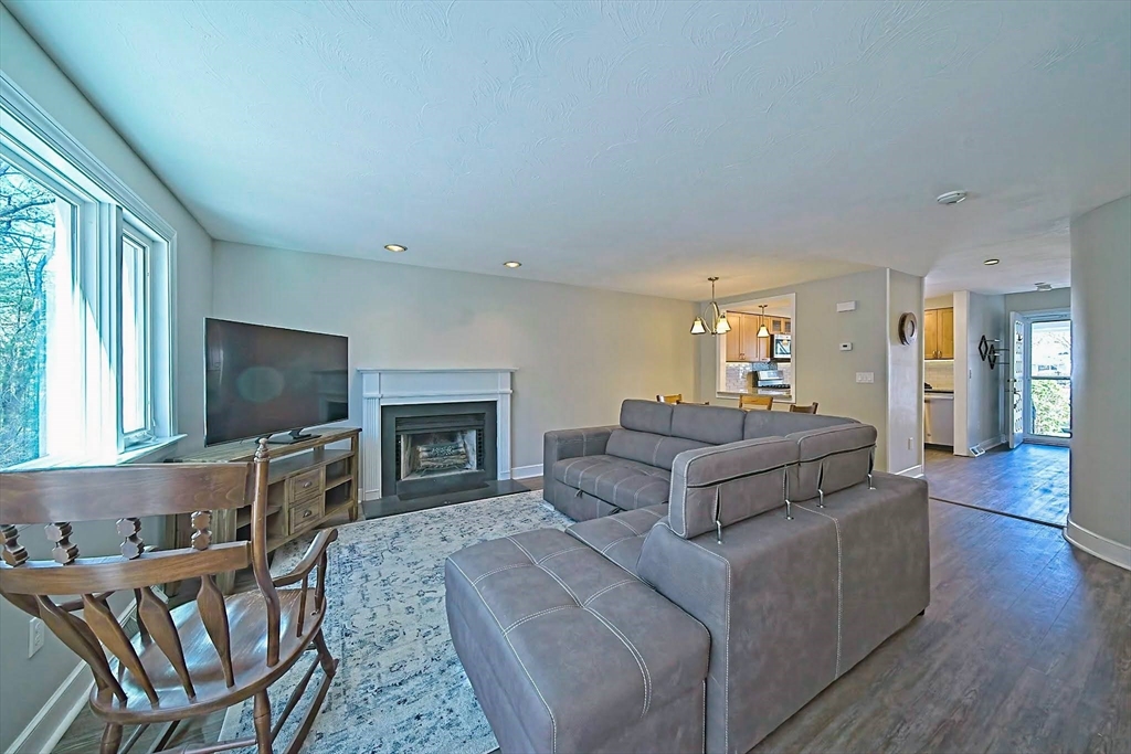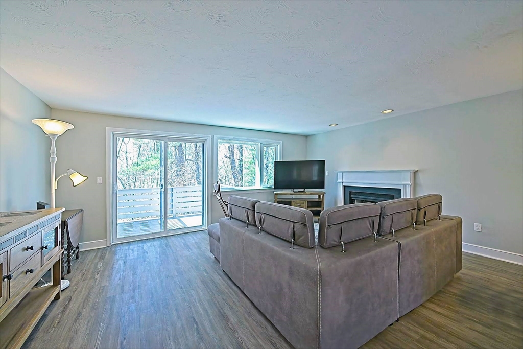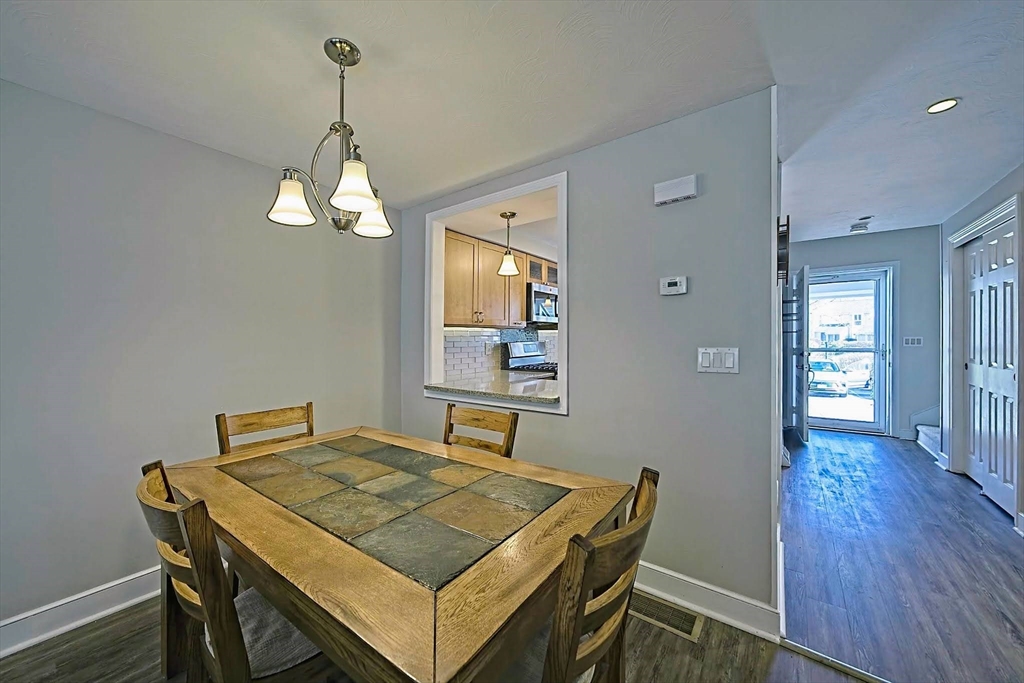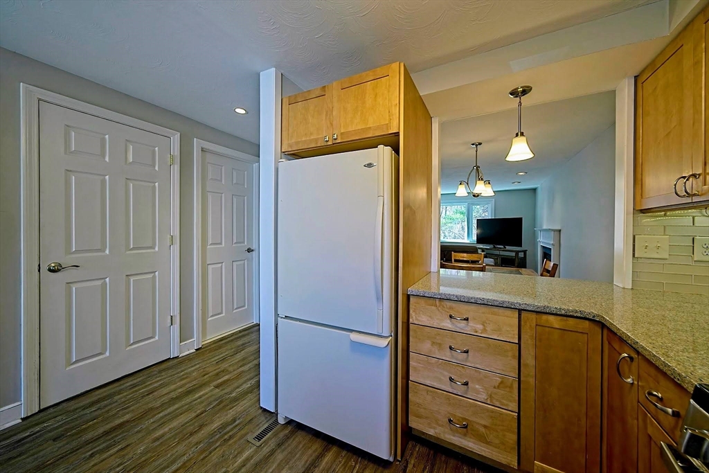 Welcome to Crane’s Landing! This BEAUTIFULLY UPDATED townhouse condo offers a bright, open layout with an updated kitchen featuring custom cabinetry, granite countertops, gas cooking, and most stainless kitchen APPLIANCES REPLACED 2025. The kitchen flows into dining and living areas, with a sliding glass door leading to your private deck—perfect for relaxing or entertaining. Main level includes a convenient half bath. Upstairs offers 2 spacious bedrooms and a full bath. The FINISHED WALKOUT LOWER LEVEL adds flexible space with a custom bar, seating area, laundry with WASHER AND DRYER REPLACED 2025, and storage, plus a 2nd sliding glass door to peaceful wooded surroundings. Enjoy central air, recent updates including HOT WATER HEATER REPLACED 2026, two deeded parking spaces, and community amenities including a pool. Conveniently located near Rt 495, shopping, and dining. Refrigerator to be conveyed as-is..Offers,if any, due Tue 5pm