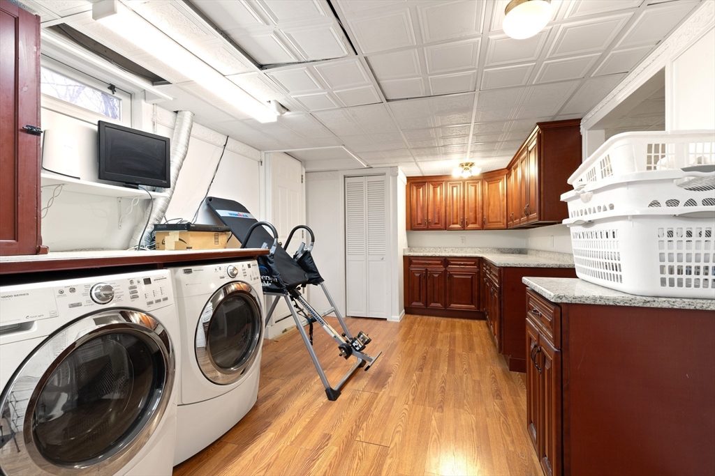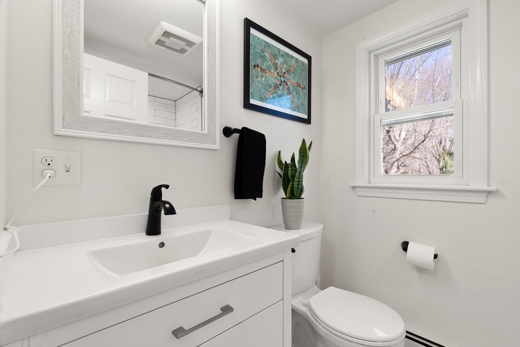 Beautifully updated, large dormered Cape in one of Sharon's most desirable neighborhoods, offering ideal blend of flexibility and contemporary updates. Renovated in '21-'22, this home features a stylish white kitchen with stone countertops and SS appliances (gas stove), updated baths, and HW flooring throughout first and second floors. A flexible first-floor bedroom offers the ideal option for a primary suite or home office while the spacious family room provides direct access to the yard. The side entrance into the mudroom adds great convenience and seamlessly connects to the attached garage. The finished lower level adds valuable space for recreation, work, exercise or guests with plenty of storage. Possibility exists to convert this to in-law/ADU. Major features include: GENERATOR, whole-house water filtration, irrigation and radon mitigation system. This home sits on a large level lot with storage shed, gazebo, firepit and outdoor lighting and is MOVE-IN READY!