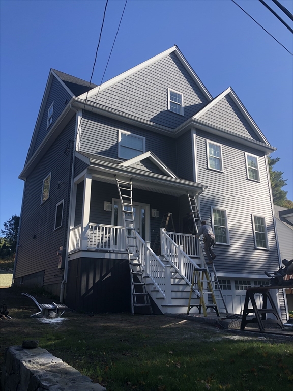Welcome to Waltham! Built by one of the cities most reputable builders. This beautiful oversized colonial stands tall with 4 gabled roof, farmers porch with recessed lighting, grand mason wall work, professional landscaping, stone block stairs. The kitchen has 9' ceilings, 48" cabinets, 7" crown molding, waterfall island, quartz countertops, 48" chefs stove, 6 burners, pancake flat iron, pendent lighting, recessed lighting, custom soffit, pantry open floor plan. Living room has a a gas fireplace and molding throughout, 5" baseboards, dining area, oversized back patio in a large fenced in lot. Office can double as a 4th bedroom, finished basement can be used as a gym, full bathroom in basement with waterfall mosiac. Masterbedroom has his and her closets, walk in closet, full bathroom wiith large stand up shower and seating bench, 4 shower heads including a rain fall and steamer. Double vanity both bathrooms. Attic is grand finished with cathedral ceilings and color recessed lighting!