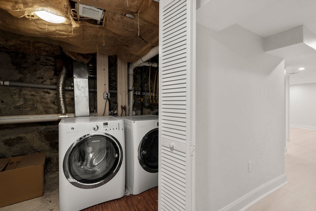 Charming and updated West Concord townhome in a prime location close to shops, restaurants, and the commuter rail. The first floor features an open living and dining area and an updated kitchen with wood cabinetry, stainless steel appliances, built-in window seat, excellent storage, and direct access to a private patio and yard. The second floor offers two well-sized bedrooms and a full bath with tub. The top-floor private primary suite includes skylights and a beautifully finished en-suite bath. Additional highlights include hardwood floors, ample storage, in-unit laundry, plus a lower-level bonus room ideal for play, fitness, or work-from-home. Second laundry area in the basement. Enjoy easy, low-maintenance living in historic Concord.