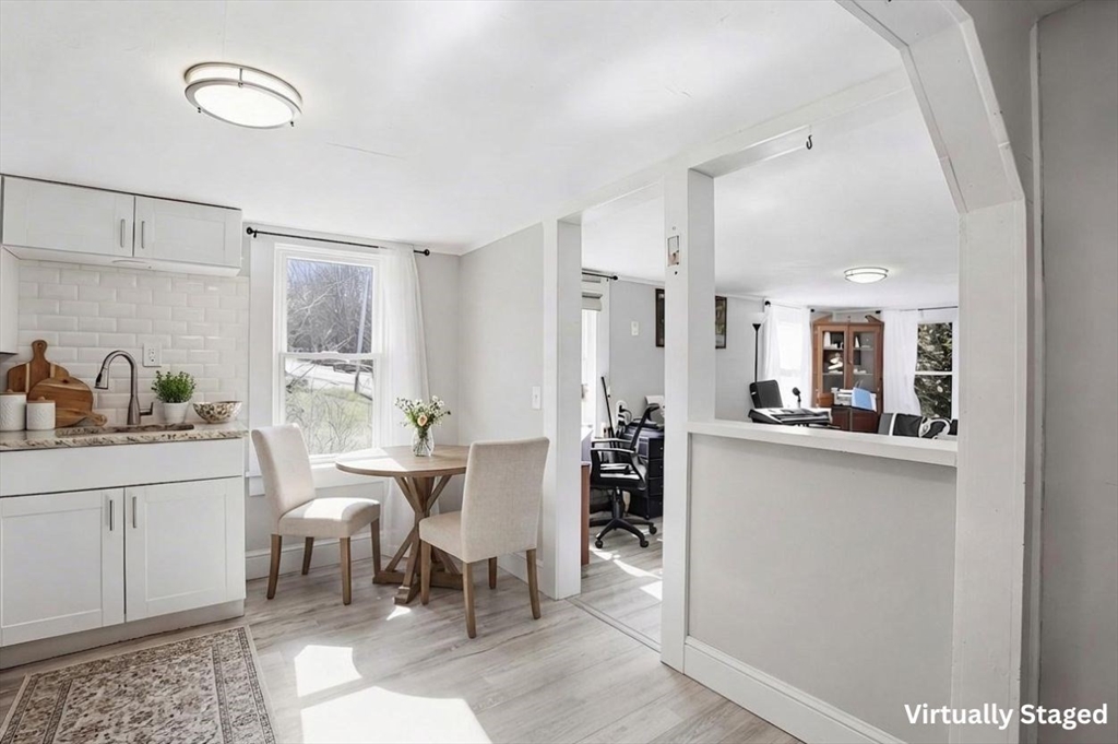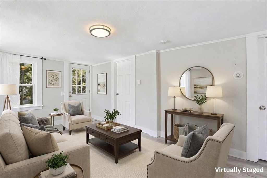 Enjoy the ease of single-level living in this inviting home! Enter into a welcoming, spacious living room filled with natural light—perfect for relaxing or entertaining. The updated eat-in kitchen features modern cabinetry, a stylish tiled backsplash, and stainless steel appliances, offering both function and flair. This home includes two comfortable bedrooms and a full bath, along with a convenient mudroom/laundry area for everyday ease. Outside, you’ll find a partially fenced yard, a large storage shed, and a paved driveway. The private backyard provides the perfect setting for outdoor gatherings or peaceful relaxation—don’t miss your chance to make this charming home your own!