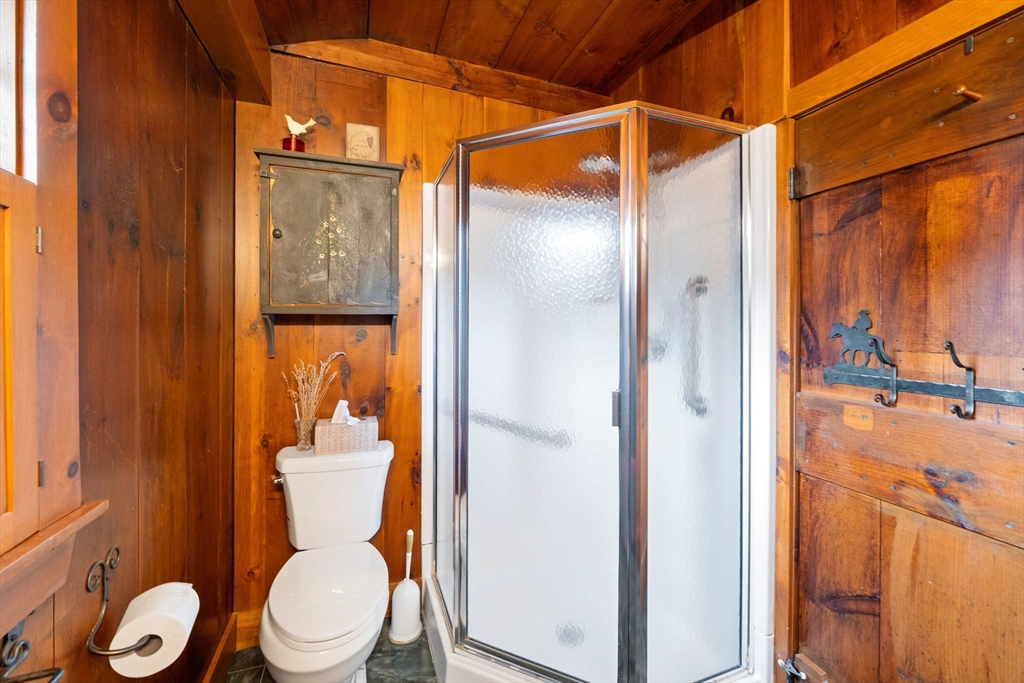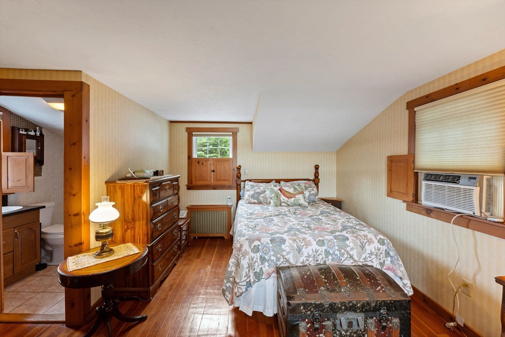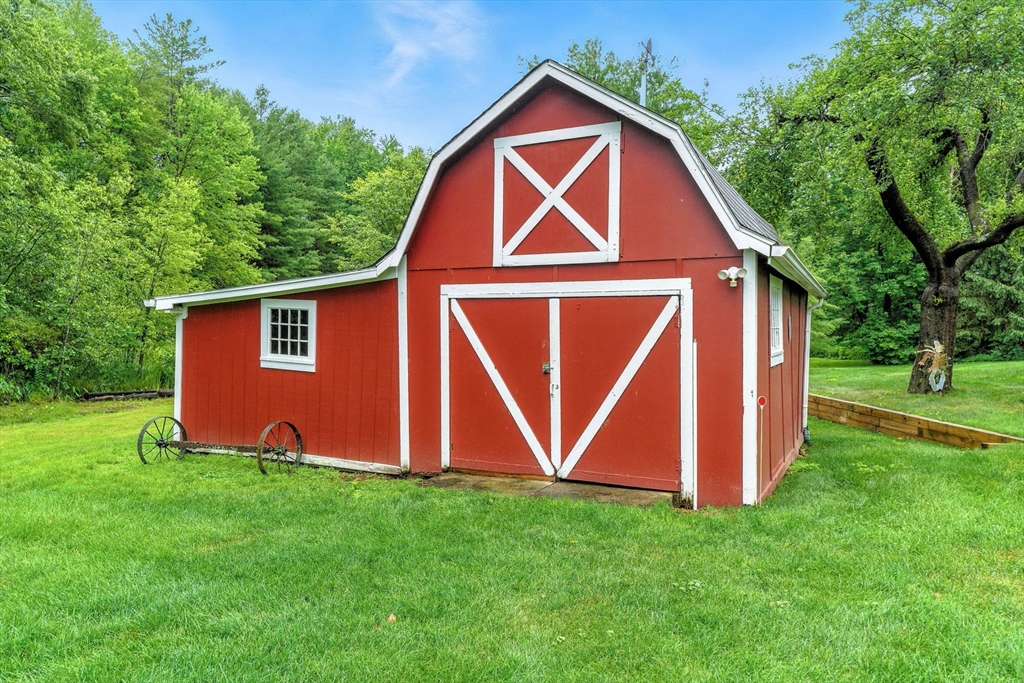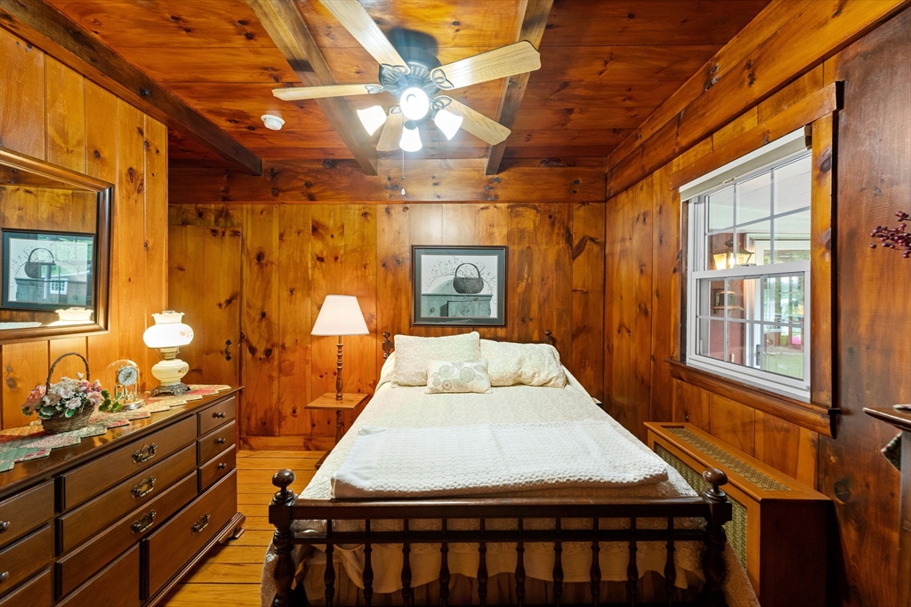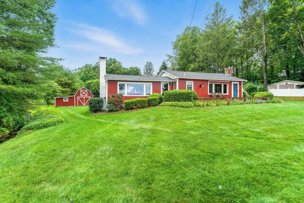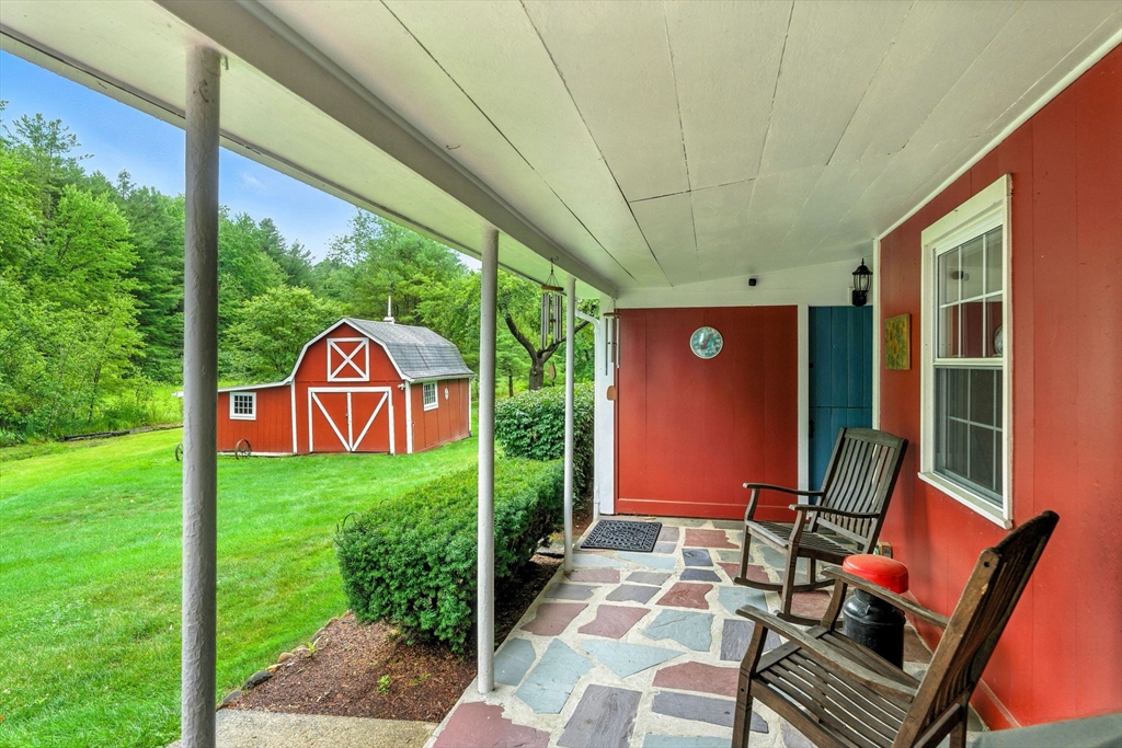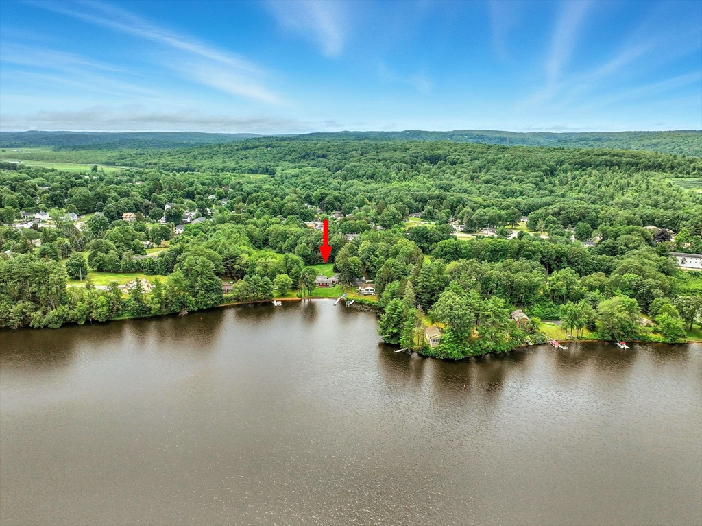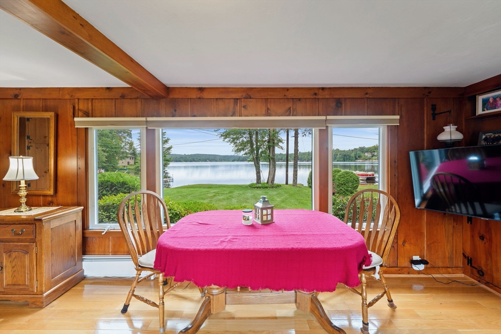 Escape to a peaceful waterfront retreat on Lake Wickaboag in West Brookfield! AMAZING opportunity to own waterfront property! This lovingly maintained one-level home built in 1951 is on a nice level 1.19 acre lot. The yard is perfect for entertaining many guests too on those summer days! As you enter in the front door from the covered patio, you have lake views from the den area that has a gas fireplace, hardwood flooring. The fully applianced kitchen has wood cabinetry, wood ceilings and tile flooring. Main bathroom has a shower. Bedrooms are good sizes with plenty of storage space. The bedroom suite has a nice office area leading into the bedroom with another full bathroom that has a tub. Custom millwork radiators thru-out. This home has an updated roof, windows, doors and gutters. There is a barn on the property as well. Garage has a shower. The patio overlooking the lake has an awning to enjoy some shade on those hot summer days! Generator and AC window units included. Don't wait!