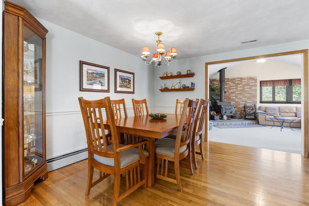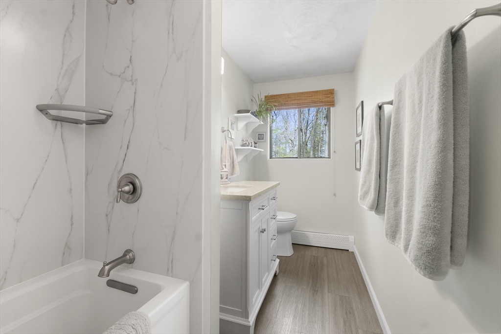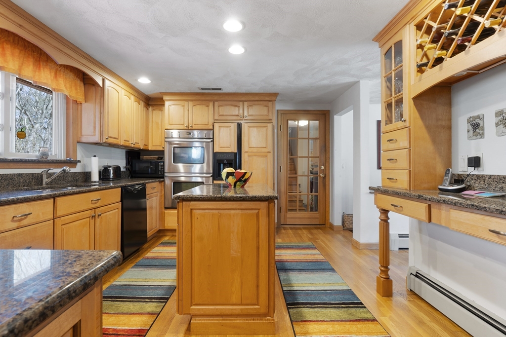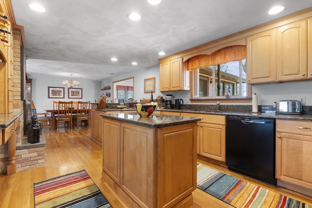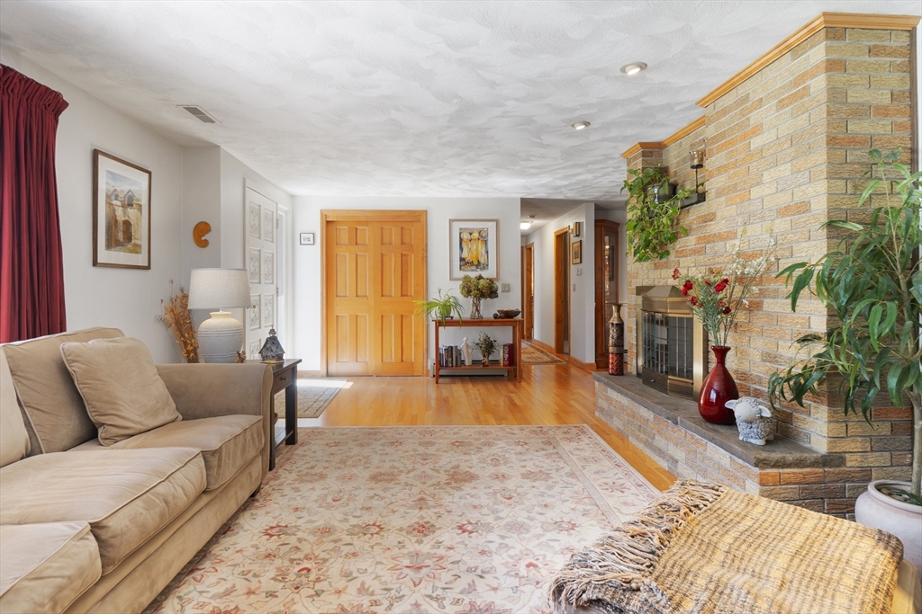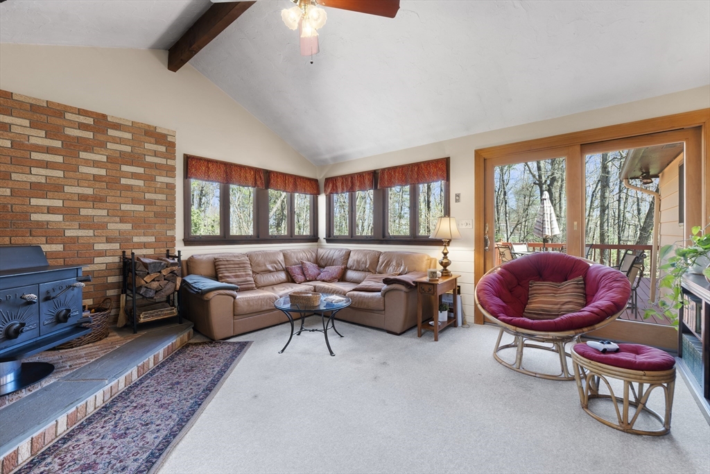 Charming 3-bed, 2.5-bath home in a sought-after Tewksbury neighborhood featuring a 2-car attached garage and a separate ADU above with private entrance, heating, kitchen, living room, 1 bed, and full bath—ideal for extended family or rental potential. The main home offers beautiful hardwood floors and a double-sided brick fireplace with gas insert, connecting the living room and kitchen. A sun-filled family room features a raised brick hearth with wood stove and walls of windows, with direct access to a spacious two-level deck overlooking the backyard. The partially finished walk-out basement includes a wood-burning fireplace (not recently used) and a built-in 180-gallon fish tank. A unique property offering versatility, charm, and great indoor-outdoor living in a convenient location.