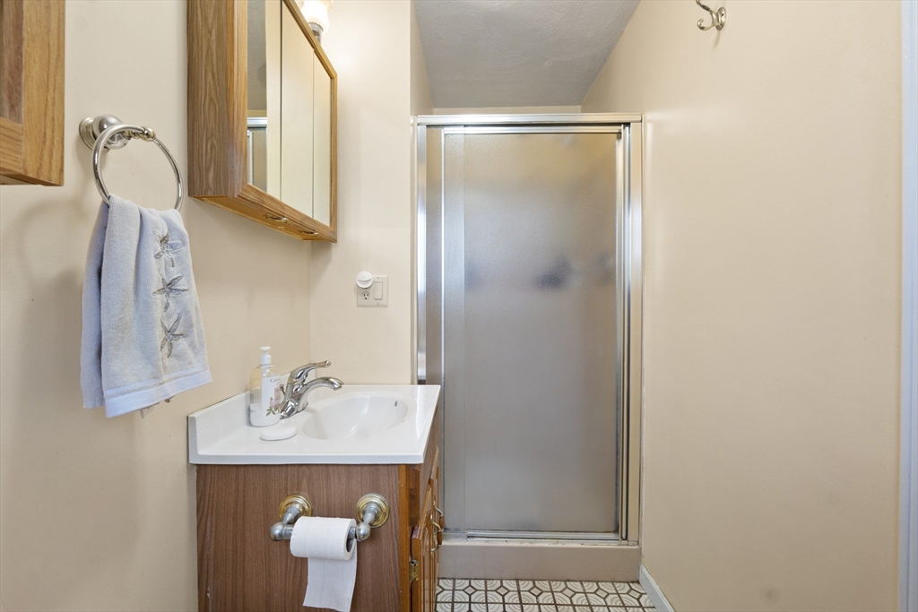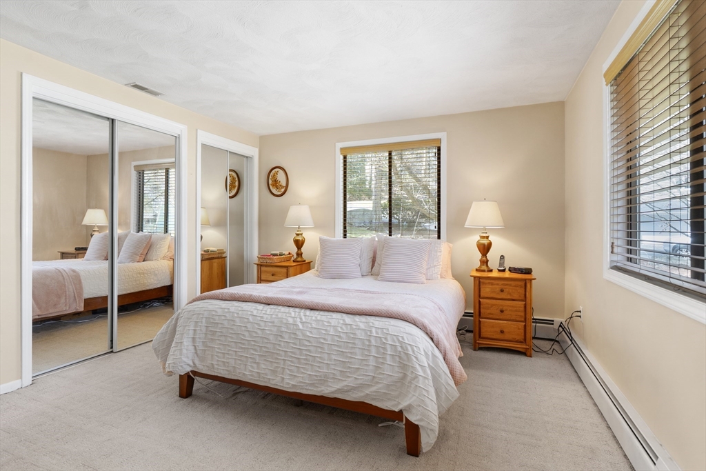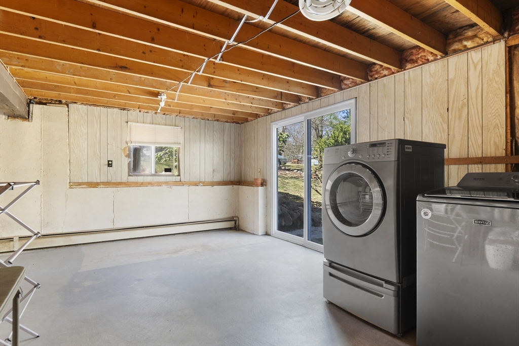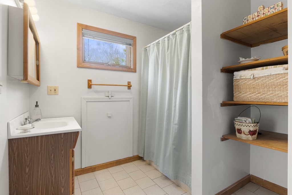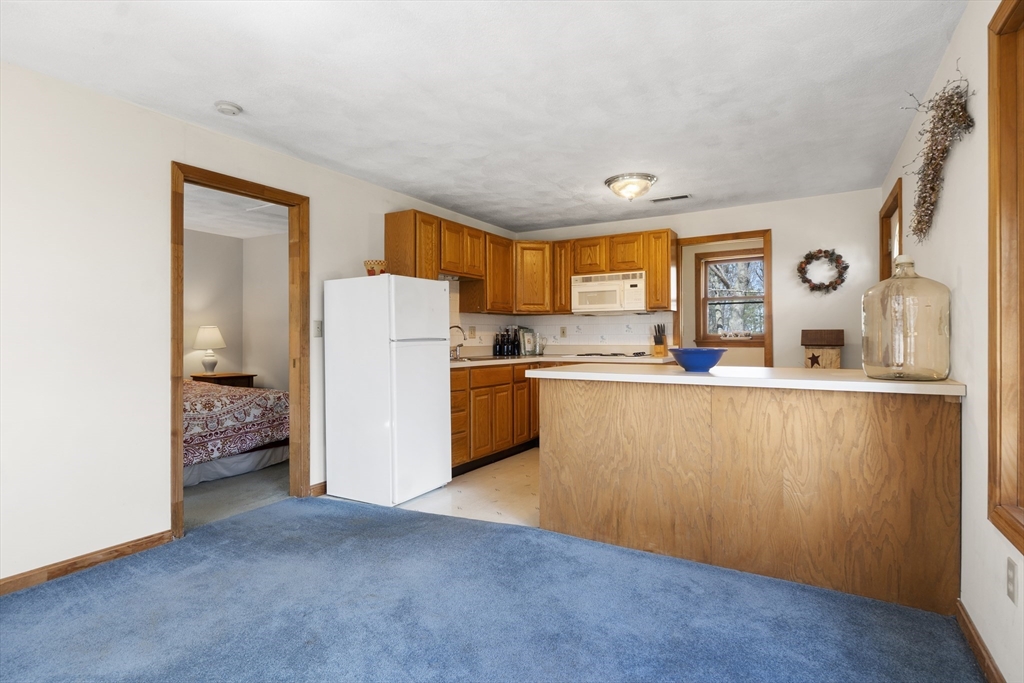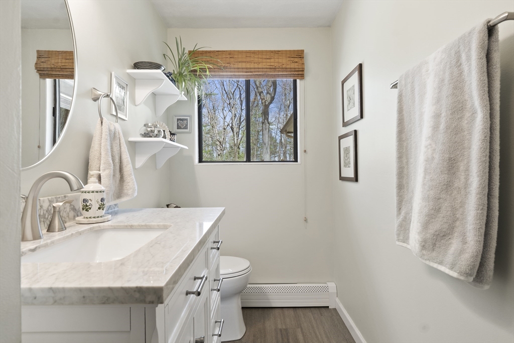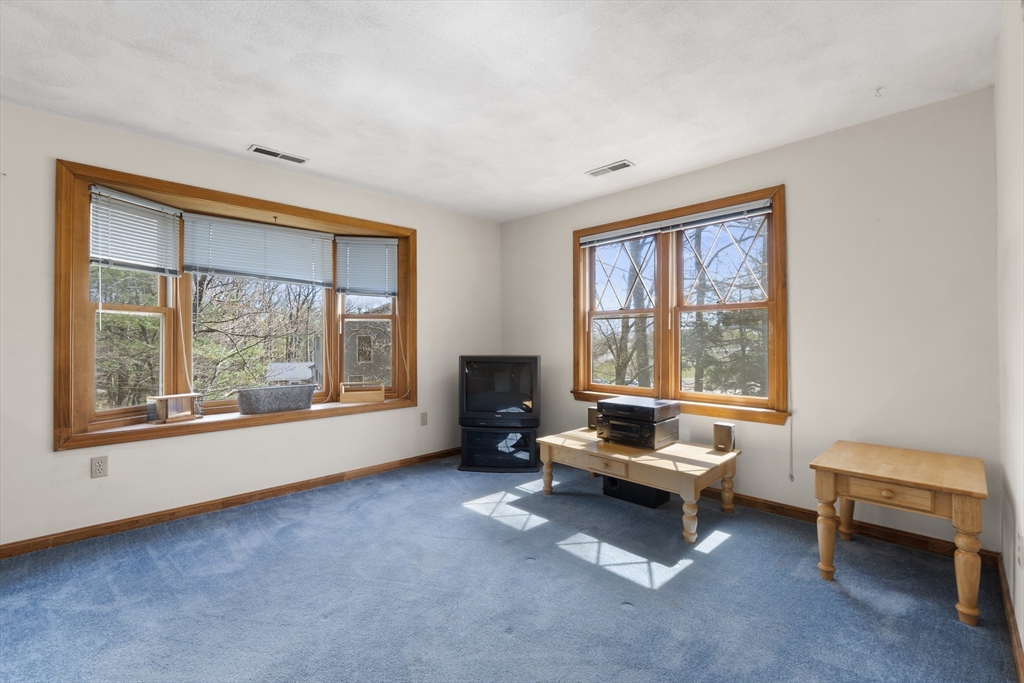 Charming 3-bed, 2.5-bath home in a sought-after Tewksbury neighborhood featuring a 2-car attached garage and a separate ADU above with private entrance, heating, kitchen, living room, 1 bed, and full bath—ideal for extended family or rental potential. The main home offers beautiful hardwood floors and a double-sided brick fireplace with gas insert, connecting the living room and kitchen. A sun-filled family room features a raised brick hearth with wood stove and walls of windows, with direct access to a spacious two-level deck overlooking the backyard. The partially finished walk-out basement includes a wood-burning fireplace (not recently used) and a built-in 180-gallon fish tank. A unique property offering versatility, charm, and great indoor-outdoor living in a convenient location.