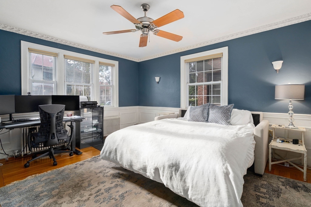 OPEN HOUSE 4/17 from 4pm - 5pm - AVAILABLE JUNE 1 - Beautiful and spacious first floor condo in the coveted Pondside neighborhood of JP with PARKING. The charming historic tudor home has period details throughout, a sprawling layout, copious amounts of closets for storage and custom builtins. Features include a fully equipped kitchen, large bedrooms, designated dining room, recently renovated bathrooms, working fireplace, enclosed porch, driveway parking, central air, new washer & dryer, and a shared fully fenced in backyard. There is an enormous basement for storage that is exclusive to unit 1. The property is adjacent to both Arnold Arboretum and Jamaica Pond, plus easy access to Centre Street shopping district, the Orange Line, only 2 miles from Longwood hospitals. SEE FLOOR PLAN FOR DETAILS