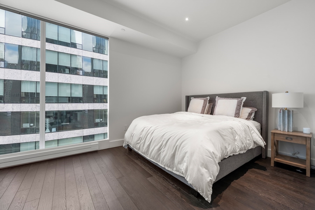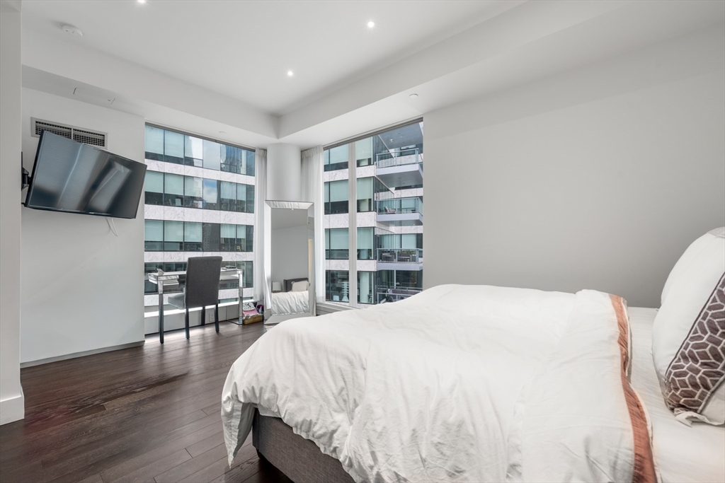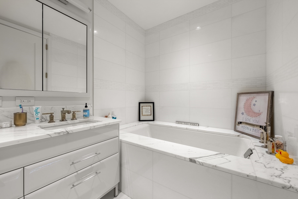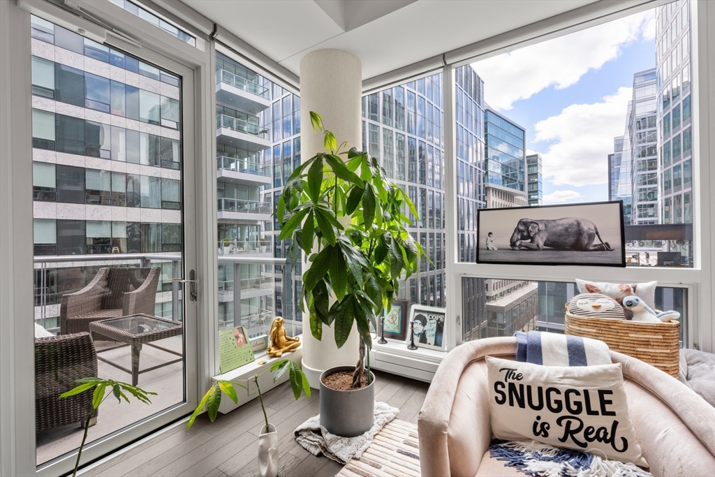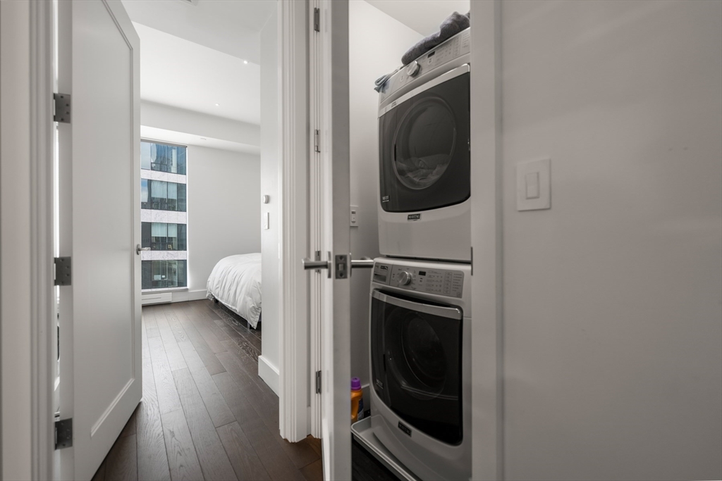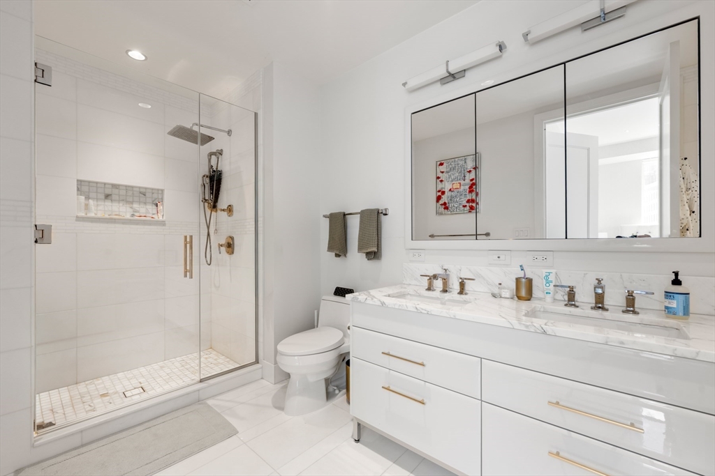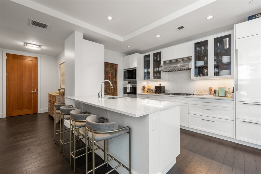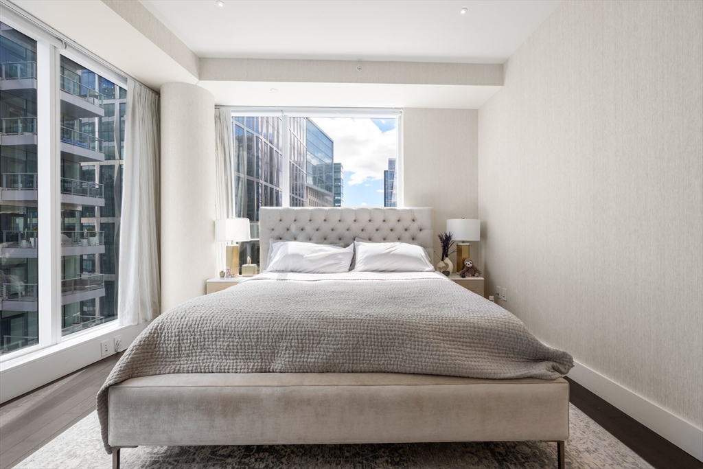 Welcome to 22 Liberty Drive, a premier luxury waterfront residence. This corner unit features 10-foot ceilings and floor-to-ceiling windows, filling the space with natural light. The chef’s kitchen offers high-gloss white cabinetry and top-tier appliances including Wolf, Miele, Sub-Zero, and a wine chiller. The open living and dining area leads to a private balcony. The primary suite includes stunning water views, a marble bath with soaking tub, glass shower, double vanity, and custom walk-in closet. A spacious second bedroom and full bath complete the layout. Additional features include custom storage, electric shades, and 1 garage parking space. Amenities include 24-hour concierge, fitness center, and a waterfront lounge terrace. Located near Seaport dining, shopping, Harborwalk, and Logan Airport.