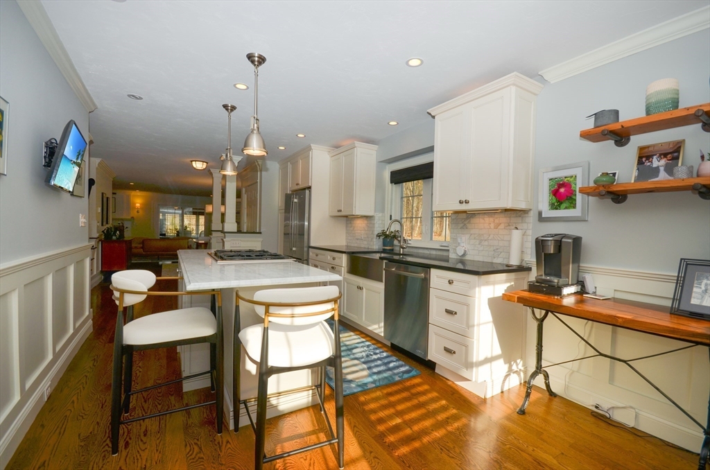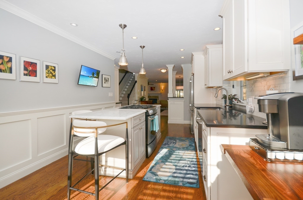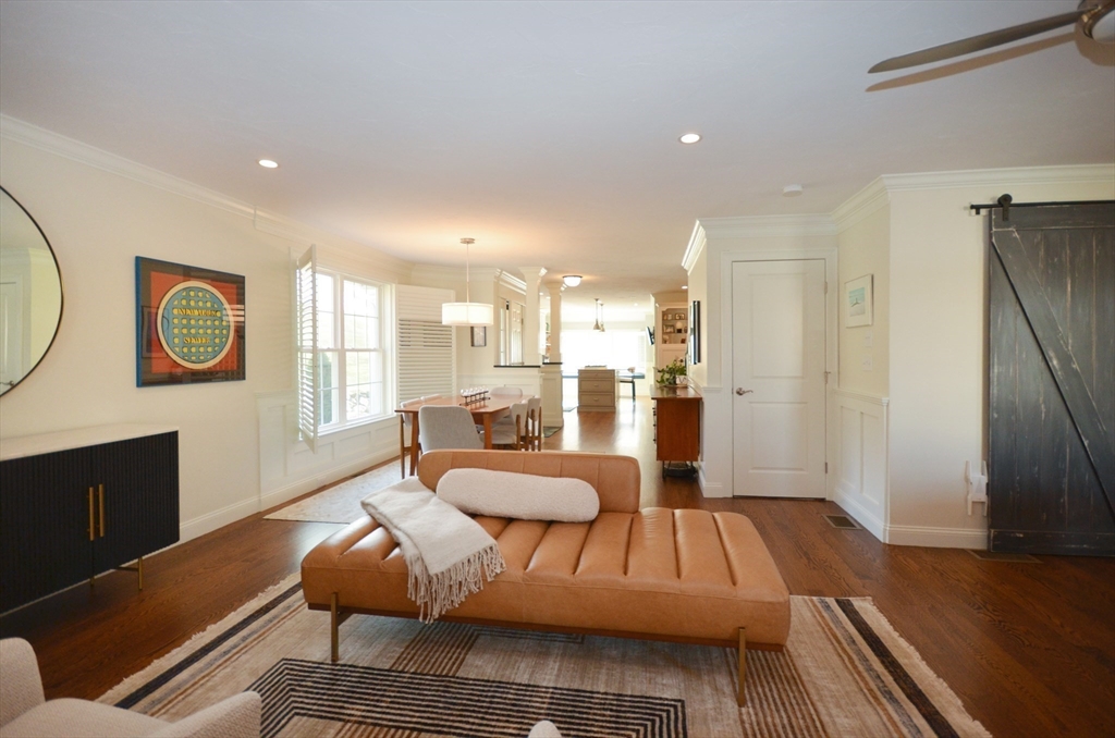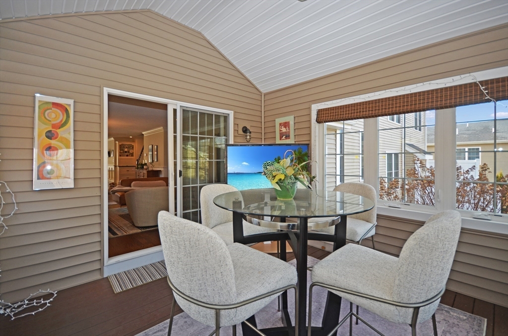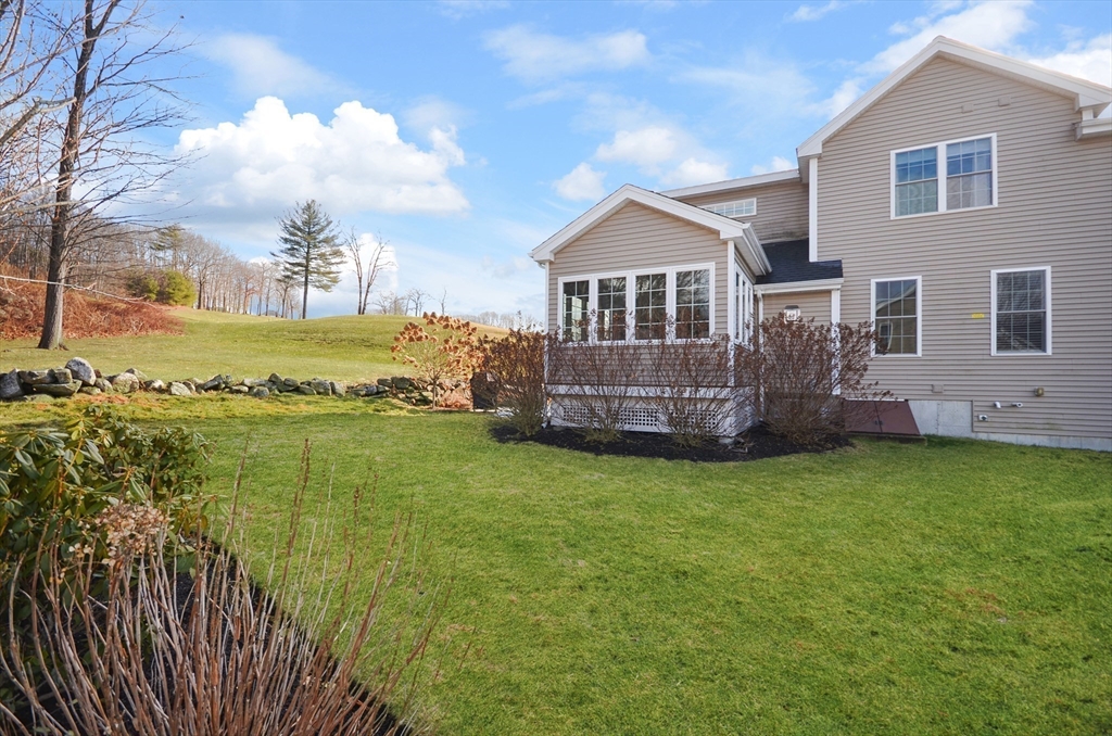 Welcome to Providence Road Commons! This custom end-unit offers privacy and scenic golf course views, set along the 13th hole at Highfields CC. Thoughtfully designed outdoor spaces include elegant stone walls, a stamped concrete patio, lush perennial gardens, and a stunning three-season vaulted room—perfect for relaxing or entertaining. Interior highlights include hardwood floors throughout, modern trim, and thoughtfully placed lighting. The kitchen features a marble island, window seat, and ample storage, opening to a versatile dining/family room area. First-floor home office is ideal for today’s lifestyle.Upstairs, the impressive primary suite serves as a private retreat, complete with a beautifully appointed, spa-like bathroom. Two additional generously sized guest bedrooms, a convenient second-floor laundry area complete the upper level. This exceptional home combines thoughtful design, efficient gas utilities, modern comfort, and a prime location—ready to welcome its next owner.