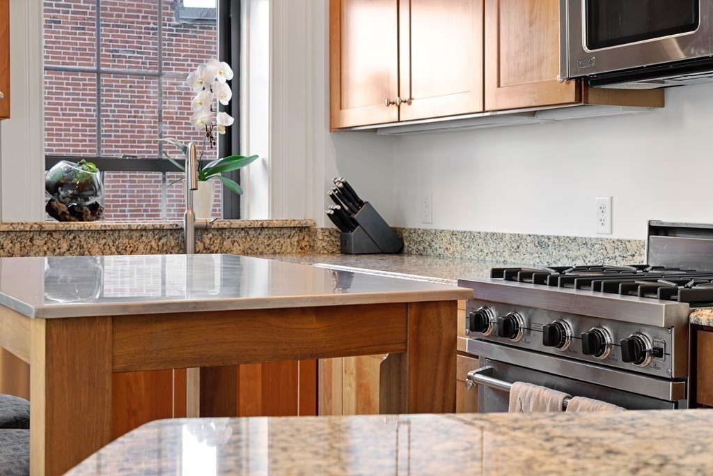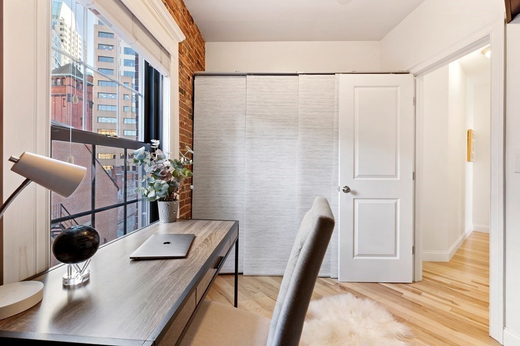 BROADLUXE! AVAILABLE 9/1. 7th floor front-facing 1BR plus separate office/nursery and 2 full baths in premier downtown location. Steps to Rose Kennedy Greenway, Financial District, Waterfront, Faneuil Hall, T, highways, and airport access.Bright, sunny unit with oversized windows and private terrace. Open living/dining with wall of windows and remote-controlled blinds. Chef’s kitchen w/Sub-Zero refrigerator, Sub-Zero wine fridge, Viking gas range, abundant cabinetry, generous counter space, breakfast bar, and center island.Spacious primary bedroom w/en suite full bath. Bonus room w/exposed brick and large window ideal for office or nursery. Second full bath and in-unit laundry. Hardwood floors throughout and central air.Boutique elevator building w/superintendent and private basement storage. AVAILABLE 9/1