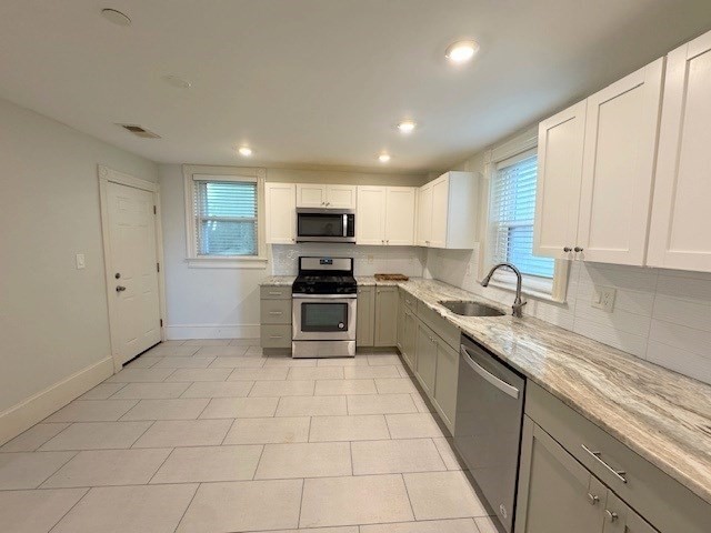 Available May 1st. Spacious 2Bed 2Full Bath Condo, w/Central AC, In-Unit Laundry, Private Outdoor Space, Extra Storage, & modern finishes. Located in East Boston, Orient Heights neighborhood. Literal steps to the Suffolk Downs Blue Line station and Orient Heights Station. Two blocks off of Route 1A, minutes to I-93, quickly accessible to Belle Isle, Winthrop, and endless commercial activity, storefronts, dining & entertainment. The unit is located on a raised first floor of a three-unit condo building, with a private entrance. As you enter, you are greeted by a nice entranceway with large coat closets, and a hallway that leads to all areas of the apartment. There are two large bedrooms with good closet space, 2 spacious full bathrooms, and a great layout between an absolutely enormous eat-in-kitchen and a big living room. The kitchen and living room share an open layout great for entertaining. Off the rear of the unit is a private patio and in the basement you will find a storage area.
