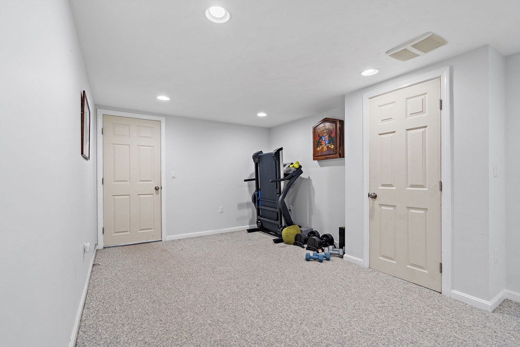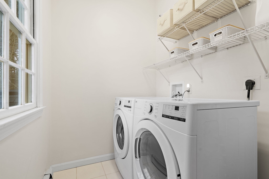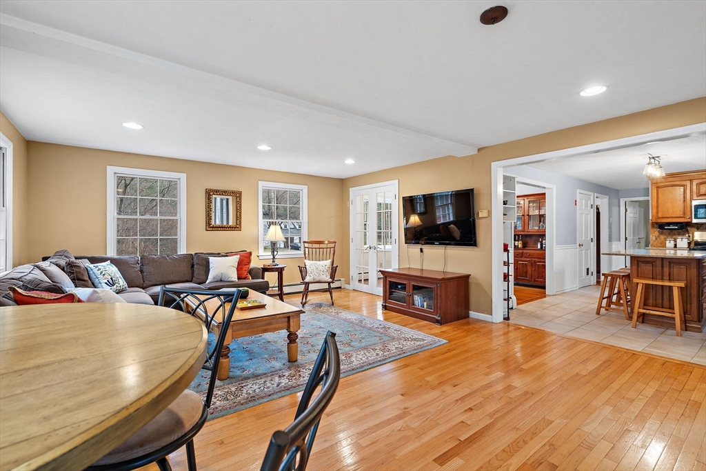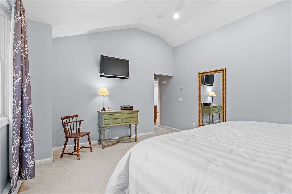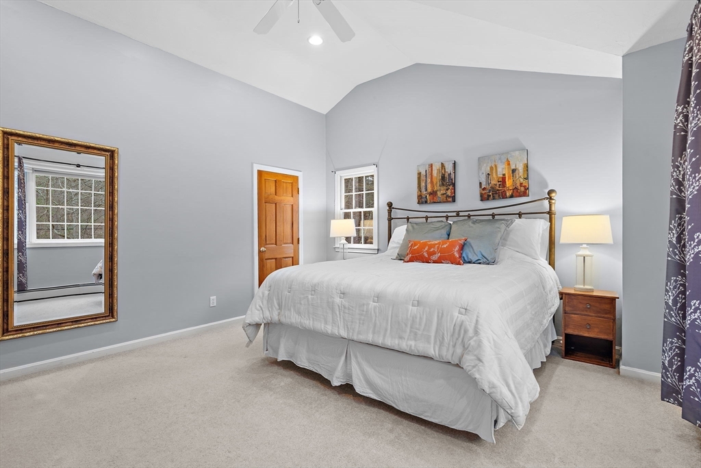 This wonderful gambrel home is located on a quiet cul-de-sac and is set well back off the road. Inside, you'll find a welcoming first floor with versatile spaces perfect for entertaining. Light and bright, the living room features a brick fireplace and hardwood floors. The dining room and family room also have hardwood with a set of French doors that connect the two spaces. A slider leads out onto the screened porch with attached deck. The kitchen features stainless steel appliances, quartz counters and a generously sized island. There is an additional home office space with custom built-ins. The second floor primary suite is accented with vaulted ceiling and features an ensuite bath with shower, soaking tub, double sinks and attached laundry room. Three additional bedrooms and a full bath round out this floor. The finished basement has a large mudroom that leads directly out to the driveway. The detached two car garage has a second floor space ideal for studio, workspace or game room