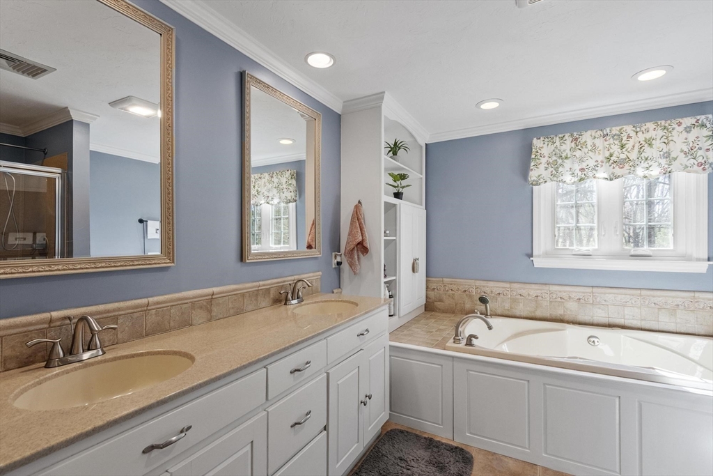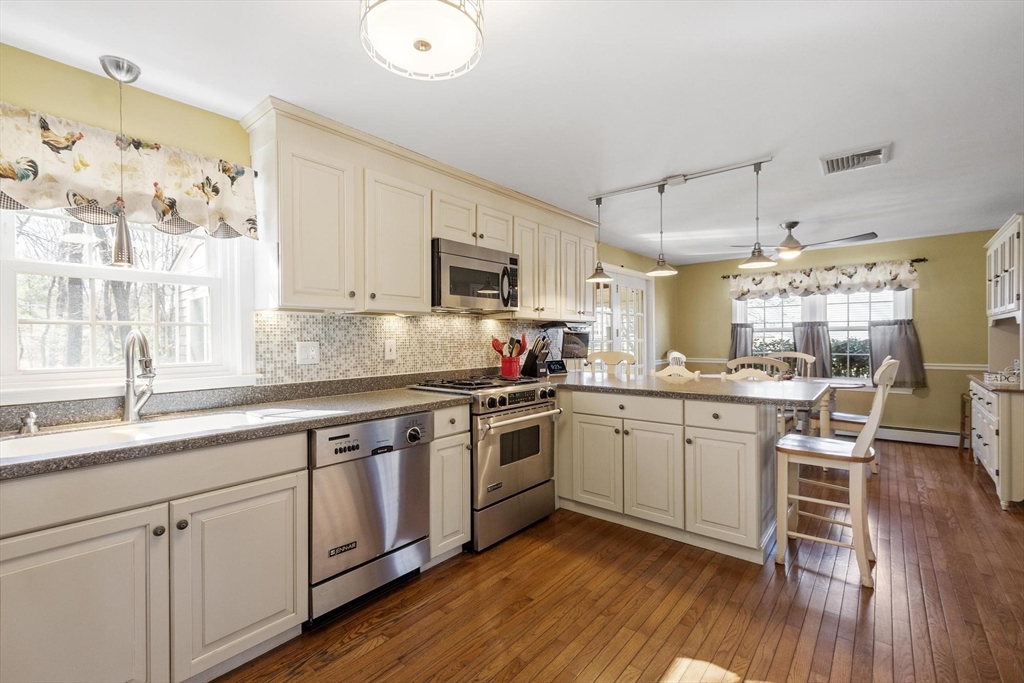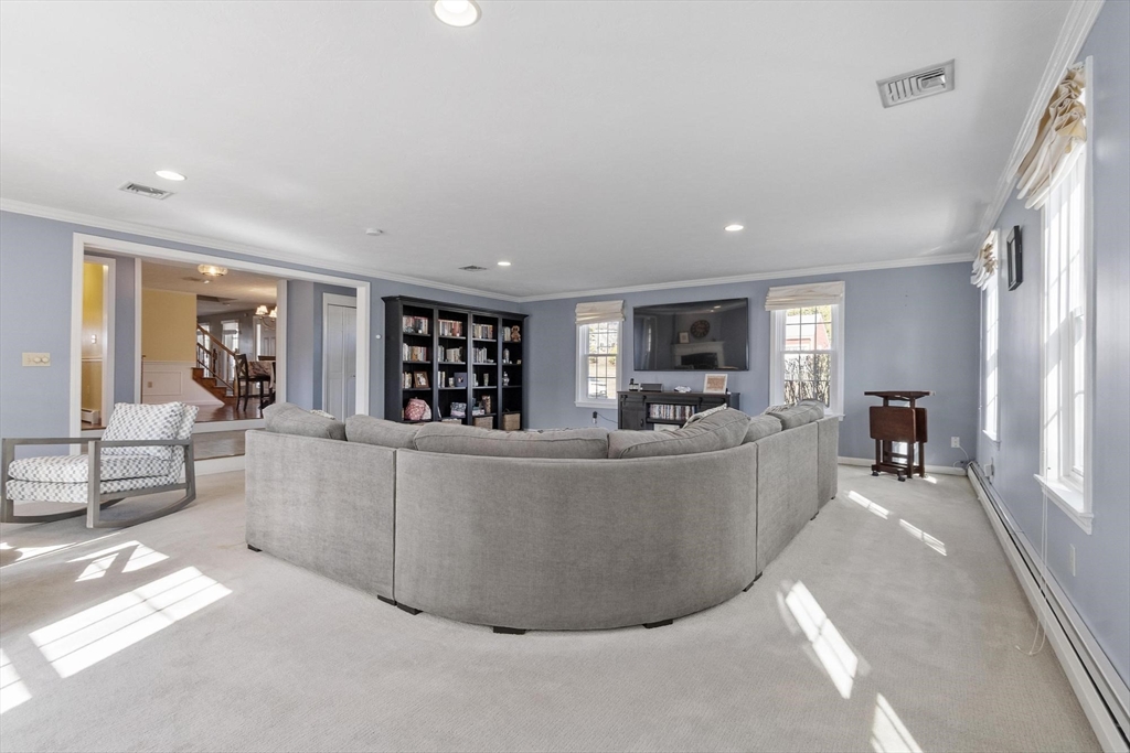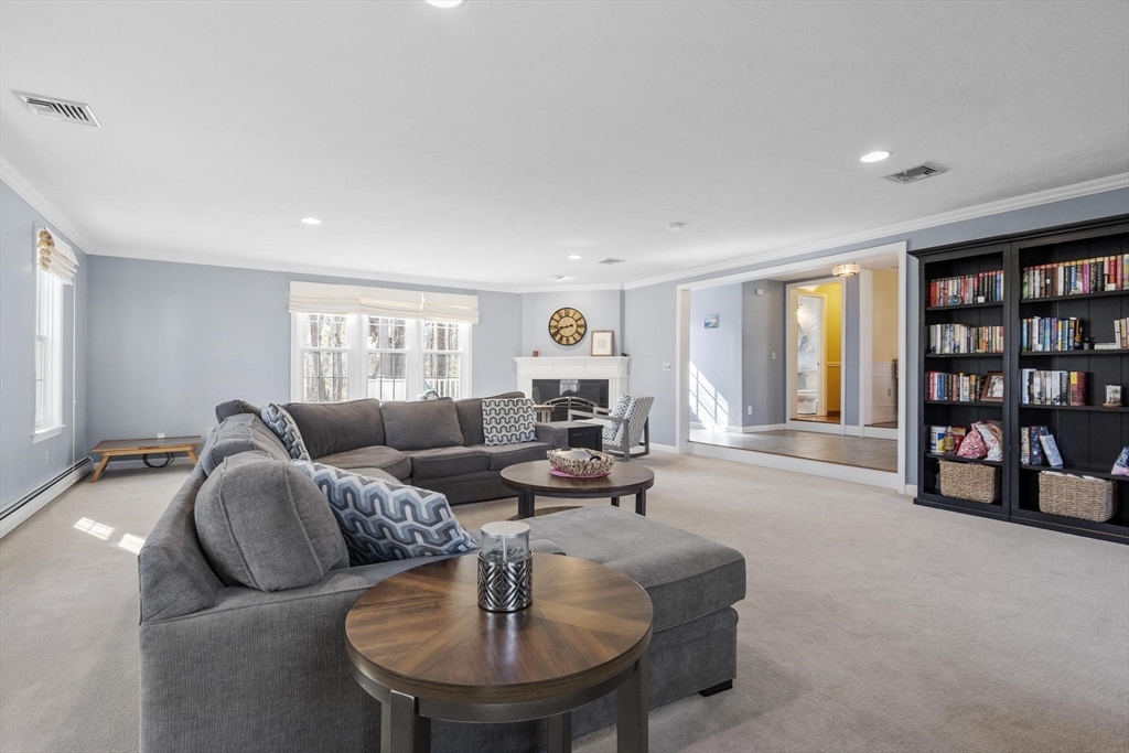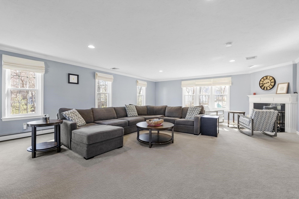 4-bedroom, 3.5-bath Colonial offering over 3,000 sq ft of living space, complete with two primary suites, and a finished lower level. A charming farmer’s porch leads into a flexible layout featuring a den, formal dining room with detailed wainscoting and 2nd entry mudroom. The expansive family room, centered around a gas fireplace, flows seamlessly into a eat-in kitchen with stainless steel appliances, gas cooking, granite countertops, and a generous peninsula, perfect for both everyday living and entertaining. A light-filled 3-season sunroom and half bath with laundry complete the main level. Upstairs, the primary suite offers a sitting area, custom California closets, and a spa-inspired bath, while a second en-suite bedroom provides ideal flexibility for guests or multi-generational living. Two additional bedrooms and a full bath. The LL is designed for recreation and productivity, featuring a game area, wet bar, and office space. Outdoors, enjoy an oversized deck & firepit area.