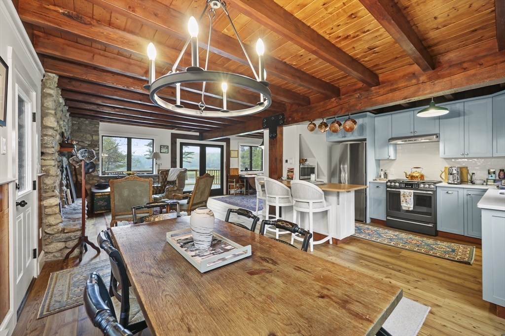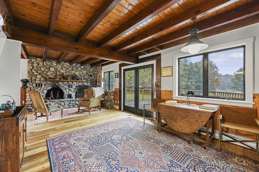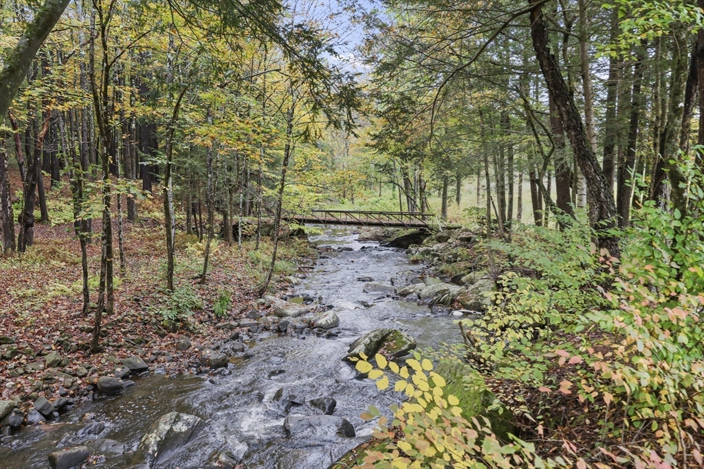 Fabulous Estate Property with ponds, rushing streams, huge acreage and a gem of a house. The 220 acres abuts state forest and beautiful Walker & Spark Brooks both run through the property. The 2BR/2.5B home has lovely views of the pond and hills beyond, and was totally renovated to the highest standards in 2023 and 2024. Native stone fireplace, heart pine floors, new kitchen, baths, mahogany decks, outdoor shower, heating, windows & insulation. There is a large post & beam barn plus stone foundations from an earlier barn. The fishing is great and trails have been cleared for hiking and horseback riding. Total privacy with 4,000 feet of road frontage. Conveniently located near Tanglewood, Jacobs Pillow and most other Berkshire cultural attractions as well as state forests and wildlife management areas. New septic. Under 3 hrs. to NYC, 2.5 hrs. to Boston.