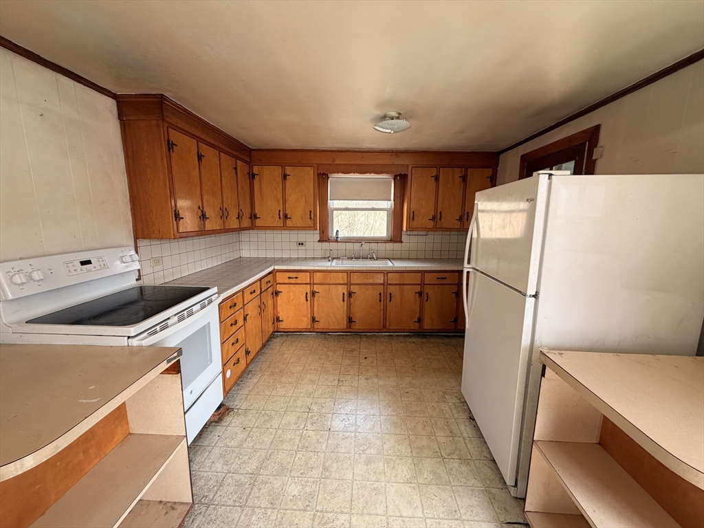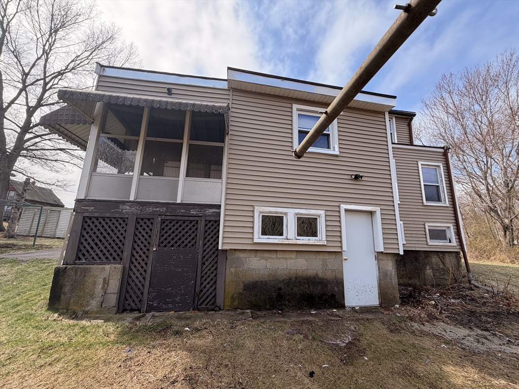 This bungalow/cottage style home is located on a dead end street and offers vinyl siding, replacement windows, eat-in kitchen, dining room, living room and 3-4 bedrooms. There is off street parking, large lot, storage shed, some hardwood flooring, full basement and an enclosed porch.
