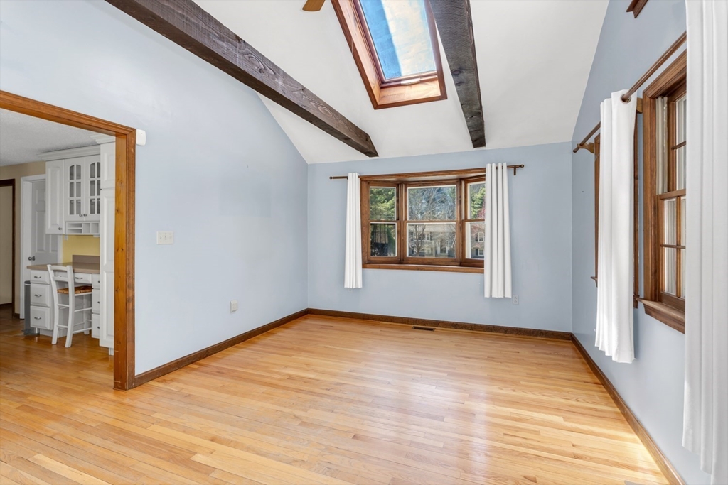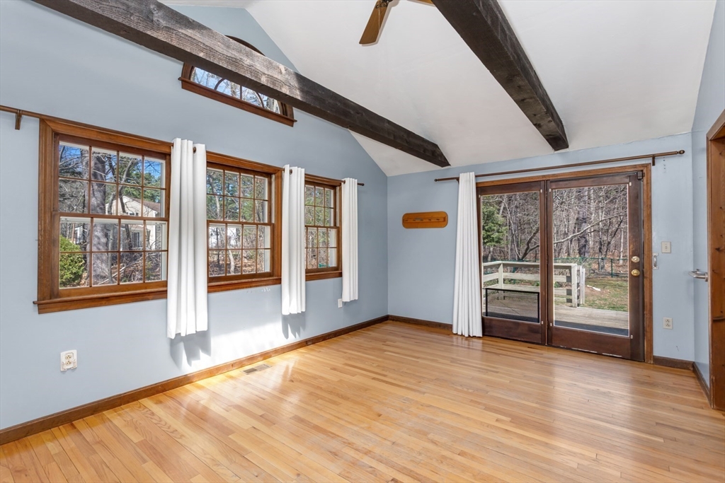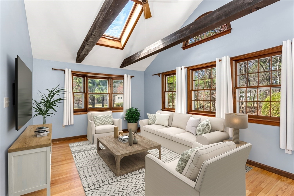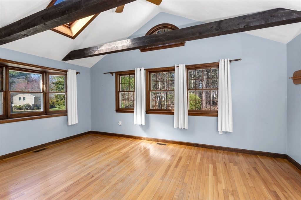 It's not often that a one owner home (in the family for over 50 years) comes along but HERE IT IS! Situated on a 3/4 acre private, wooded lot in one the most sought after Millis neighborhoods, this home is now ready for one lucky buyer. The cabinet packed kitchen boasts a center island, pantry, Corian counters, cabinet lighting & SS appliances. The bright, window packed adjacent FR has a skylight, ceiling fan, cathedral ceiling & beams and it stretches from the front to the back of the house. On the flip side of the home, you'll find a more formal LR w/ wood burning fireplace as the main focal point. A dining room & 1/2 bath complete the 1st floor. Upstairs you will find 4 generous sized bdrms & a full bath w/ a new bath fitter tub. Step out to the back deck & enjoy the outdoors & the large, wooded lot (fenced) w/ a storage barn out back. Added bonuses: NEW Heating system 2024, NEW bulkhead 2025, central air, hardwoods, TOWN WATER/SEWER & GAS....Don't miss this one!