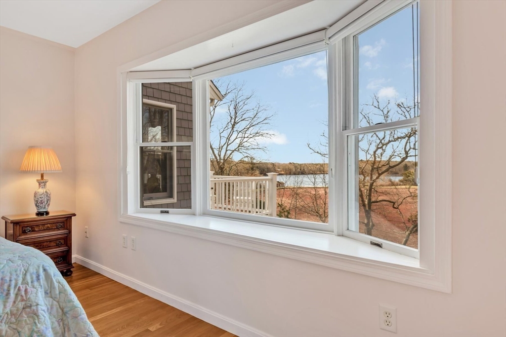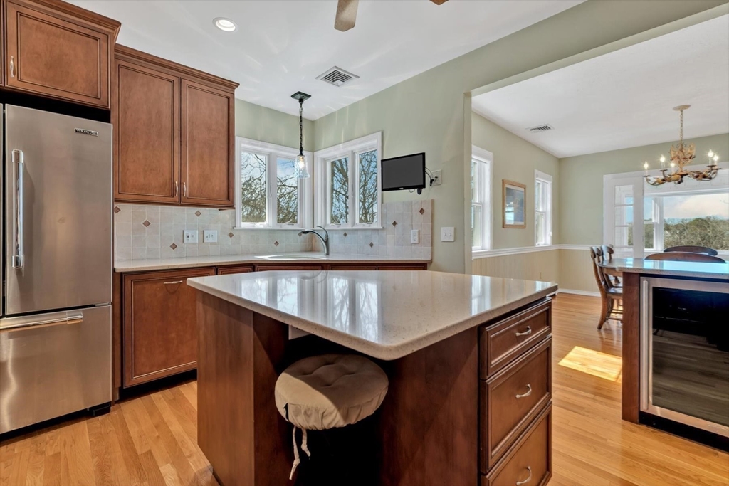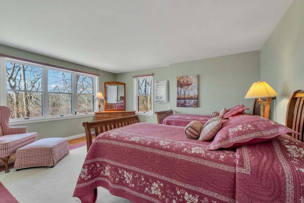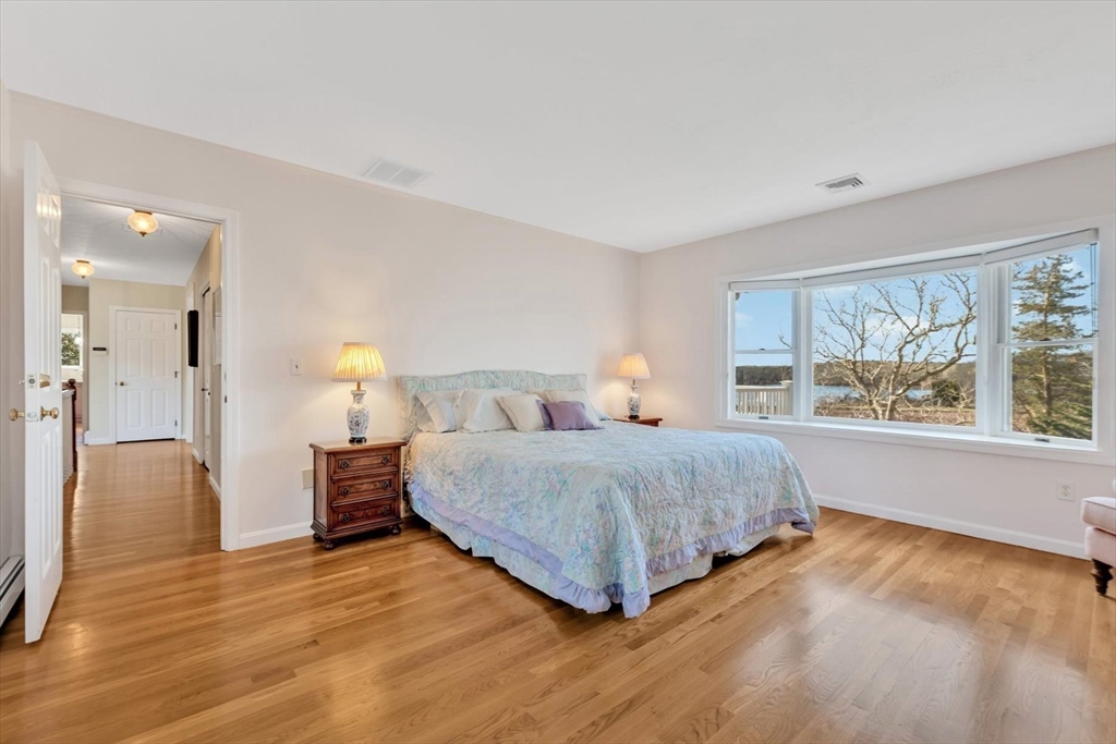 Nestled on the hillside overlooking a cranberry bog and Wing Pond, is this beautifully renovated ranch which exudes warmth and comfort! Gleaming hardwood floors welcome you as you head to the spacious Living Room. The semi-open floor plan flows into the Dining Room and sun room where you can enjoy the captivating views through the picture window. The well-equipped kitchen boasts high-end appliances, a sink with a view, pot filler, wine refrigerator and tiled backsplash. The sunny primary suite has a walk-in closet, a stack washer/dryer, and a hidden home office behind double closet doors. Family and guests can have the entire Lower Level with two additional bedrooms, a full bath, laundry, and a reading area with a built-in bookcase. Other outstanding features include central air, whole house generator, solar panels, irrigation, multiple decks, outdoor shower, and a flagpole. Explore the trails around the bog or enjoy direct neighborhood access to Wing Pond and the Shining Sea Bikeway!