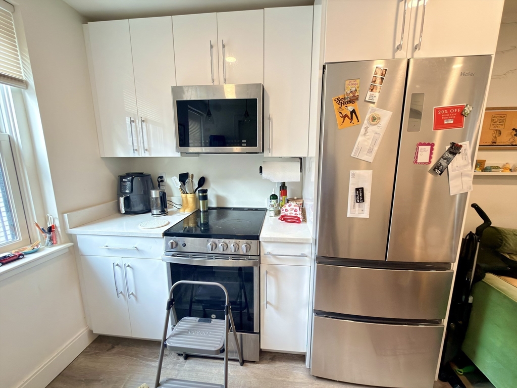 Fully renovated two-bedroom apartment featuring modern upgrades throughout. This unit offers new electrical and plumbing, high-speed wiring, and efficient heating, cooling, and dehumidification systems in both bedrooms and the living area. The open-concept layout includes a bright living room and a sleek kitchen with custom cabinetry, granite countertops, stainless steel appliances, dishwasher, over-the-range microwave. Additional highlights include luxury vinyl plank flooring, recessed lighting, and a beautifully tiled bathroom with a glass shower. In-unit laundry adds convenience, along with generous closet space and natural light throughout. Conveniently located near public transportation, restaurants, and everything downtown Boston has to offer.
