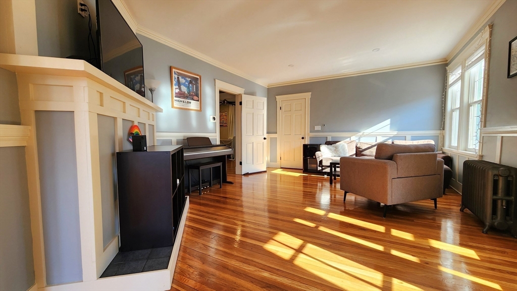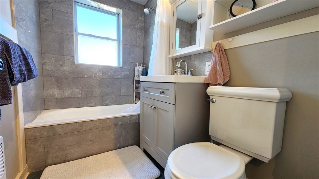 Beautifully renovated three bedroom two bathroom on two levels of a two family home in Brighton. The second floor features recently refinished hardwood floors throughout the large living room, dining room, two bedrooms, bathroom, sun room and kitchen. Kitchen is complete with stainless steel appliances, a built-in microwave, a dishwasher, and plenty of cabinet and counterspace. The third floor boasts a gorgeous master bedroom. Dedicated laundry and storage is in the basement. Patio on the side of the house. Off-street parking available for three cars.