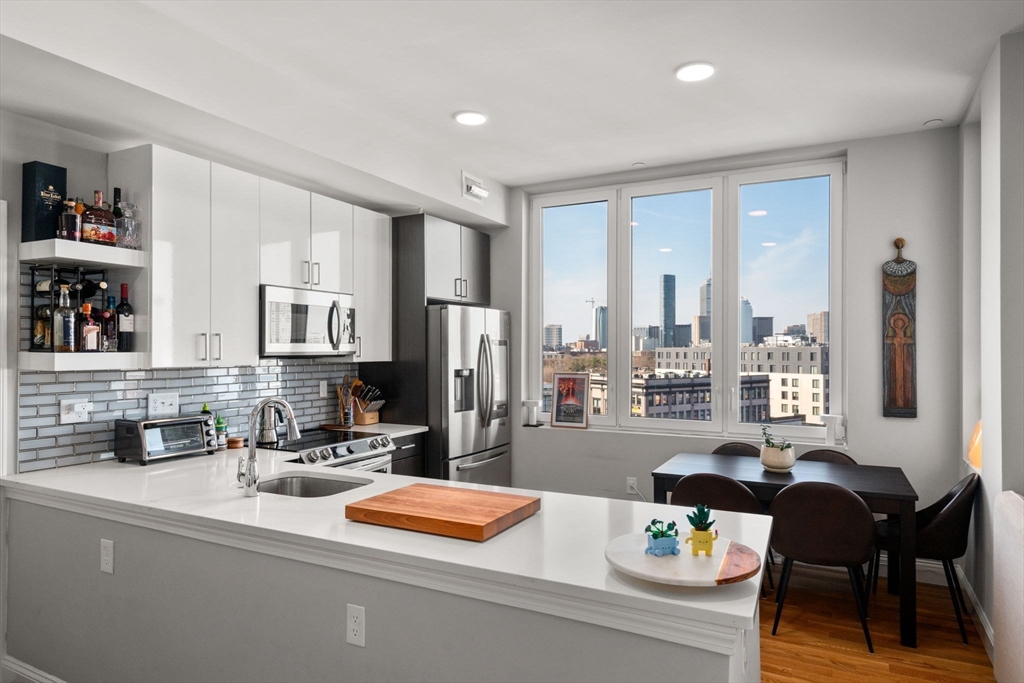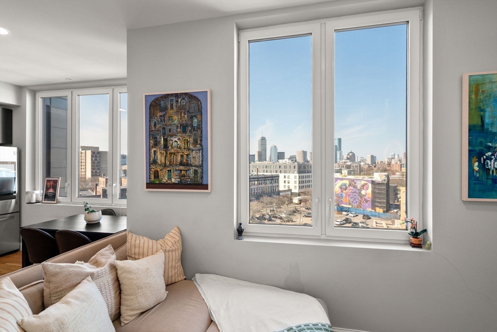 Penthouse living in the heart of Nubian Square. This modern, professionally managed building offers concierge service, 2 elevators and a welcoming residential lobby designed for comfort and ease. Unit #608 features an open layout with 9-foot ceilings, oversized triple-pane windows, and stunning skyline views, creating a bright and inviting living space. The sleek kitchen with a large peninsula is perfect for both everyday living and entertaining, while the in-unit Bosch washer/dryer adds convenience. Enjoy a quiet, well-maintained community just minutes from Boston Medical Center, Longwood Medical Area, Northeastern University, and downtown Boston. With easy access to public transit, major highways, parks, and neighborhood dining, this location is ideal for young professionals, graduate students, and city residents seeking both accessibility and a peaceful place to call home.