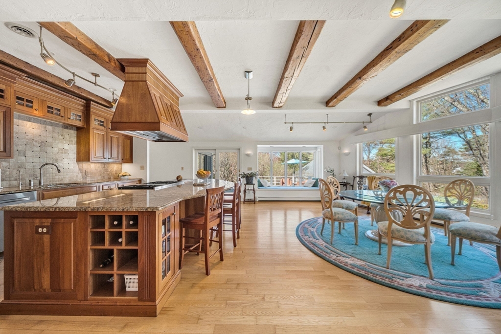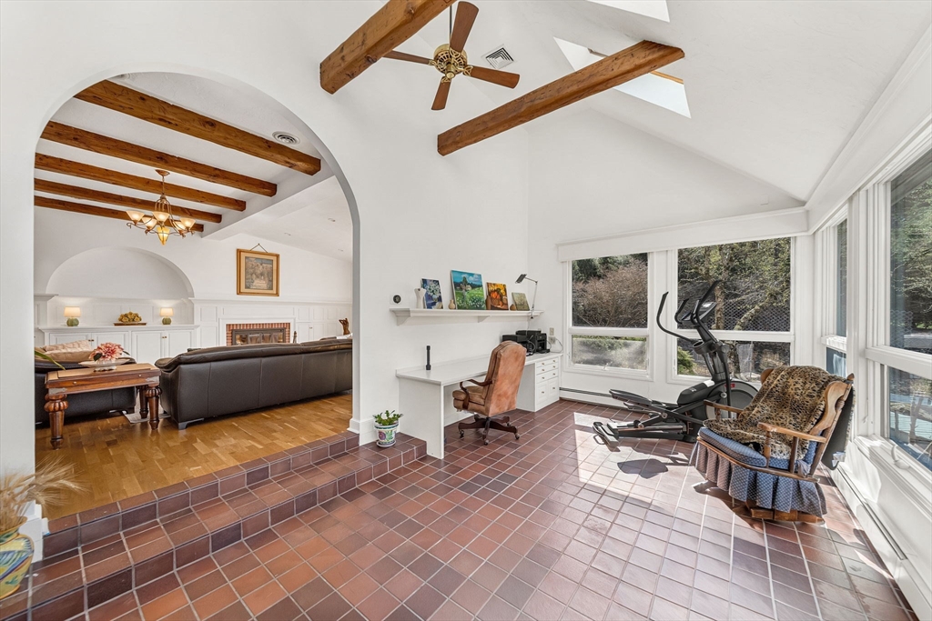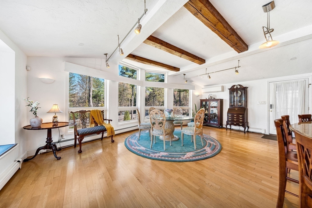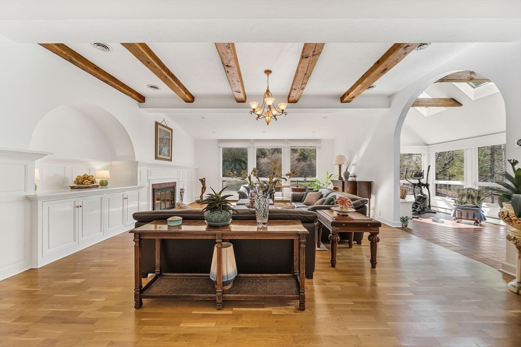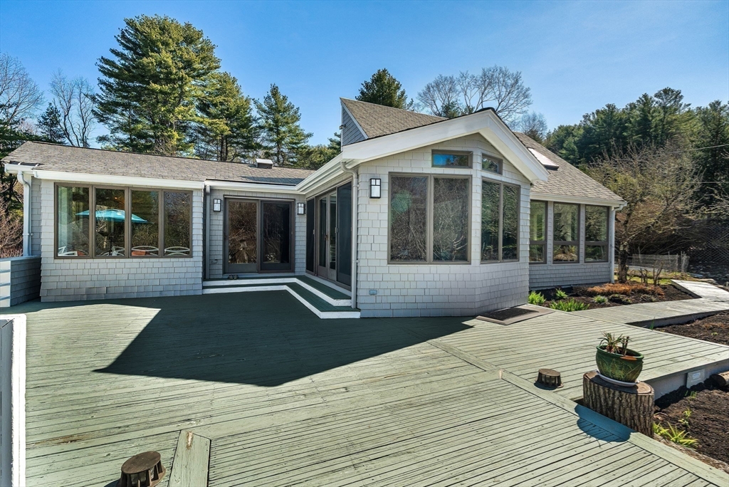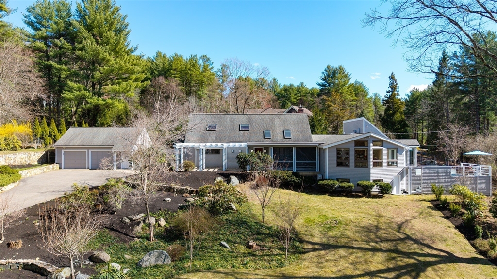 Sun-filled and thoughtfully designed, this distinctive Weston residence is set on a peaceful, landscaped corner lot, offering a balance of openness, flexibility, and comfort.Featuring 4 bedrooms and 3 full bathrooms, the home includes a high-ceiling kitchen that flows into the dining and sitting areas, creating a natural gathering space. Large windows bring in abundant light and frame serene views. The living room with fireplace opens to a bright sunroom, while a second heated sunroom off the kitchen provides a year-round retreat.A first-floor study with walk-in closet may serve as a fifth bedroom. The primary suite is privately set in its own wing, with three additional bedrooms and a full bath on the second level.A detached 2012 carriage house with a finished upper-level studio and separate driveway adds exceptional versatility for guest living, extended family, home office, or potential ADU conversion (buyer to verify).Conveniently located near everthing.
