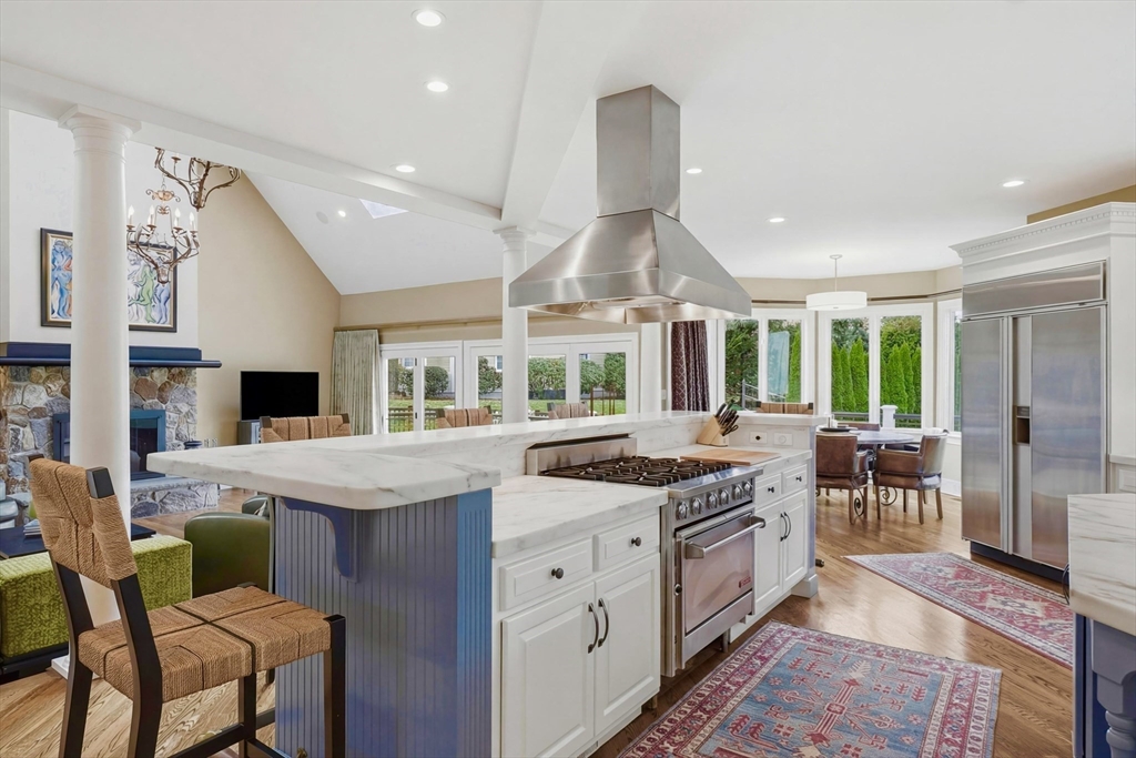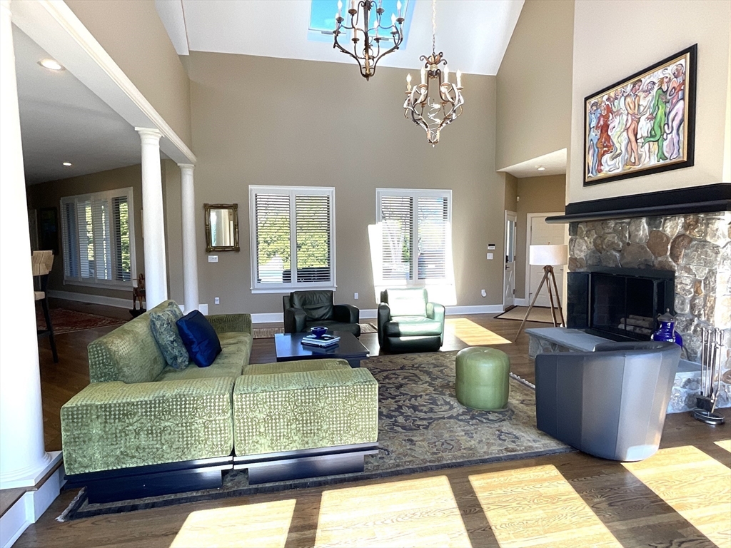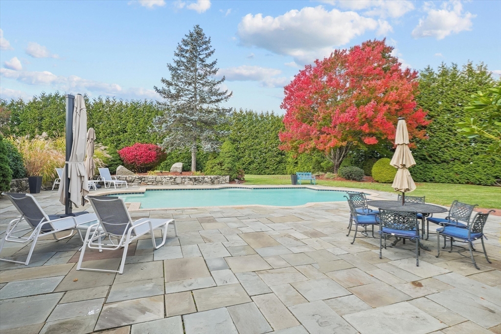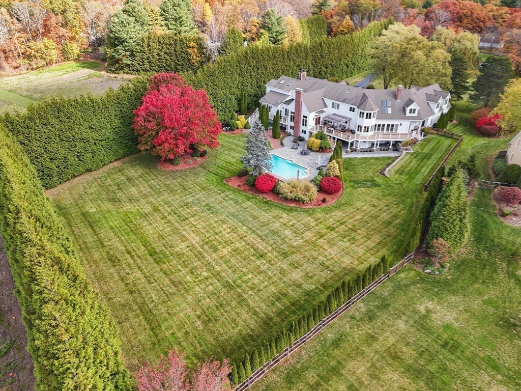 Welcome to your private retreat in beautiful South Natick. Sited on 2.24 acres of impeccably manicured grounds, this move-in-ready home offers a rare blend of open, sun-filled living spaces and resort-style outdoor amenities. Oversized windows bathe the home in natural light, highlighting the spacious layout that’s perfect for both everyday living and entertaining. The first-floor primary suite is a true sanctuary, featuring soaring ceilings, double walk-in closets, a dedicated massage area, private laundry, a striking standing tub, and an expansive shower. Sunny first floor office with its own deck. Four wood-burning fireplaces create warmth and charm throughout. Step outside to a stunning heated pool, huge yard, and a generous deck ideal for gatherings. An in-law suite above the 3-car garage includes its own kitchen, bath, bedroom, and living space. Beside Lookout Farm and near Pegan Hill Reservation, this property offers exceptional comfort, style, and a connection to nature.