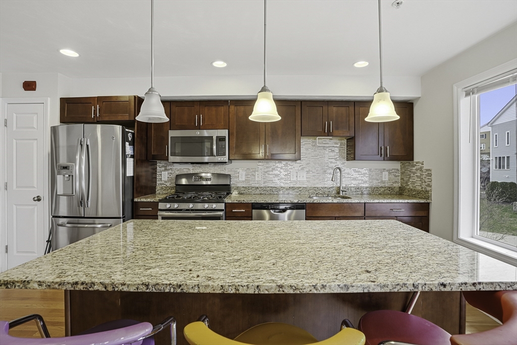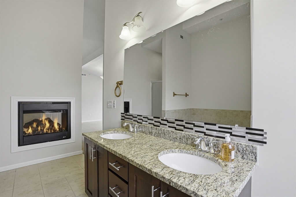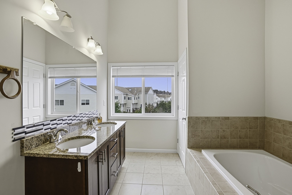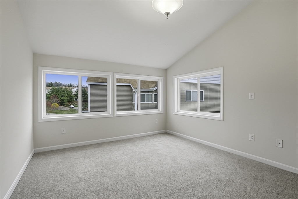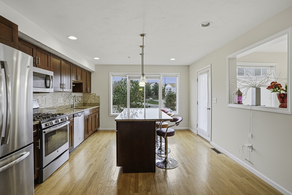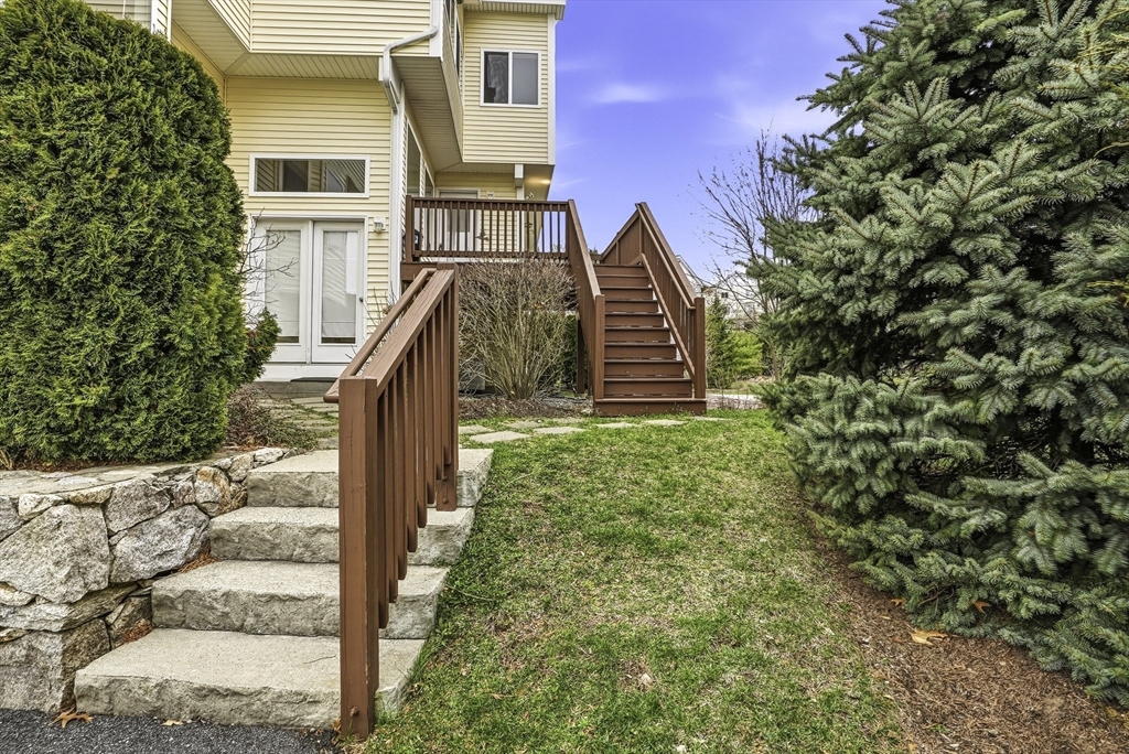 Experience sun-soaked elegance in Ashland’s Village of the Americas. As one of the final units built in the community, this meticulously upgraded Galleria-style townhome begins with a striking two-story glass foyer and curved staircase. The interior is bathed in natural light from south and west-facing windows, illuminating gleaming hardwood floors.The chef’s kitchen features a 6’ granite island, stainless steel appliances, and upgraded cabinetry, flowing into an expansive living area with a gas fireplace. Retreat to the primary suite, a private sanctuary with cathedral ceilings, a second fireplace, and a walk-in closet. Both bedrooms include en-suite baths, featuring a premium tiled shower and double vanity in master bath. Modern conveniences include living-level laundry, a loft for extra storage, and a finished basement perfect for a home office or gym. Step onto your private deck. Enjoy the community’s vibrant play area and gazebo.