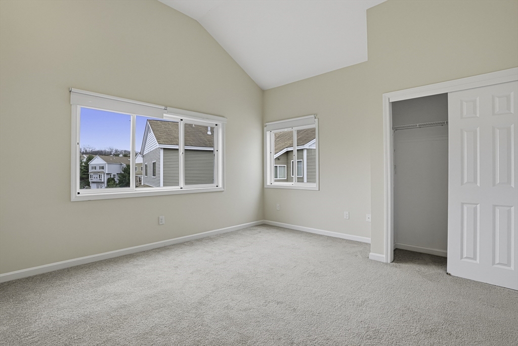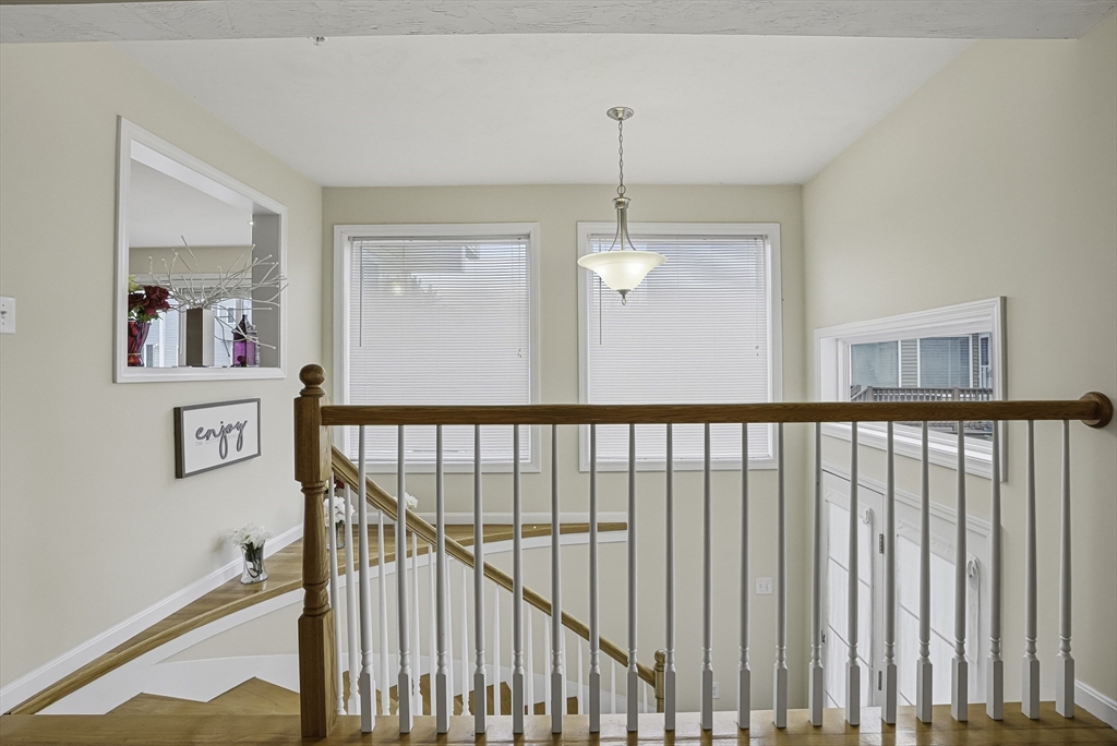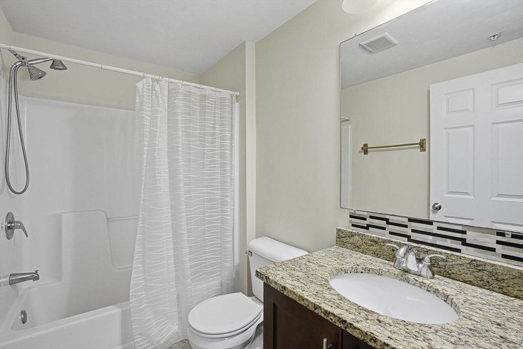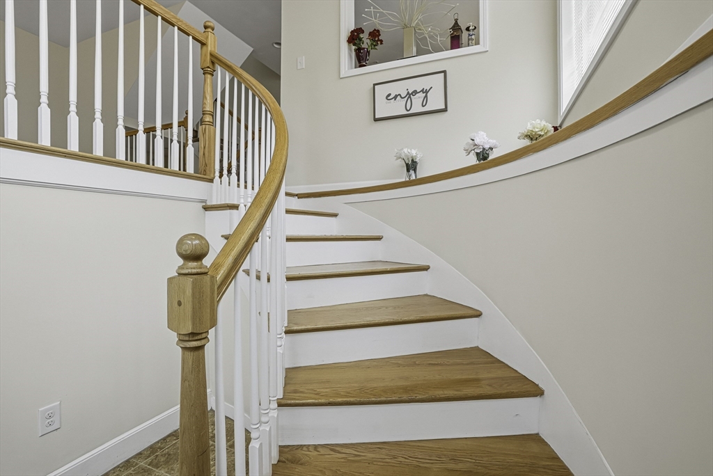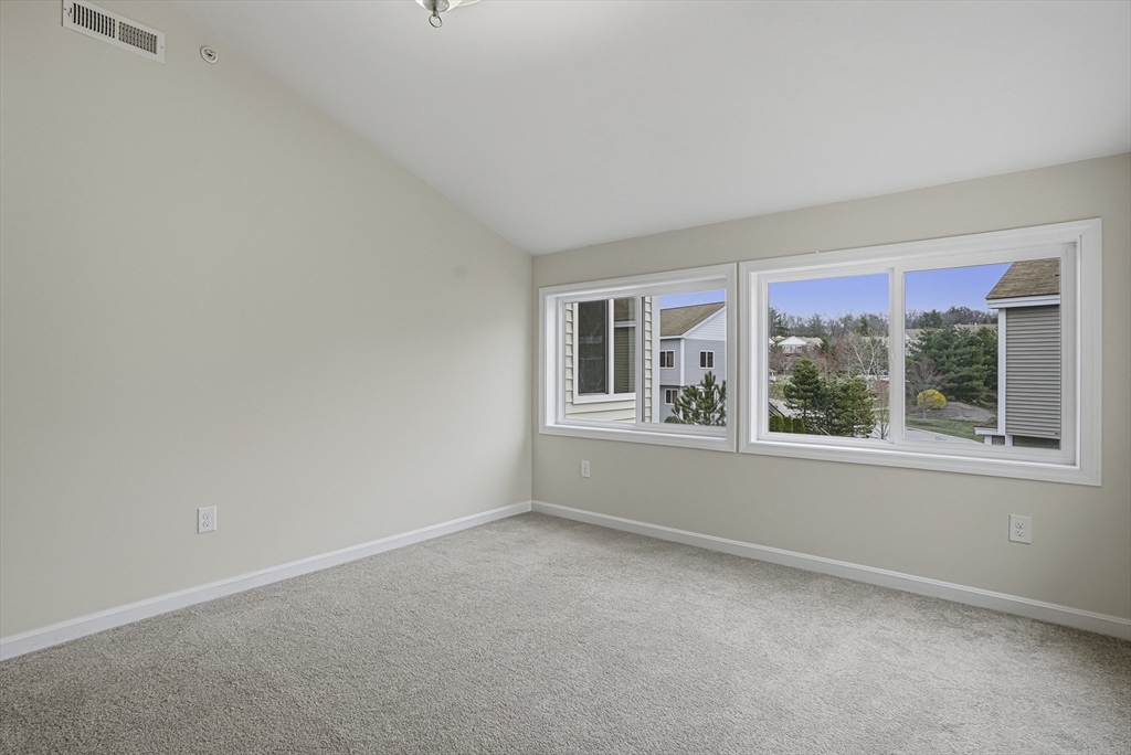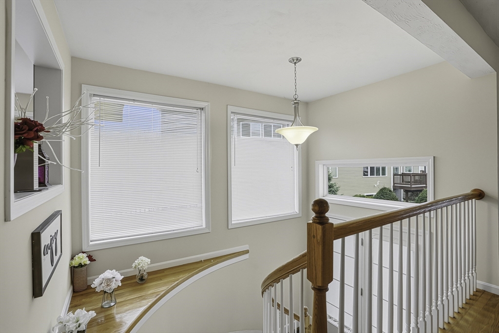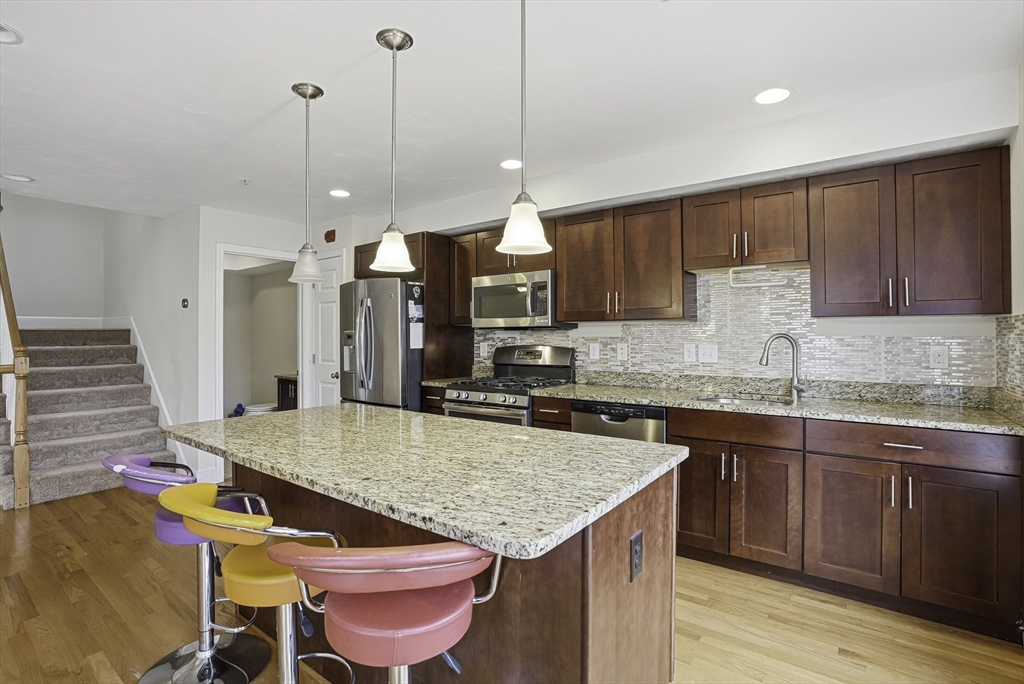 Experience sun-soaked elegance in Ashland’s Village of the Americas. As one of the final units built in the community, this meticulously upgraded Galleria-style townhome begins with a striking two-story glass foyer and curved staircase. The interior is bathed in natural light from south and west-facing windows, illuminating gleaming hardwood floors.The chef’s kitchen features a 6’ granite island, stainless steel appliances, and upgraded cabinetry, flowing into an expansive living area with a gas fireplace. Retreat to the primary suite, a private sanctuary with cathedral ceilings, a second fireplace, and a walk-in closet. Both bedrooms include en-suite baths, featuring a premium tiled shower and double vanity in master bath. Modern conveniences include living-level laundry, a loft for extra storage, and a finished basement perfect for a home office or gym. Step onto your private deck. Enjoy the community’s vibrant play area and gazebo.