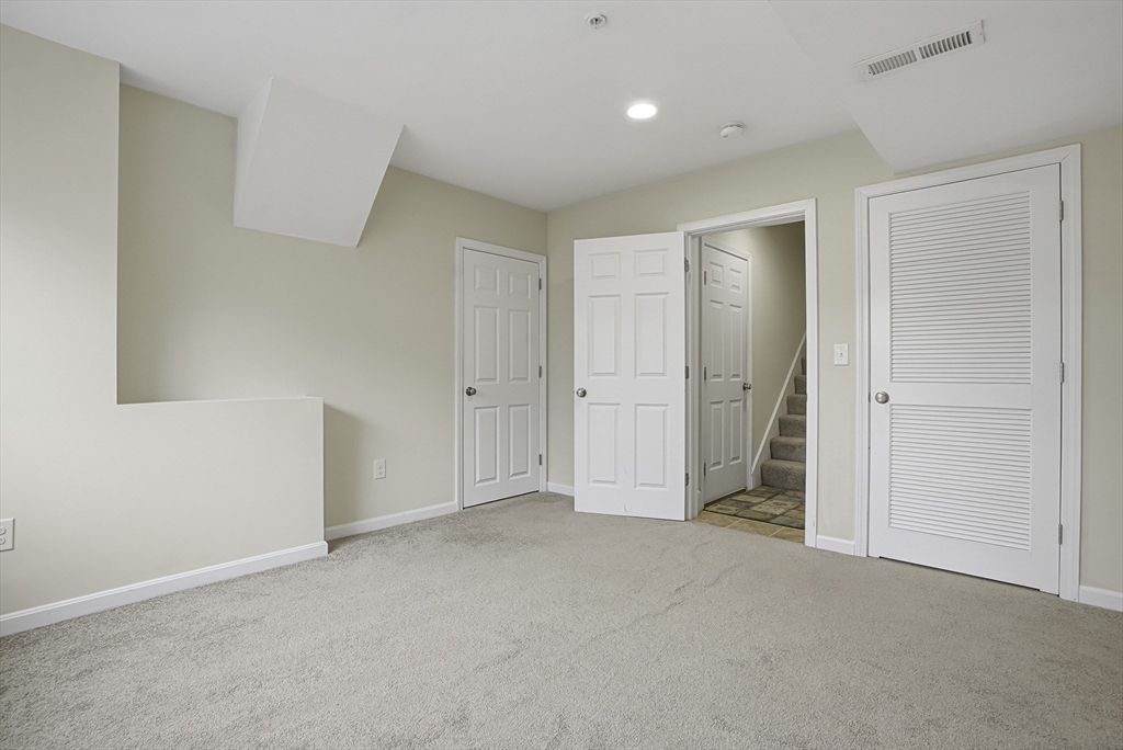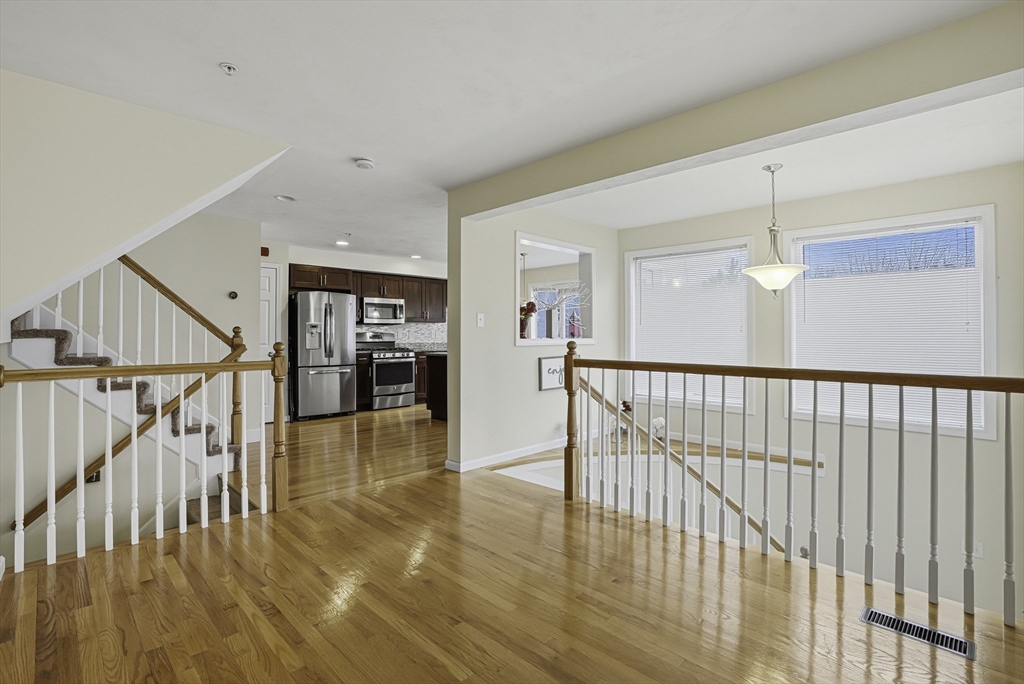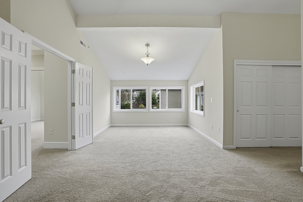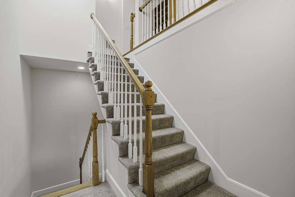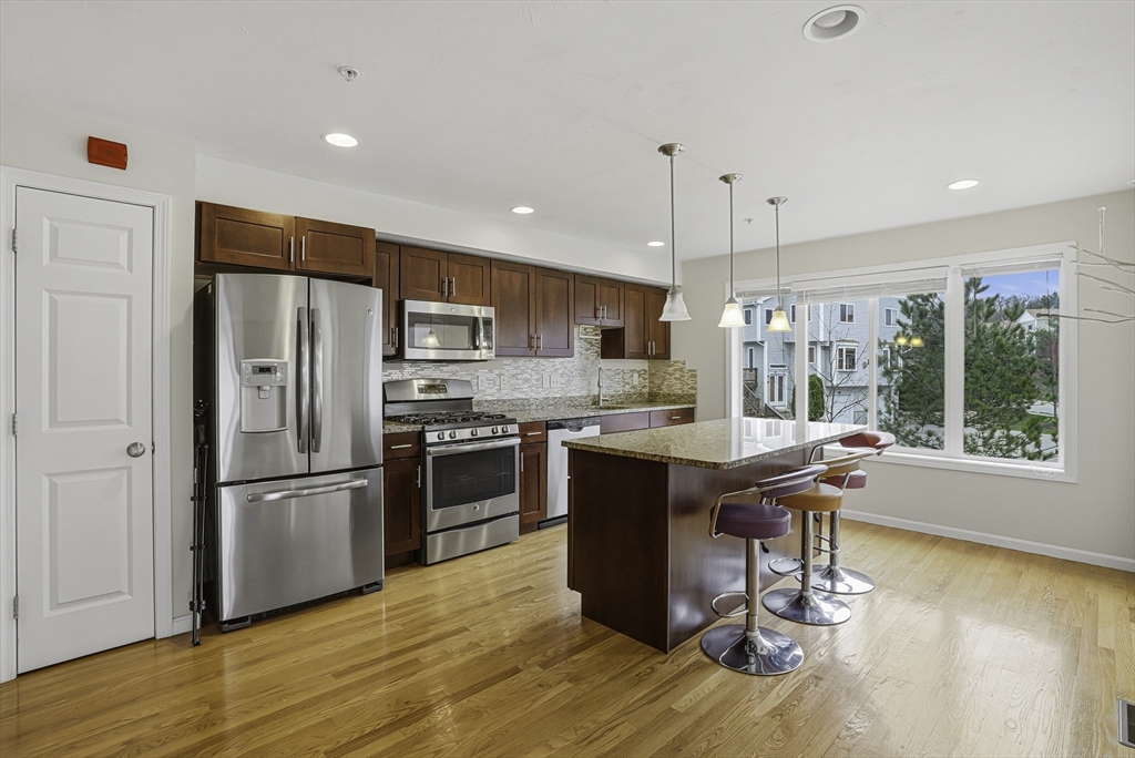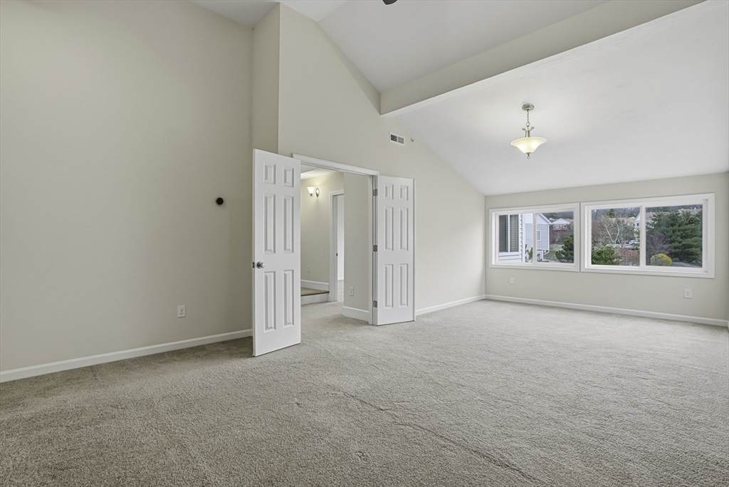 Experience sun-soaked elegance in Ashland’s Village of the Americas. As one of the final units built in the community, this meticulously upgraded Galleria-style townhome begins with a striking two-story glass foyer and curved staircase. The interior is bathed in natural light from south and west-facing windows, illuminating gleaming hardwood floors.The chef’s kitchen features a 6’ granite island, stainless steel appliances, and upgraded cabinetry, flowing into an expansive living area with a gas fireplace. Retreat to the primary suite, a private sanctuary with cathedral ceilings, a second fireplace, and a walk-in closet. Both bedrooms include en-suite baths, featuring a premium tiled shower and double vanity in master bath. Modern conveniences include living-level laundry, a loft for extra storage, and a finished basement perfect for a home office or gym. Step onto your private deck. Enjoy the community’s vibrant play area and gazebo.