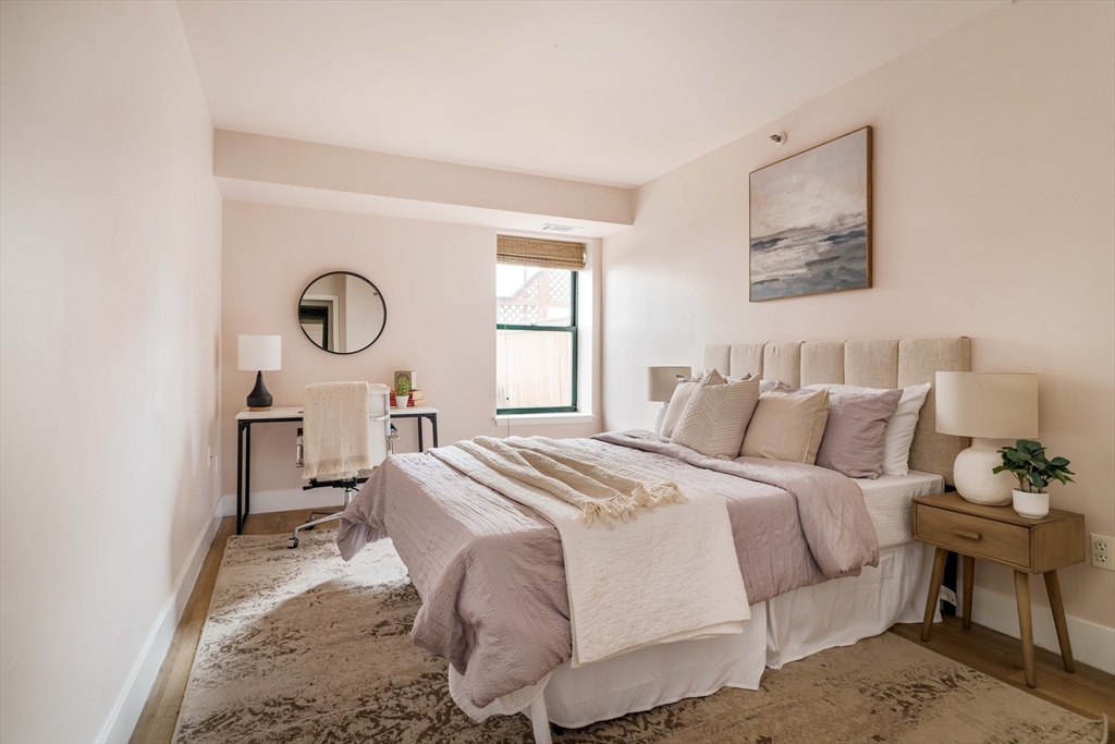 Relaxed urban living with a serene outdoor retreat in this 2-bedroom, 2-bath condo set in a handsome brick building. Perfectly positioned near bustling Inman and Kendall Squares, this home offers convenience and style. An open-concept layout flows gracefully between the living and dining spaces, while double glass doors extend out to your own enclosed garden - perfect for morning coffee and evening gatherings. The updated galley kitchen features shaker cabinets, granite counters and a suite of GE appliances. Both spacious bedrooms offer generous walk-in closets and access to their own well-appointed bathrooms. Highlights include in-unit laundry, central air, and rare two-car parking. The professionally managed, pet-friendly building is meticulously maintained, smoke-free, and offers bike storage. Enjoy unparalleled access to Cambridge’s most vibrant neighborhoods as well as the Red Line at Kendall (.7m) and Green Line at Lechmere (.6m) MBTA stations.