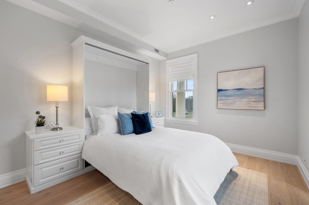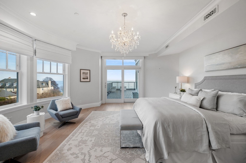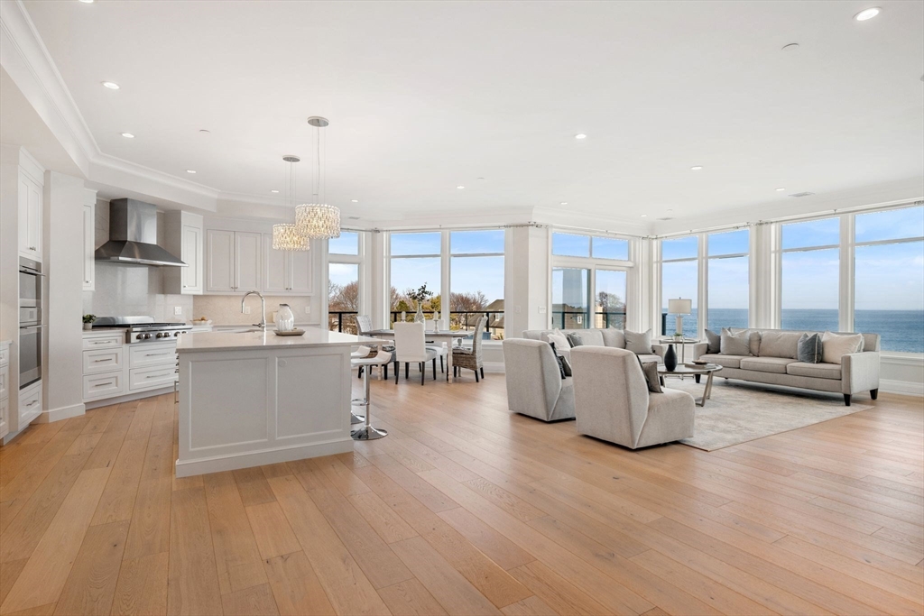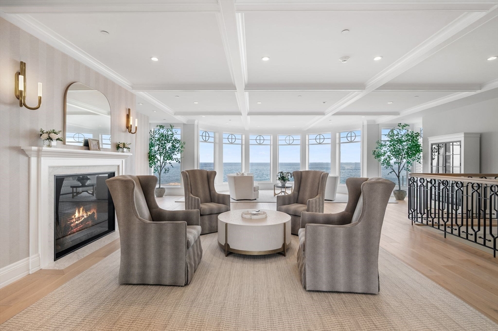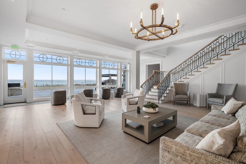 Enjoy coastal luxury at White Court, an exclusive 55+ oceanfront community on a historic six-acre estate with 350+ feet of shoreline, once President Calvin Coolidge’s summer residence. Just minutes from Boston, this home blends history, stunning views, & modern living. This elegant 3-bed, 3.5-bath residence offers single-level living with 10-ft ceilings, sun-filled spaces, & panoramic Atlantic views. Open living/dining areas flow from a beautifully appointed kitchen, ideal for both everyday living & entertaining. Relax on your private oceanfront balcony with sweeping views. Upgrades include electric shades, curated marble accents, crystal chandeliers, custom built-ins, water filtration, and a walk-in closet. A flexible third bedroom features a Murphy bed. Amenities include a fitness center, oceanfront lounges, seasonal heated pool, private storage, and 3 heated garage spaces w elevator access, offering convenience, comfort, and a true resort-style coastal lifestyle on the North Shore.