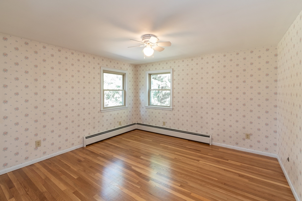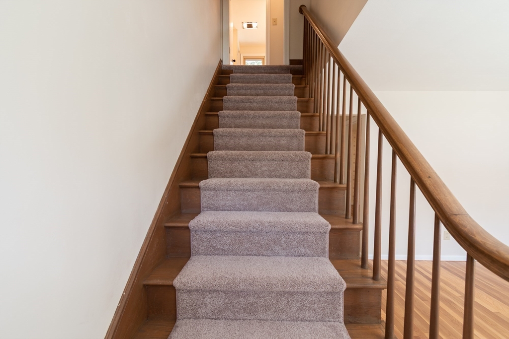 The flexible floor plan features 3–4 bedrooms — use the bonus room as a fourth bedroom or formal dining room — including a coveted first-floor bedroom. Two 3/4 bathrooms provide effortless functionality for everyday living. Gorgeous wood flooring flows throughout, complemented by brand-new carpeting in both second-floor bedrooms. Cozy up in the inviting living room beside the classic brick hearth fireplace. Step outside through the sliders from the bonus room to a backyard ready for your personal touch — just add steps or a deck to make it your own private retreat. Enjoy warm evenings on the screened-in porch. The 2-car garage and generous off-street parking ensure room for everyone. Ideally situated close to major highways and shopping for ultimate convenience. Directly across the street is the Crooked Spring Brook Reservation - a 37 Acre nature preserve with walking/hiking trails, ice skating and sledding. Properties like this don't come along often — don't miss your chance!