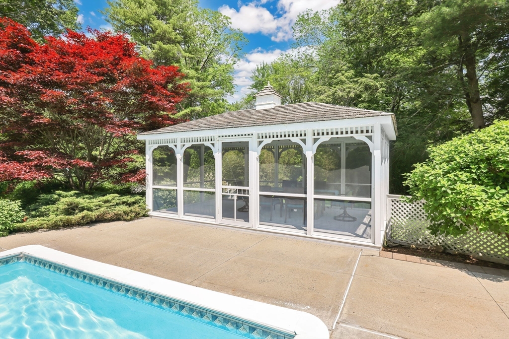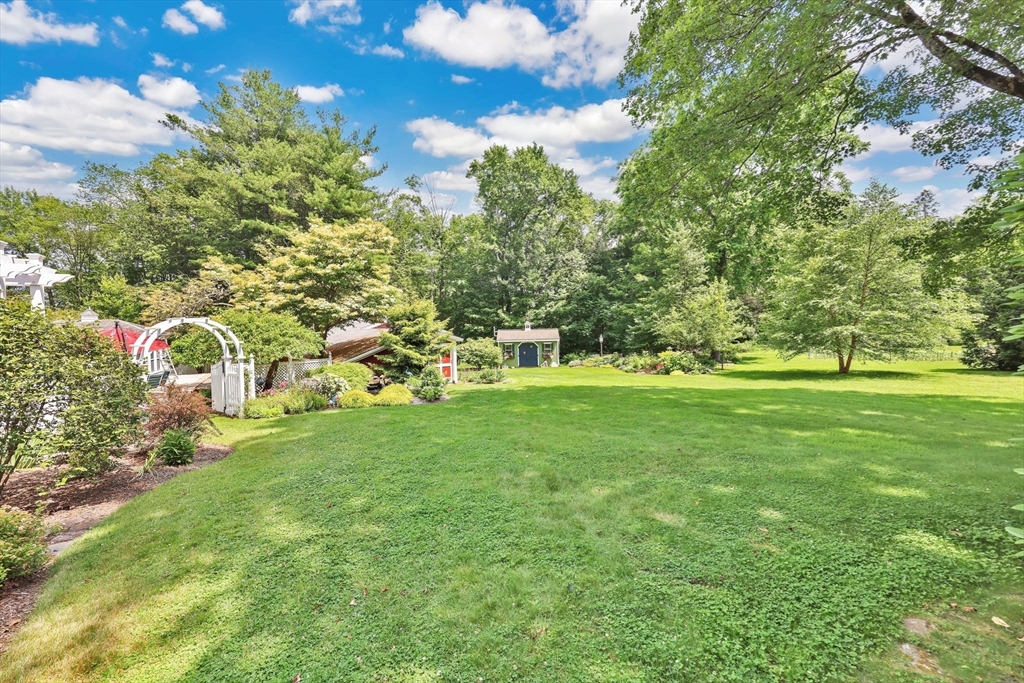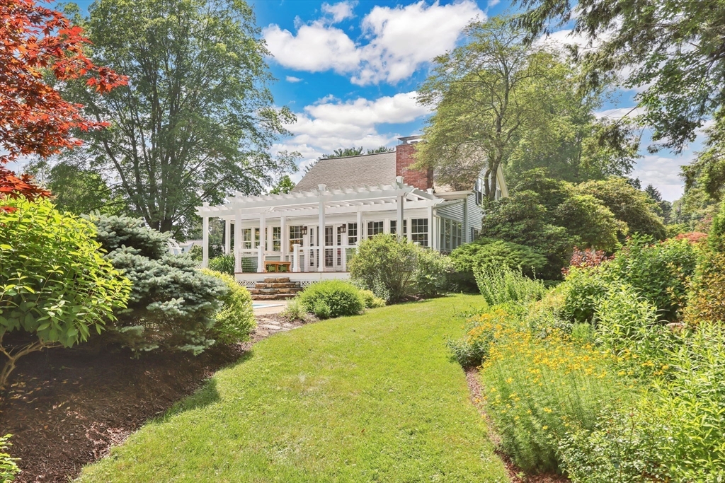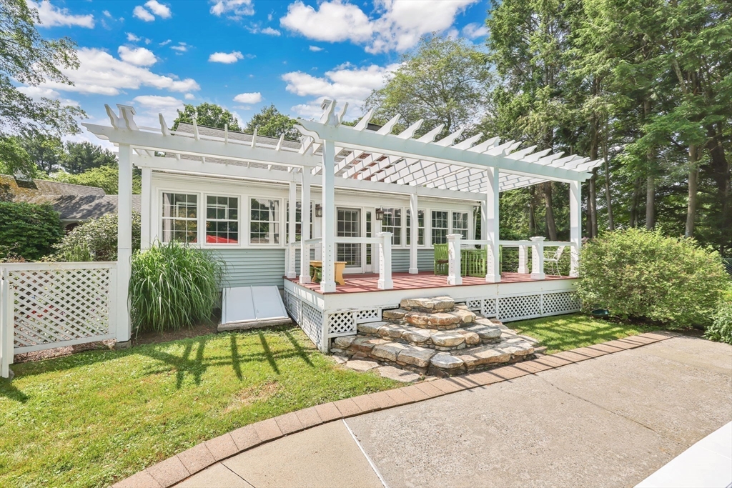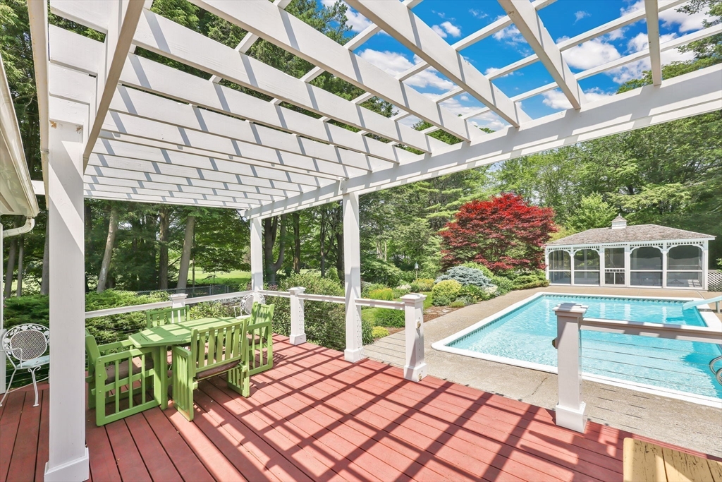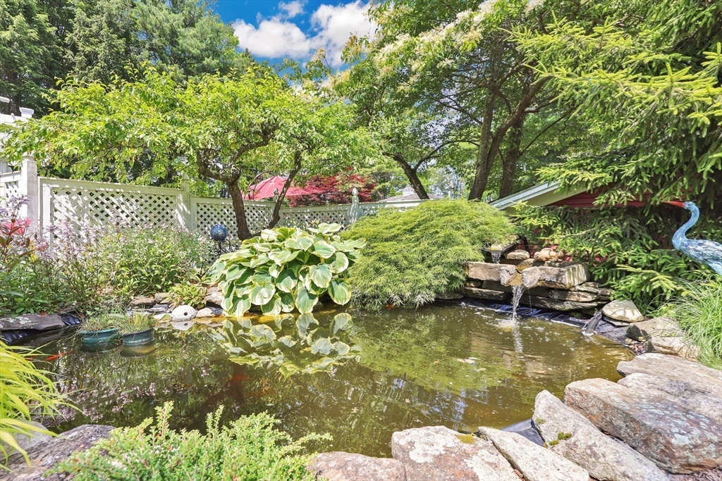Transcend into Tranquility – A Storybook Cape w/ Modern Elegance. Nestled amidst a beautiful manicured lawn & lush gardens, this home invites you to relax & unwind in all of its nooks. Entertain on the Trex deck beneath the graceful pergola, read a book on the stone patio, picnic in the enclosed gazebo, sunbathe by the in inground pool, feed the fish by the koi pond, work in the OUTBUILDING/WORKSHOP, or craft in the art shed. Inside, the heart of the home shines: an exquisite remodeled kitchen boasting radiant heated flrs, crisp white cabinetry, stainless steel appliances, pantry & a dining area perfect for everyday living. Tasteful updates & timeless character flow throughout. Enjoy a flexible flr plan w/ dining rm, options for a study, playroom, or bonus space, reno'd full bath, a family rm, plus a sun drenched living rm that overlooks your private outdoor retreat. 2nd flr features 2 spare bedrooms along w/ a large primary & spa-like bathroom w/ jacuzzi tub. Your sanctuary awaits!