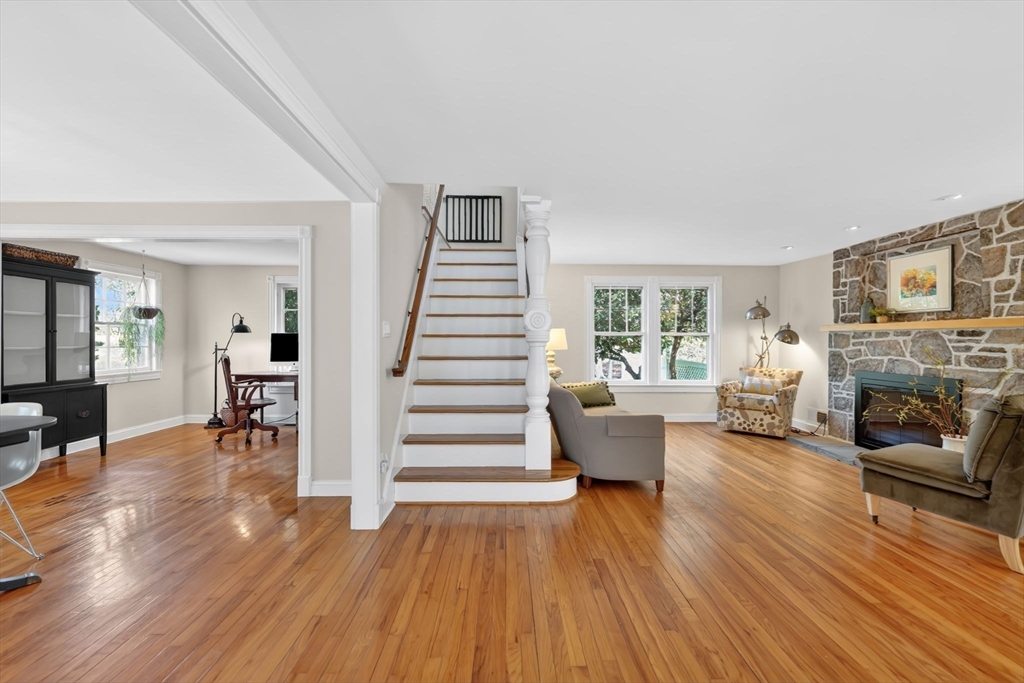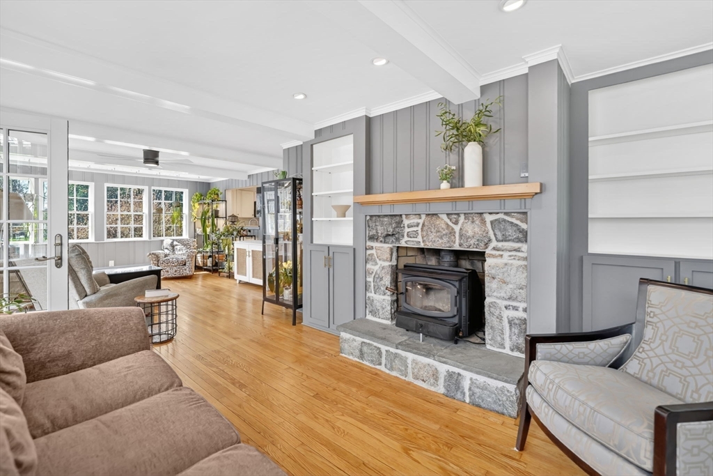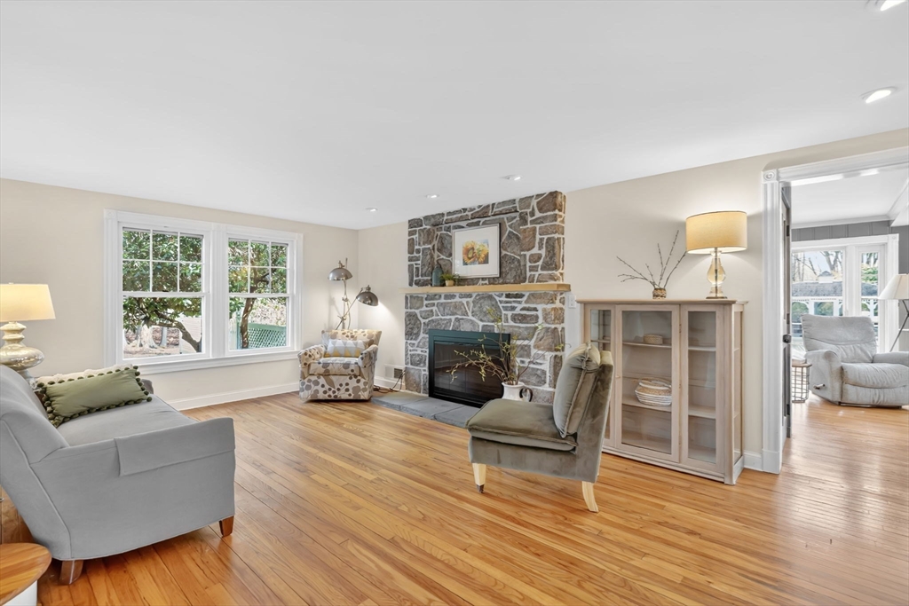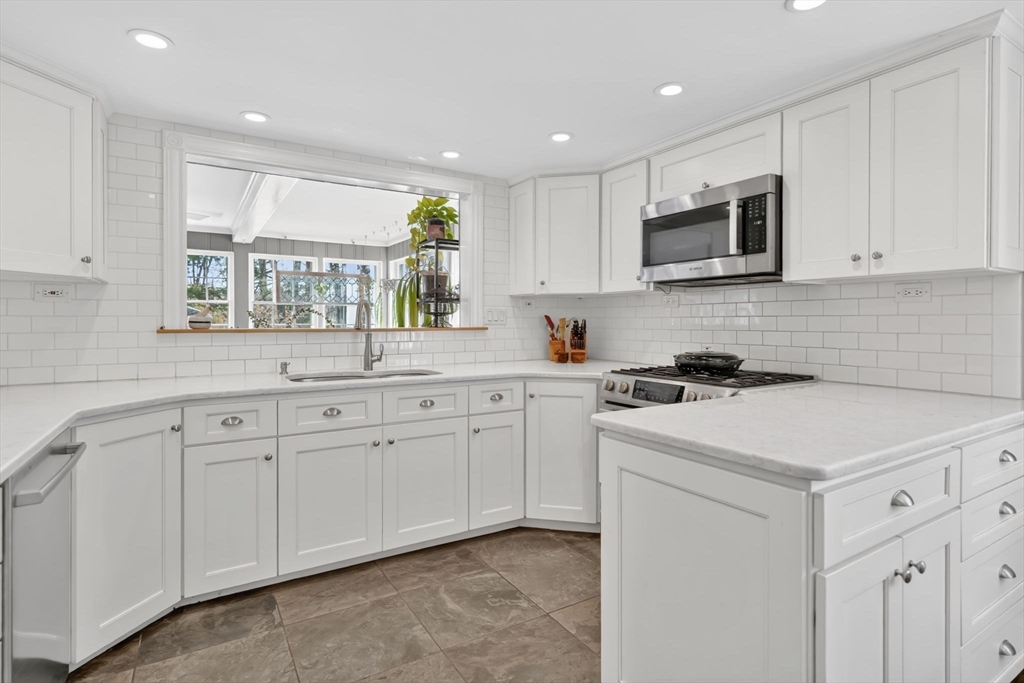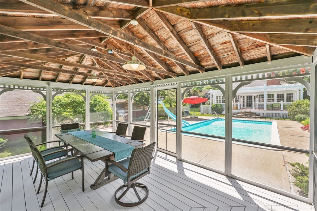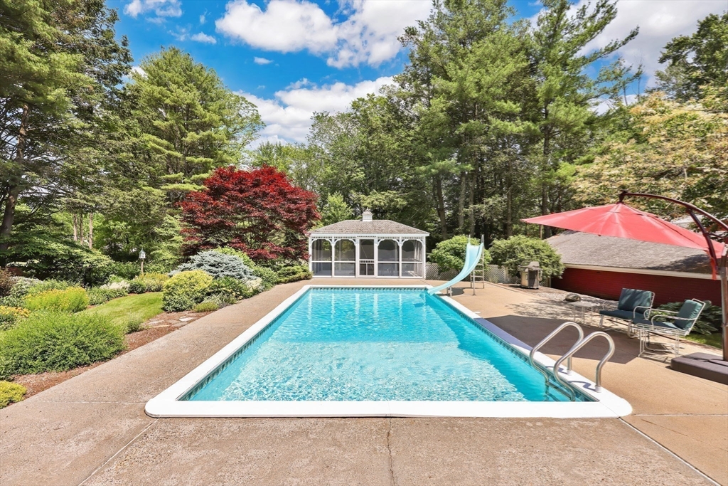 Transcend into Tranquility – A Storybook Cape w/ Modern Elegance. Nestled amidst a beautiful manicured lawn & lush gardens, this home invites you to relax & unwind in all of its nooks. Entertain on the Trex deck beneath the graceful pergola, read a book on the stone patio, picnic in the enclosed gazebo, sunbathe by the in inground pool, feed the fish by the koi pond, work in the OUTBUILDING/WORKSHOP, or craft in the art shed. Inside, the heart of the home shines: an exquisite remodeled kitchen boasting radiant heated flrs, crisp white cabinetry, stainless steel appliances, pantry & a dining area perfect for everyday living. Tasteful updates & timeless character flow throughout. Enjoy a flexible flr plan w/ dining rm, options for a study, playroom, or bonus space, reno'd full bath, a family rm, plus a sun drenched living rm that overlooks your private outdoor retreat. 2nd flr features 2 spare bedrooms along w/ a large primary & spa-like bathroom w/ jacuzzi tub. Your sanctuary awaits!