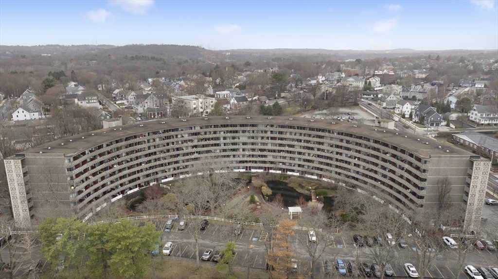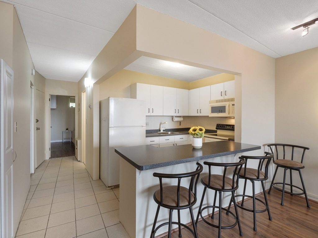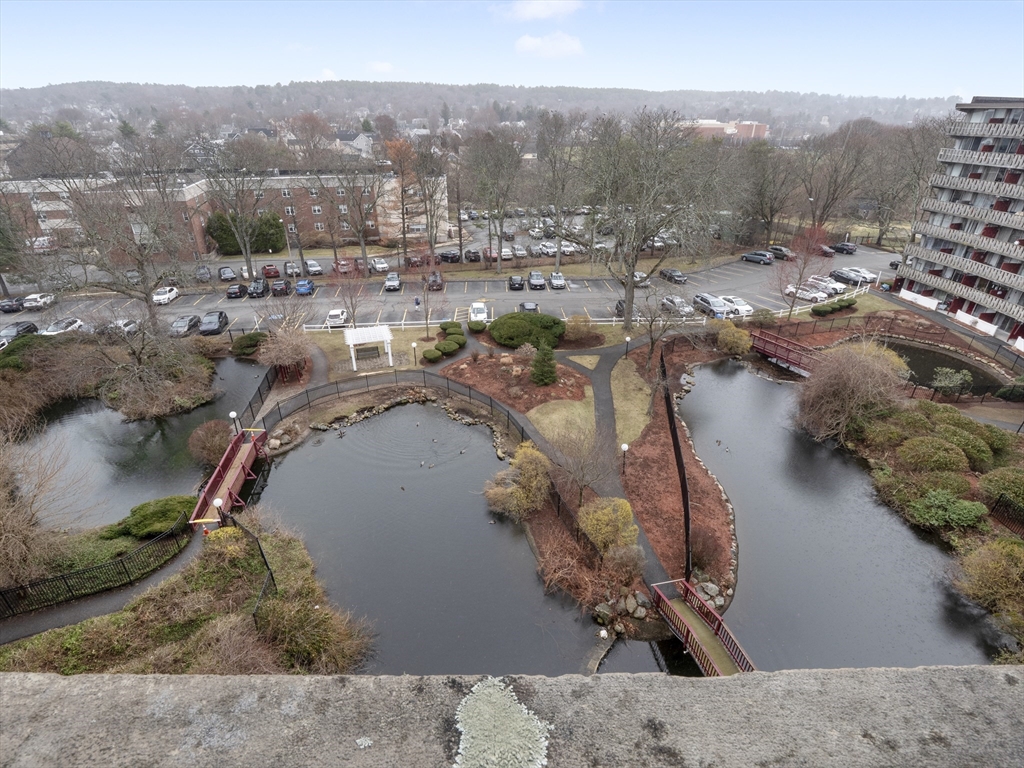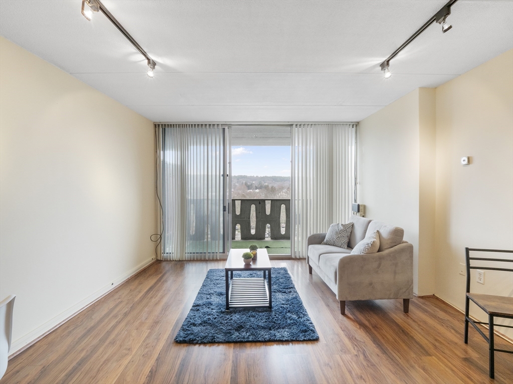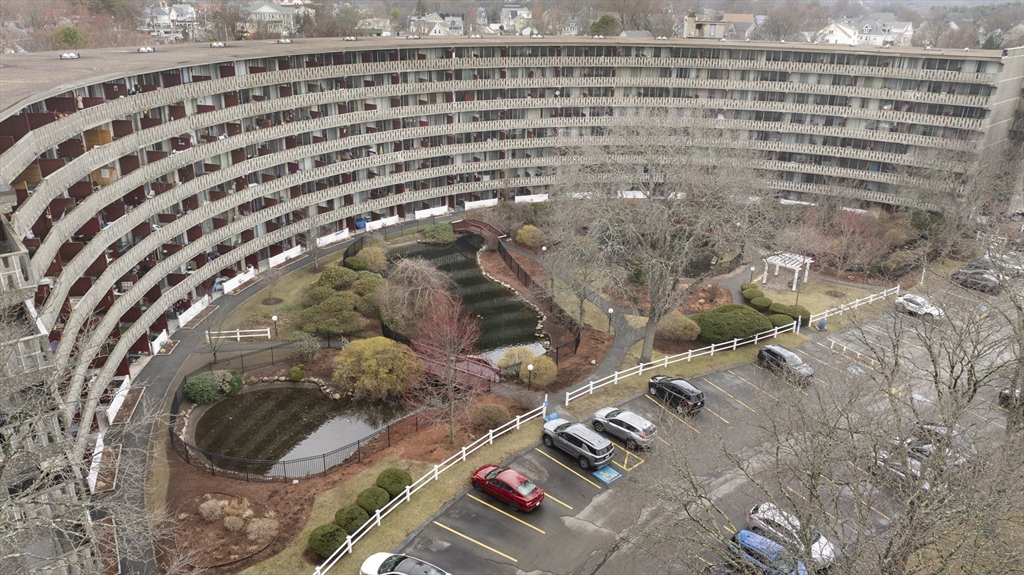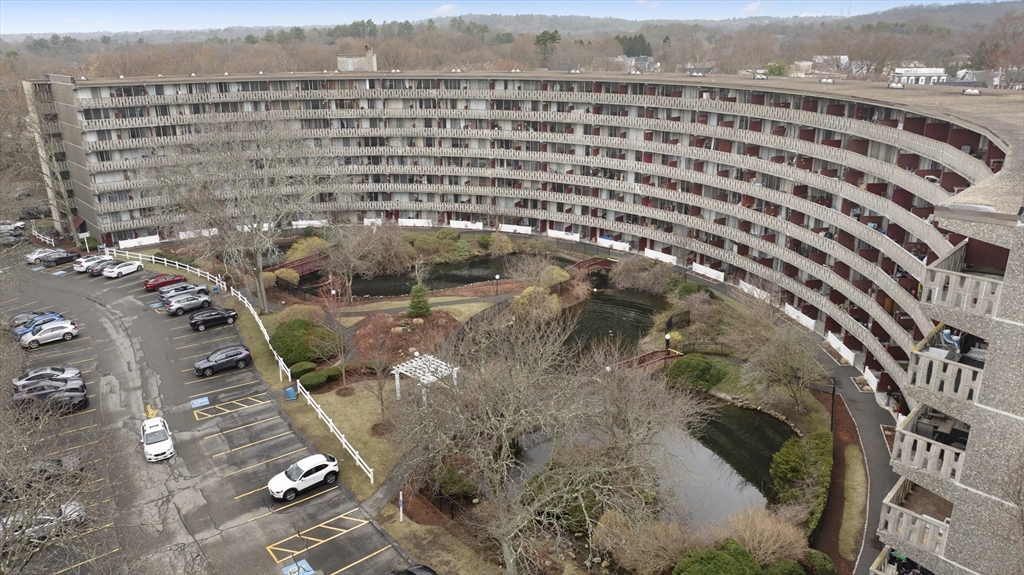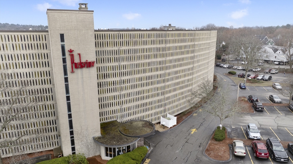 Rarely available top-floor (7th floor) condo at the Parkview Condominium Complex! Enjoy easy living in highly desirable Winchester. Well-maintained 1-bedroom condo offers a bright, open-layout, spacious bedroom with an oversized closet. Full bathroom with tiled shower/tub. The Kitchen offers ample cabinet and counter-top space, breakfast bar style which opens to the living area- perfect for dining and entertaining. Large living room with a glass slider leading to a private balcony overlooking a view of beautifully landscaped grounds. Unit also includes 1 parking space, storage space in the basement, and on-site laundry room. Condo fee includes; heat. hot water, electric, A/C, water/sewer, landscape, & snow removal. Other amenities include gated entry, on-site management, plus the swimming pool with picnic/BBQ area. minutes away from town center, shops, restaurants, bus stop, & the commuter rail t-stop. Close to outdoor trails, major highways, and easy access to the city of Boston