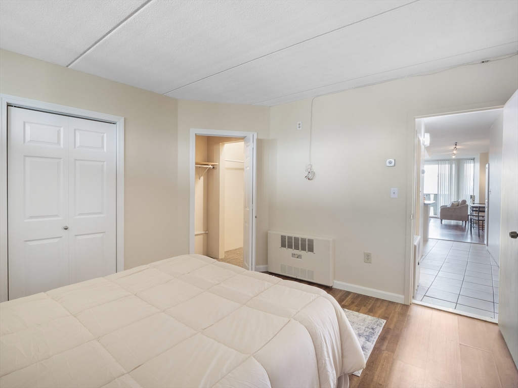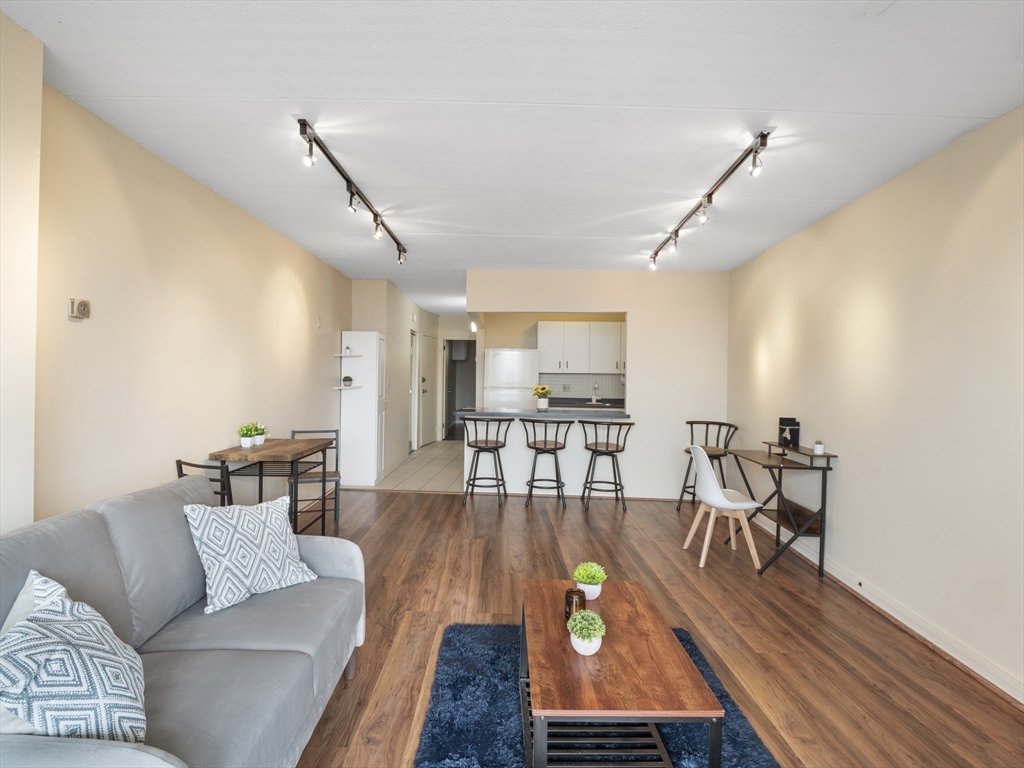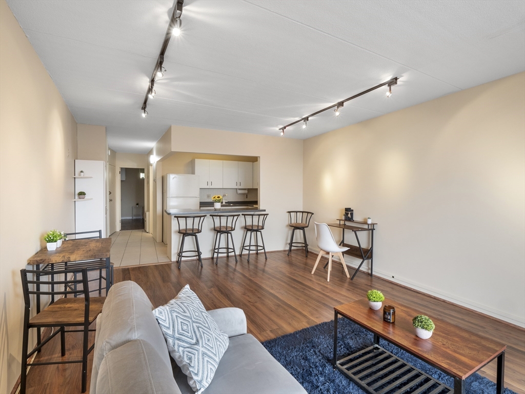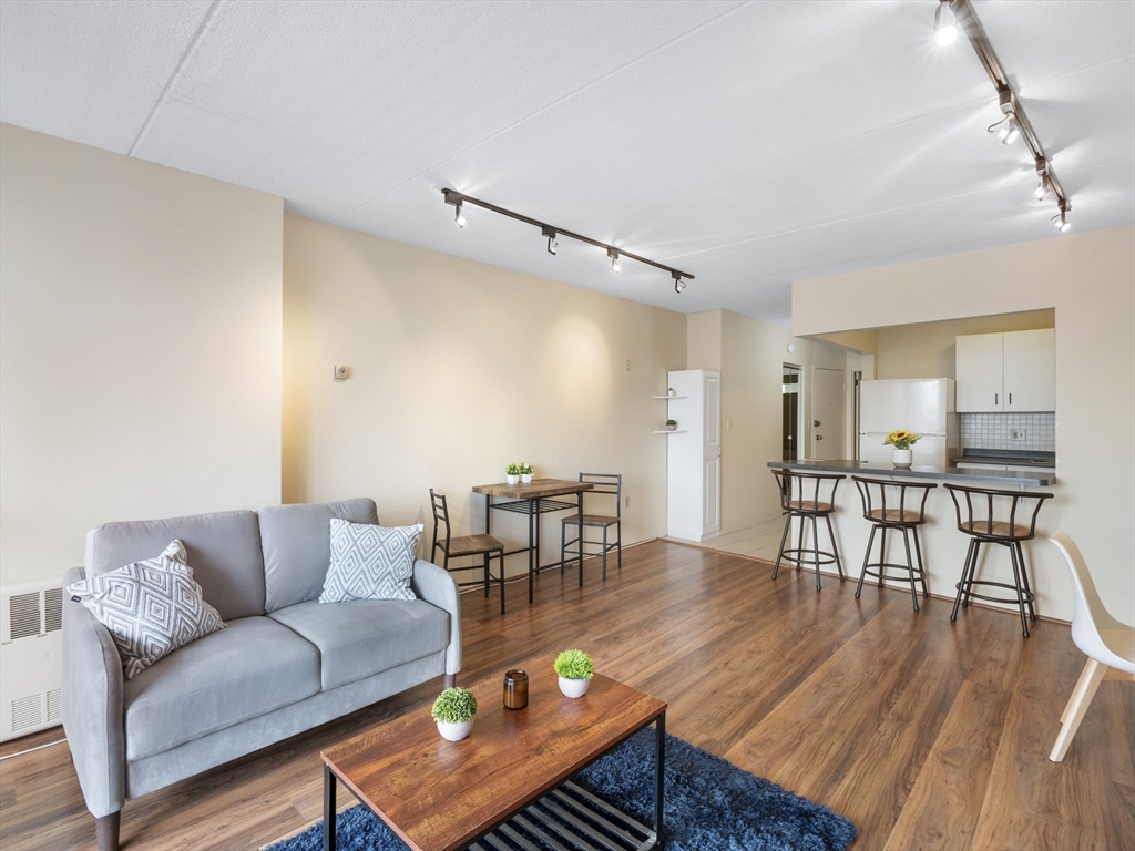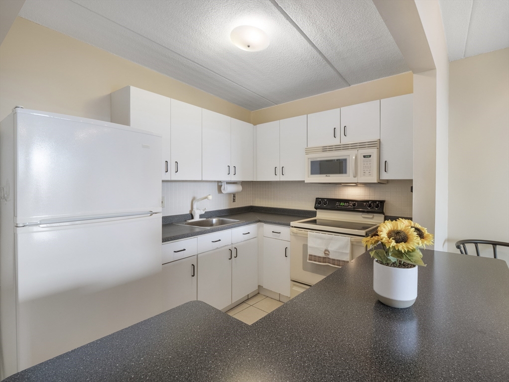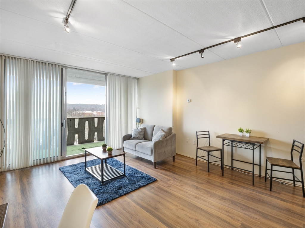 Rarely available top-floor (7th floor) condo at the Parkview Condominium Complex! Enjoy easy living in highly desirable Winchester. Well-maintained 1-bedroom condo offers a bright, open-layout, spacious bedroom with an oversized closet. Full bathroom with tiled shower/tub. The Kitchen offers ample cabinet and counter-top space, breakfast bar style which opens to the living area- perfect for dining and entertaining. Large living room with a glass slider leading to a private balcony overlooking a view of beautifully landscaped grounds. Unit also includes 1 parking space, storage space in the basement, and on-site laundry room. Condo fee includes; heat. hot water, electric, A/C, water/sewer, landscape, & snow removal. Other amenities include gated entry, on-site management, plus the swimming pool with picnic/BBQ area. minutes away from town center, shops, restaurants, bus stop, & the commuter rail t-stop. Close to outdoor trails, major highways, and easy access to the city of Boston