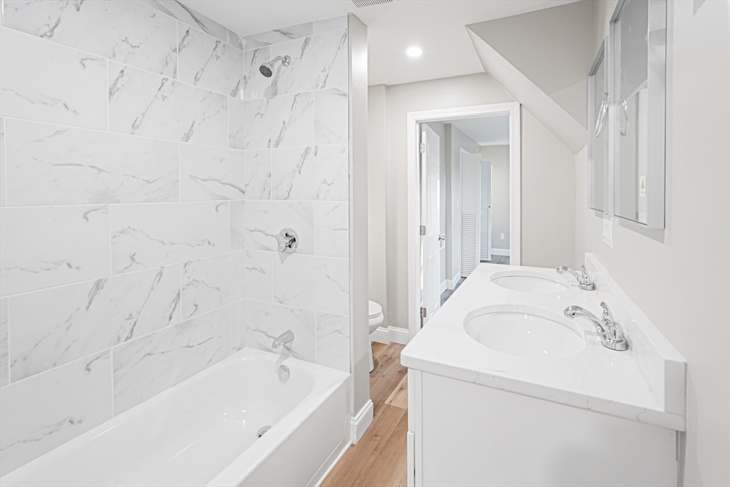 Welcome to this spacious modern townhouse in one of the most desirable school districts in MA. The second floor contains two large bedrooms, a bathroom, and the first floor contains a gorgeous kitchen with windows overlooking the back yard, a bathroom with laundry hookups, and a spacious living room perfect for entertaining. The windows overlooking the back yard provide a beautiful natural light brightening up the whole first floor. You will also have the luxury of being just a short walk from the commuter rail, allowing you to spend more time with your family by optimizing your commute. With two car off-street parking, private entrance, and a secluded back yard space for entertaining, this property is the total package. Updating includes new roof, new hot water heater, new heat pump for heating/cooling, updated electrical, and updated plumbing. Open house Sunday 4/19 12:00-2:00pm