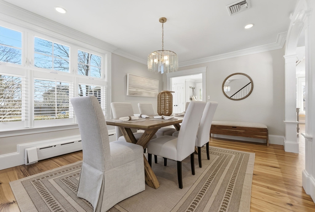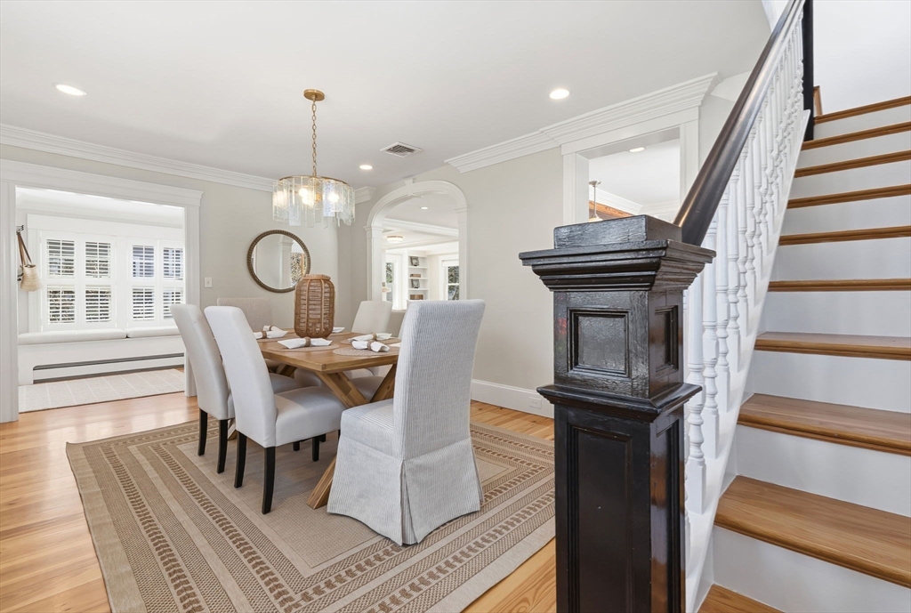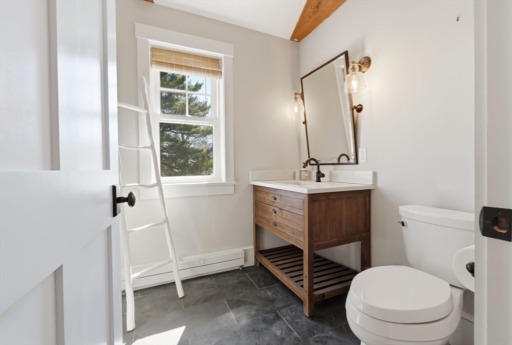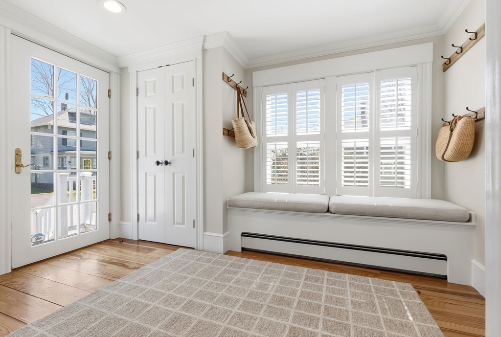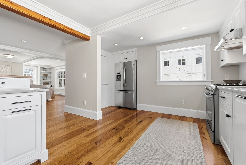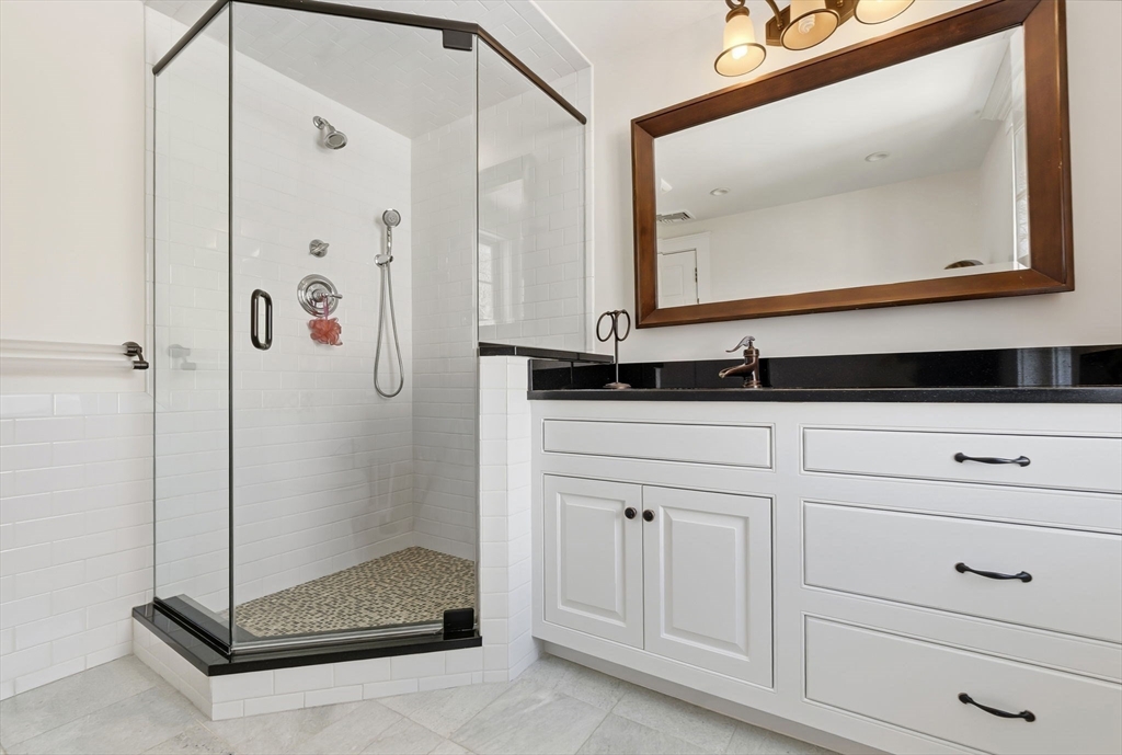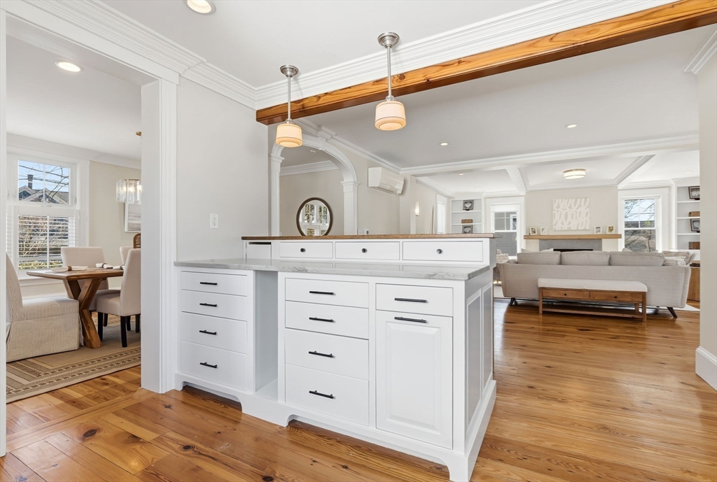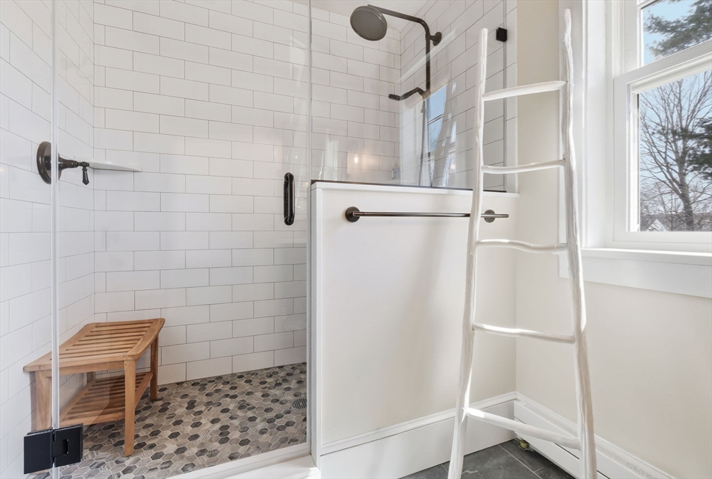 Located just steps from downtown Amesbury, this exceptional property was the personal home of an award-winning builder, showcasing thoughtful design and craftsmanship throughout. The main residence offers 3 bedrooms and 3.5 baths, highlighted by elegant archways, coffered ceilings, and refined finishes. The primary suite features a spa-like ensuite, while the living room is anchored by a gas fireplace, custom built-ins, and crown molding. A standout feature is the beautifully renovated barn, offering a versatile bonus space ideal for a home gym, family room, or game room. Above, a well-appointed apartment includes a bedroom, full bath, and inviting living area with beverage bar and sink. A rare opportunity to own a truly unique and flexible property in a prime location.