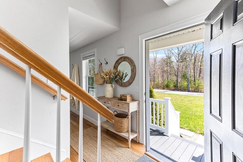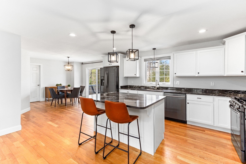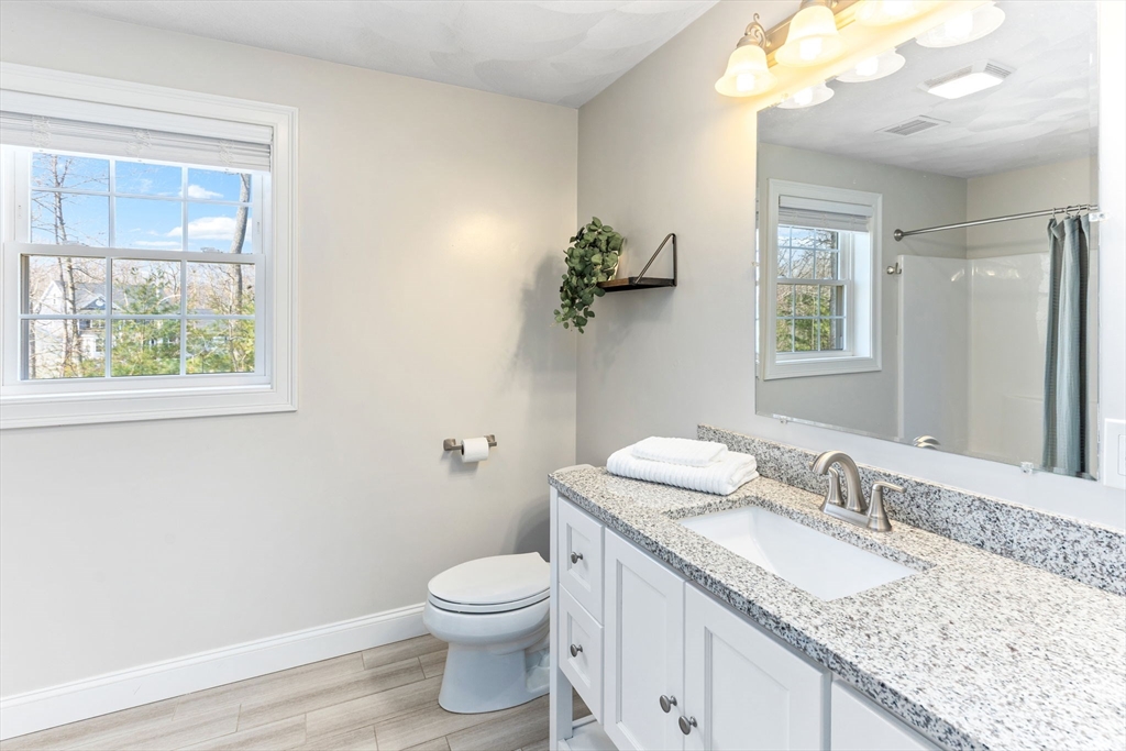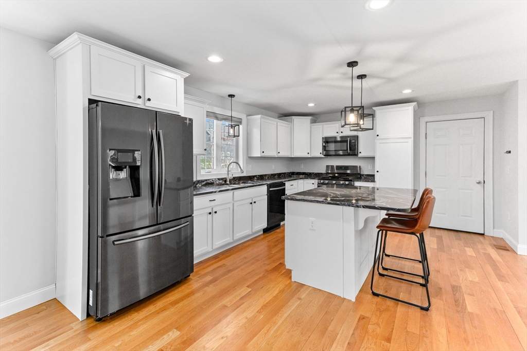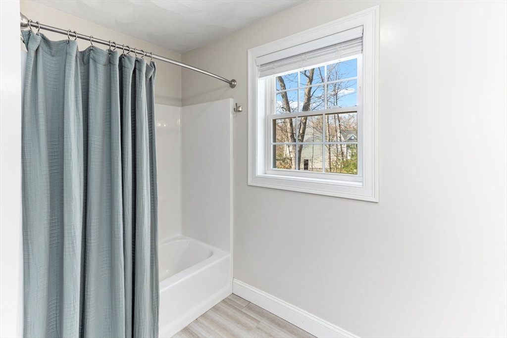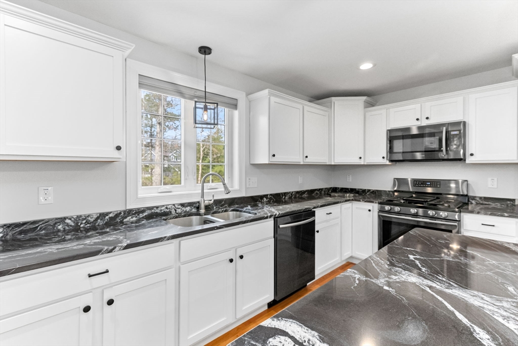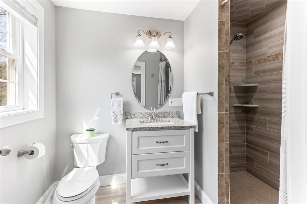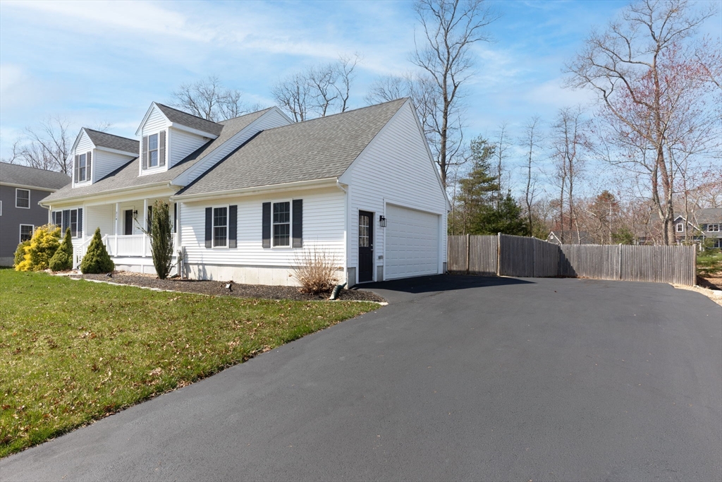 Welcome home to this stunning, better-than-new Cape offering 3 bedrooms, 3.5 baths, plus an unfinished lower level ready for expansion. The open-concept main level is ideal for entertaining with granite countertops, center island, white shaker cabinets, stainless steel appliances, and hardwood floors throughout. A slider leads to a private deck overlooking a fully fenced yard. The first-floor bedroom suite features a walk-in closet and spa-like tiled shower, perfect for guests or multi-generational living. Upstairs, the primary and second bedrooms each offer their own full bath and walk-in closet. Additional highlights include a 2-car garage, central A/C, propane heat, irrigation system in front yard, and a charming farmer’s porch. Don’t miss this exceptional opportunity! "One or more photos have been virtually staged. Property will be shown unfurnished."