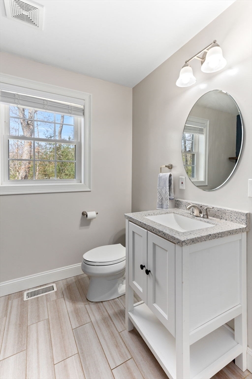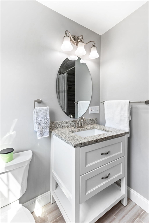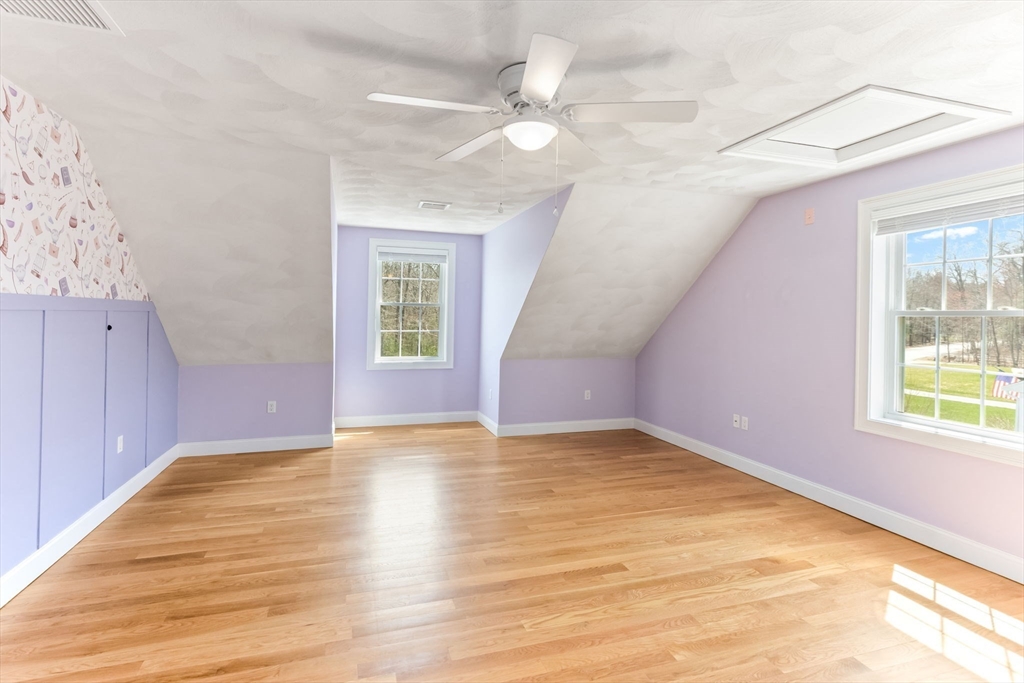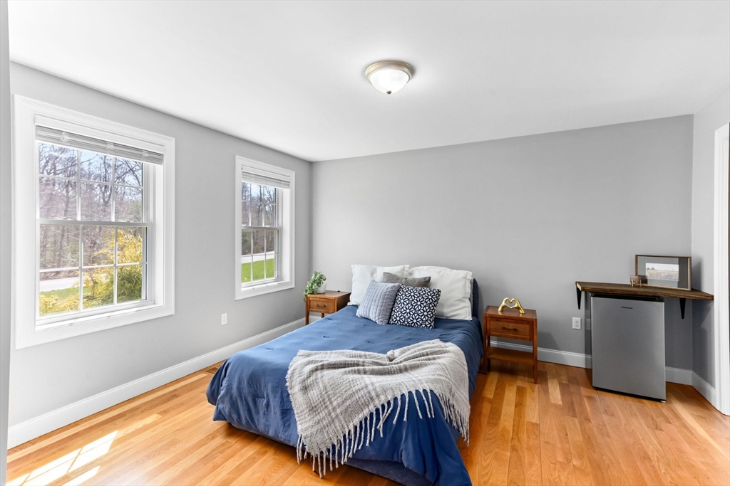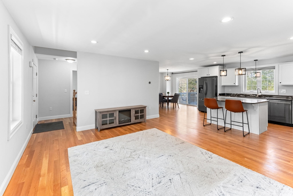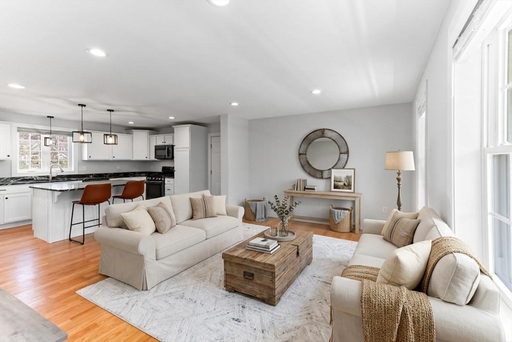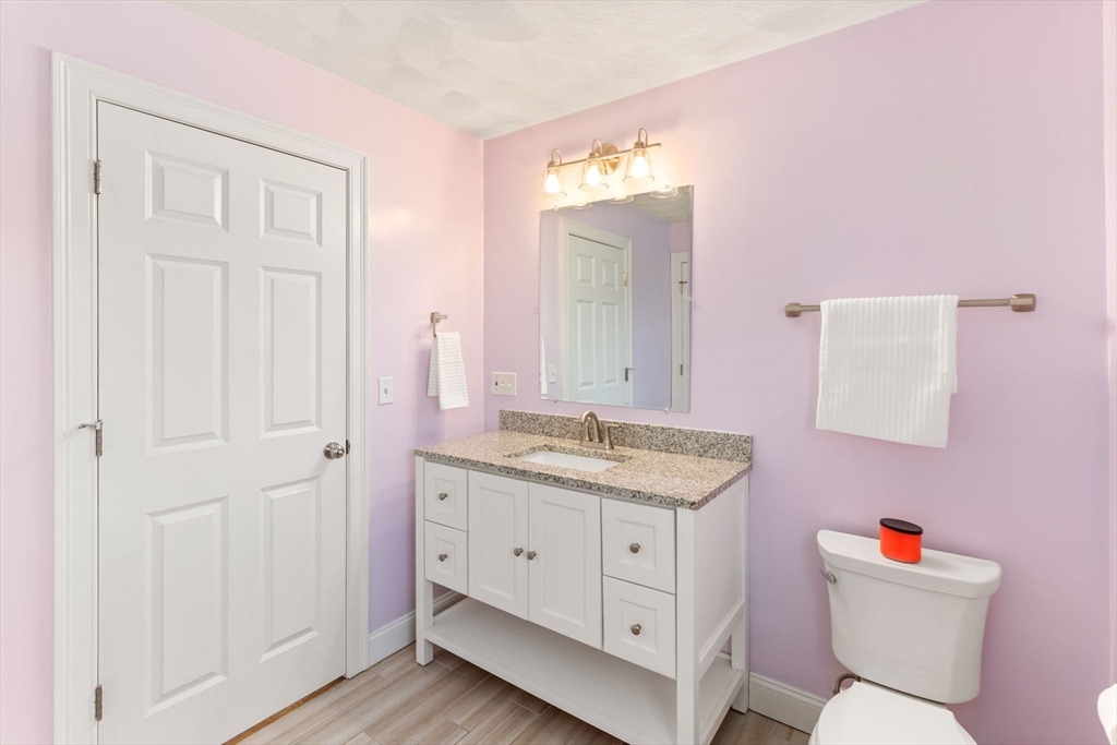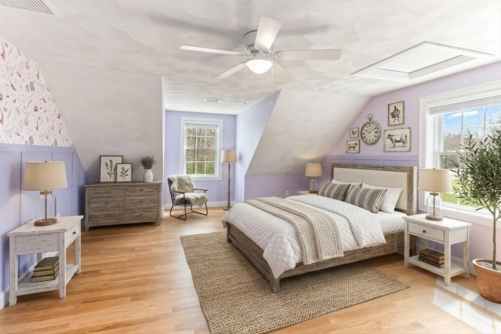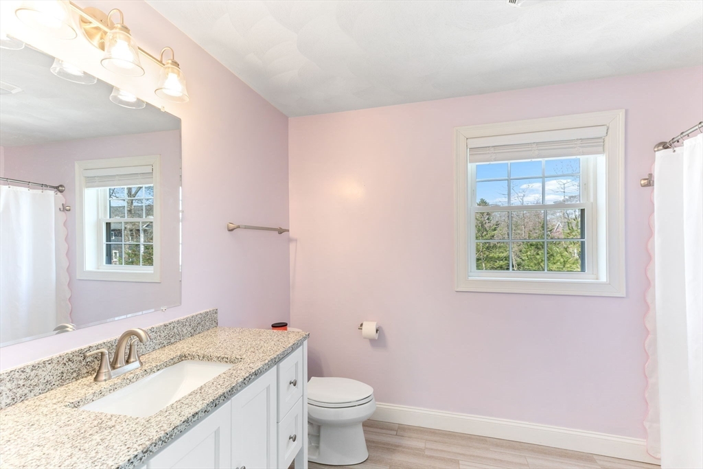 Welcome home to this stunning, better-than-new Cape offering 3 bedrooms, 3.5 baths, plus an unfinished lower level ready for expansion. The open-concept main level is ideal for entertaining with granite countertops, center island, white shaker cabinets, stainless steel appliances, and hardwood floors throughout. A slider leads to a private deck overlooking a fully fenced yard. The first-floor bedroom suite features a walk-in closet and spa-like tiled shower, perfect for guests or multi-generational living. Upstairs, the primary and second bedrooms each offer their own full bath and walk-in closet. Additional highlights include a 2-car garage, central A/C, propane heat, irrigation system in front yard, and a charming farmer’s porch. Don’t miss this exceptional opportunity! "One or more photos have been virtually staged. Property will be shown unfurnished."