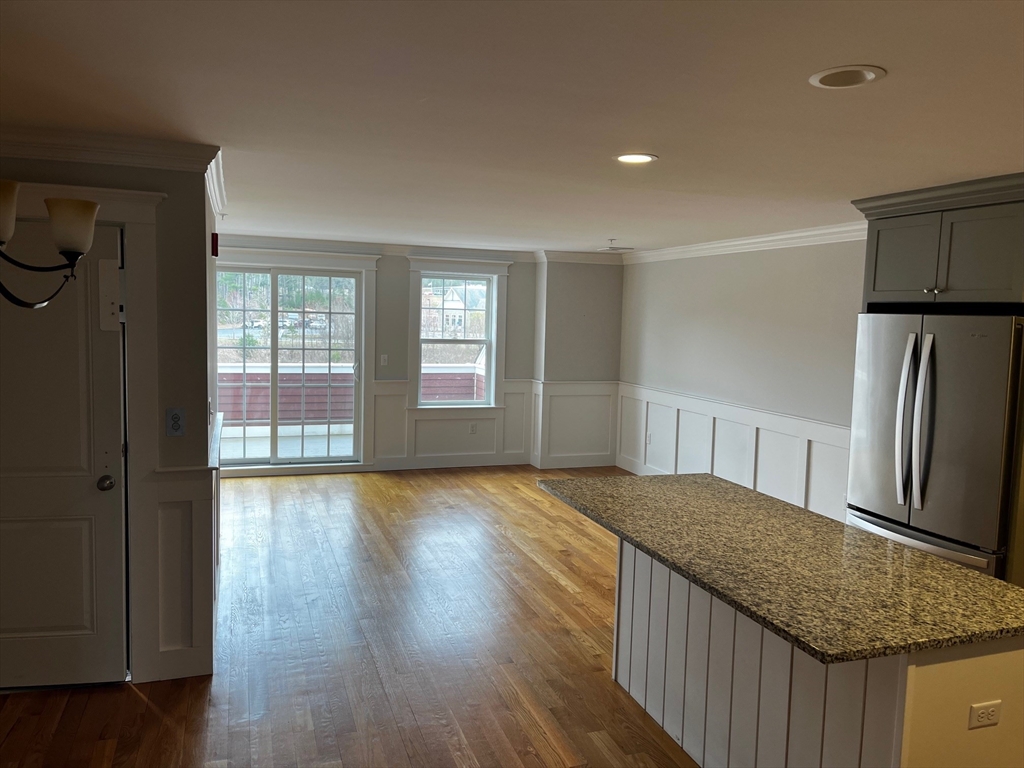 Experience luxury and convenience in this stunning 4 year old condo offering two levels of expertly designed living space. The open-concept layout showcases high-end finishes and rich hardwood floors throughout. A sleek gray and white kitchen features granite countertops, stainless steel appliances, and ample cabinetry-perfect for daily living and entertaining. The main level includes a spacious living area with custom wood work and crown molding detailing, a dedicated home office/den/3rd bedroom, and 4 private balconies/ sun decks. Upstairs, retreat to the lavish primary suite with a private full bathroom and walk-in closets. An additional den/office/bedroom and full bath. Bonus features include a one-car garage, private with storage shelving storage. Conveniently located near major highways - Live steps from restaurants, coffee, shopping, dog park, Boys & Girls Club and everyday essentials!