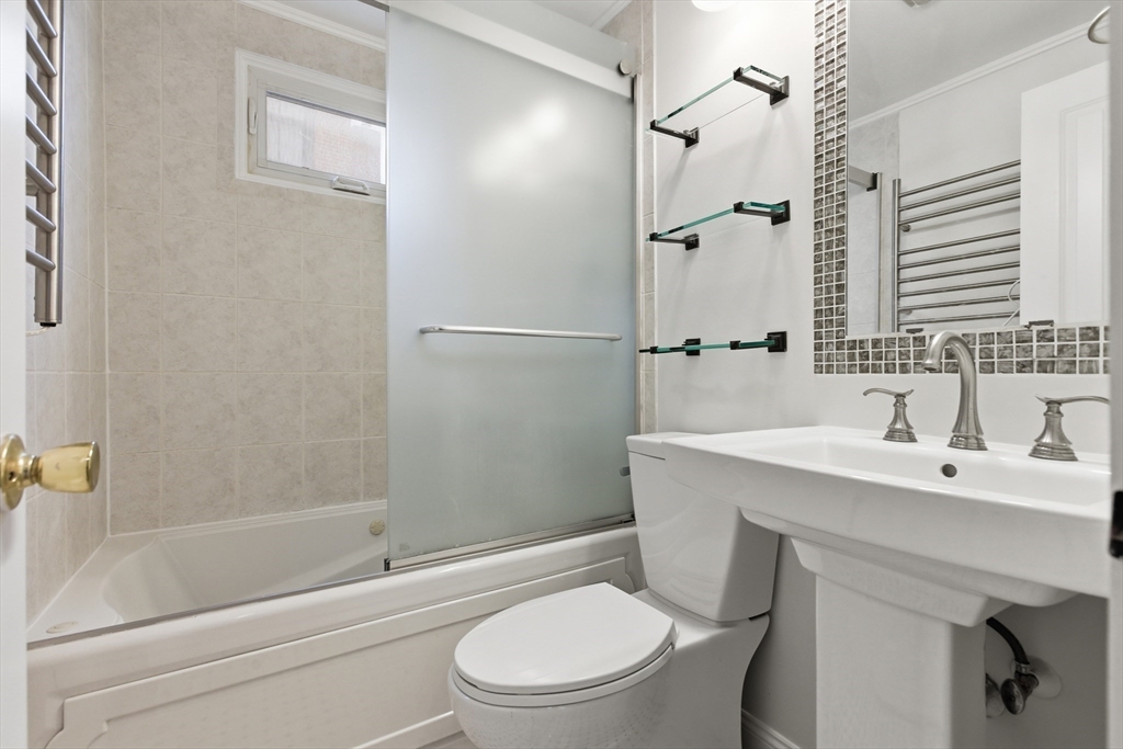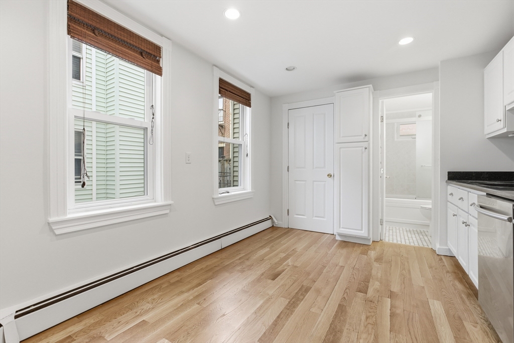 Nestled in the heart of Charlestown’s historic Gas Light District, blocks from the Tavern, near Tatte, Whole Foods, shops, restaurants, Bluebikes, public transportation, and highways—this gem is the one! Featuring newly finished wide pine floors, fresh paint, and an open layout—just bring your toothbrush! The oversized bedroom boasts a bay window and large walk-in closet. A generous living room flows into a separate dining area, rare for a 1BD. The kitchen offers granite counters, SS appliances, ample cabinetry, and space for a table. The renovated bath features herringbone marble floors and refined finishes. Private W/D, basement storage, and a common roof deck with sweeping views complete the offering. Dont' miss it!