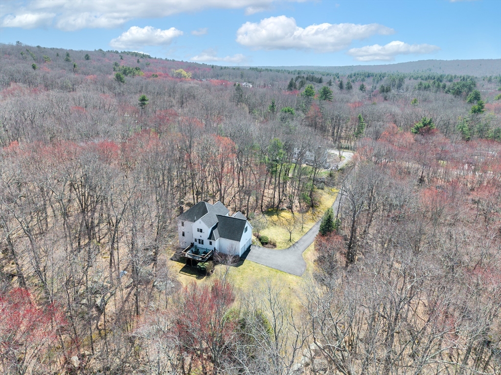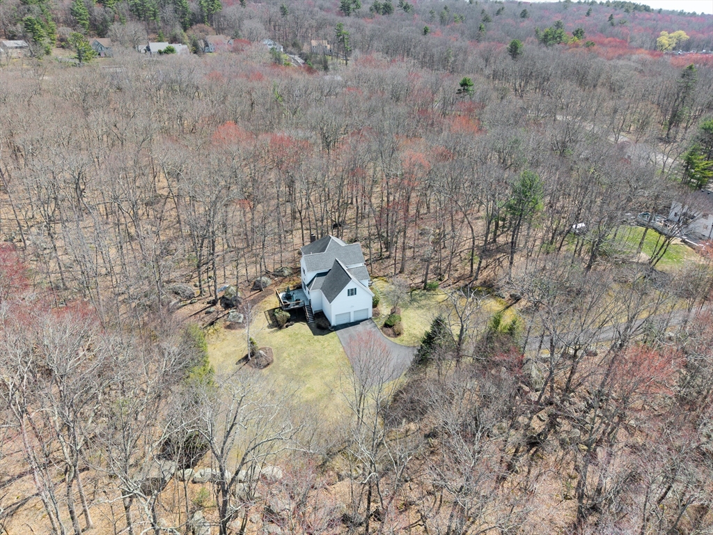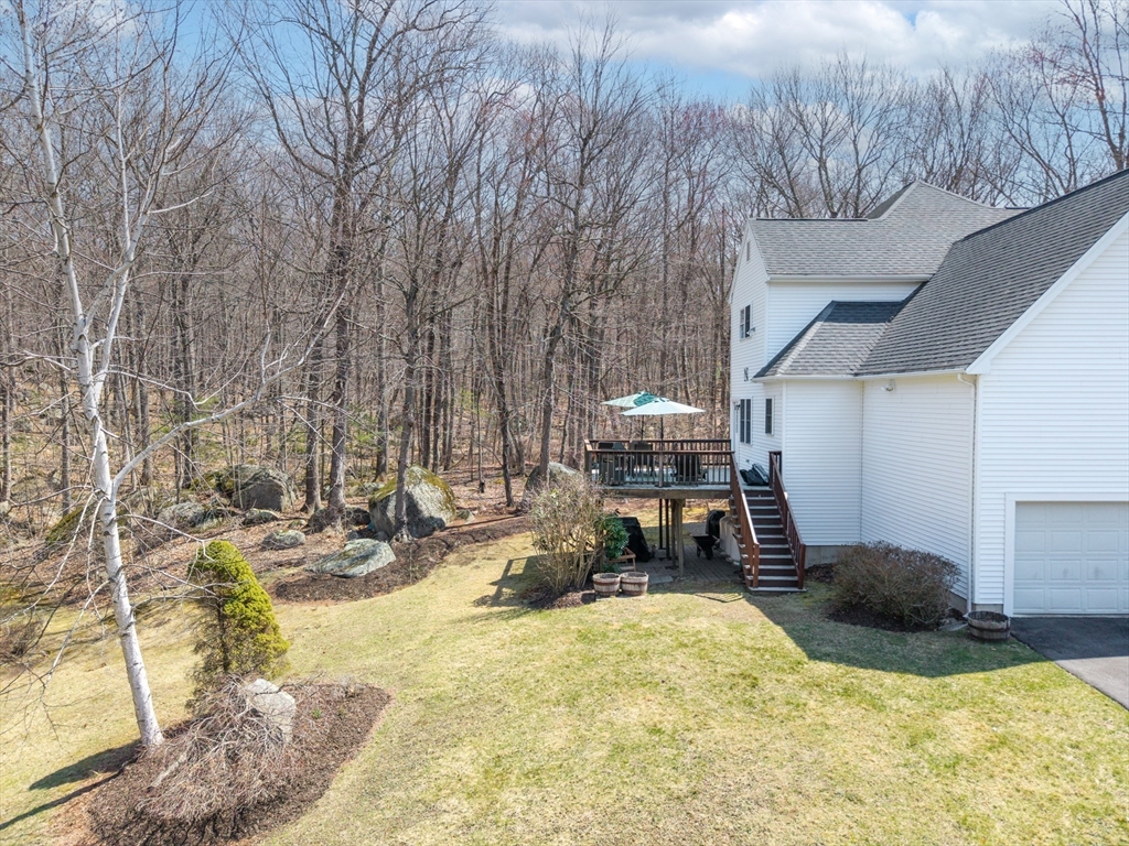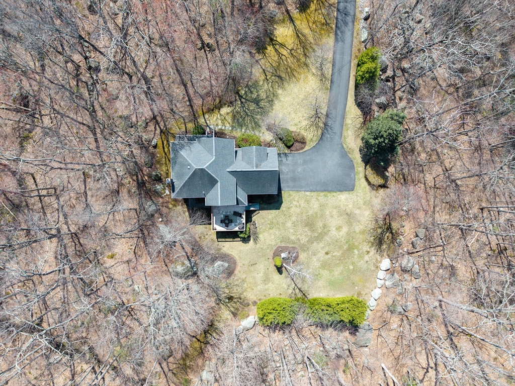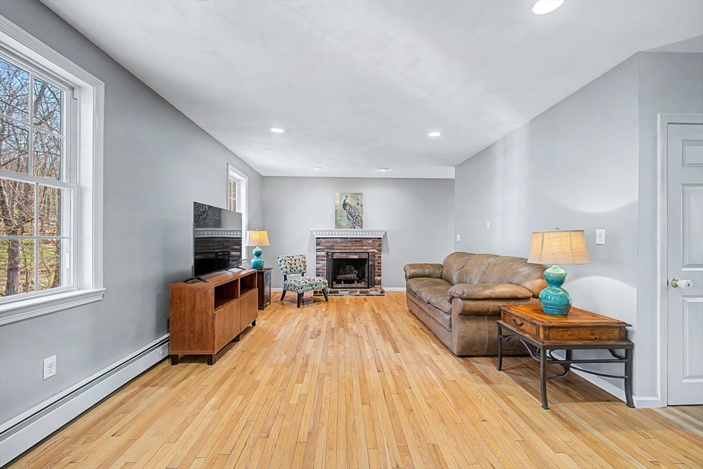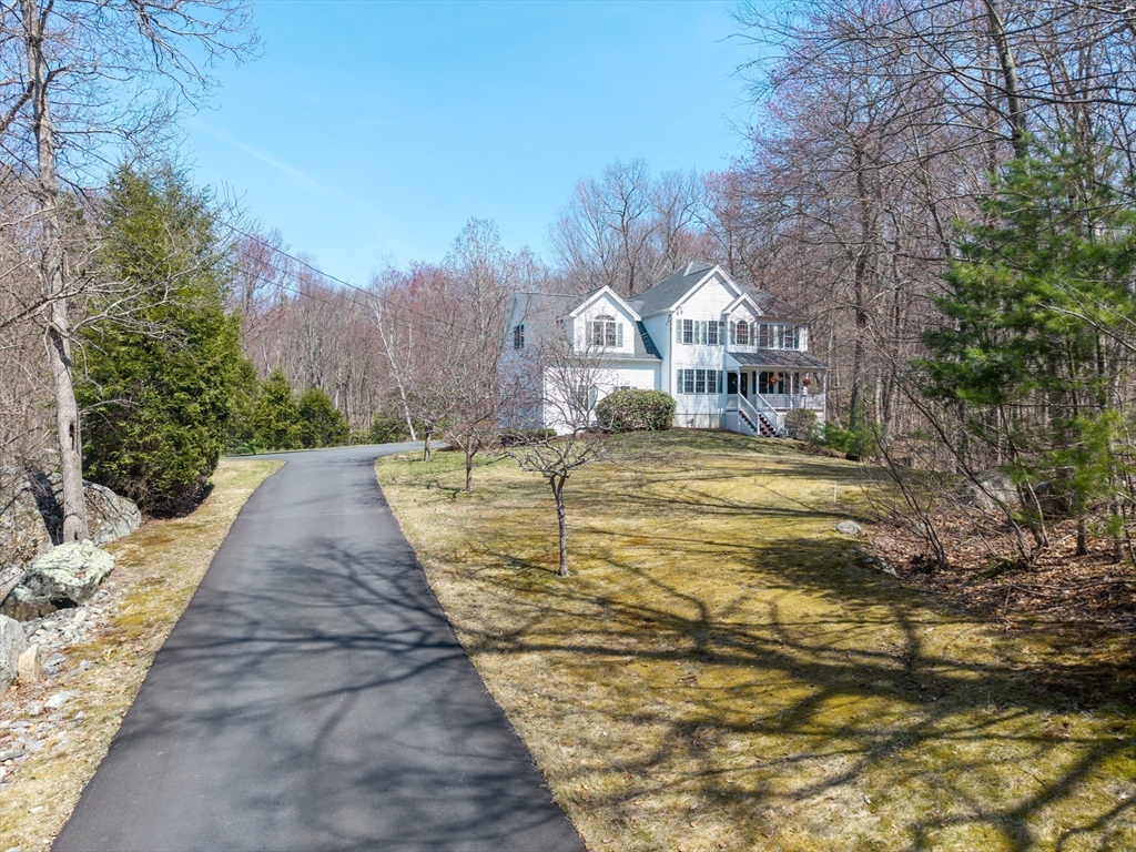 Welcome to beautiful 6 Field Pond Road nestled on two private and wooded acres! The inviting farmers' porch greets you as you enter the front door. The first floor has hardwood flooring throughout. Open kitchen and family room with views to the huge composite deck and woods behind . Kitchen has SS appliances, quartz counter tops and breakfast bar, as well as large eating area and door to deck. Family room has wood burning fire place. First floor office has bay window with window seat. Bedrooms are spacious and primary bedroom has vaulted ceiling, a lovely updated shower, ceiling fan, and a walk in closet. Lower level is a walk out to the backyard. Sellers have done major updates to the home including new high end propane heating system ( replacing former oil heat) in 2021. Driveway replaced in 2025. Newly finished basement with new half bath in 2024. New high efficiency AC units in 2023. With conservation land right behind your backyard, this home has everything!