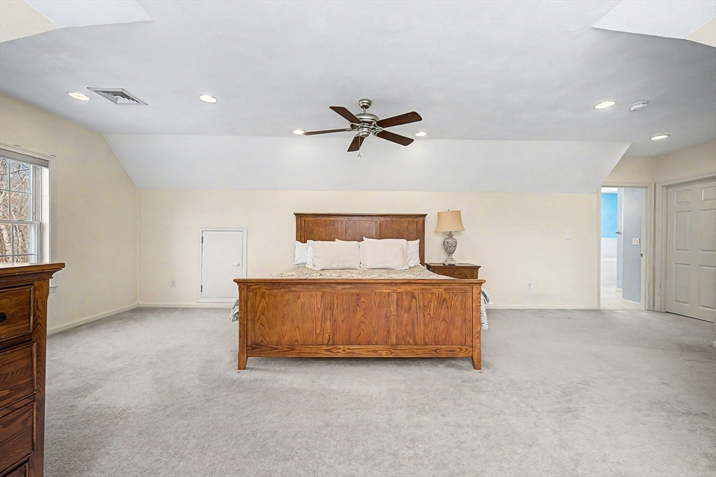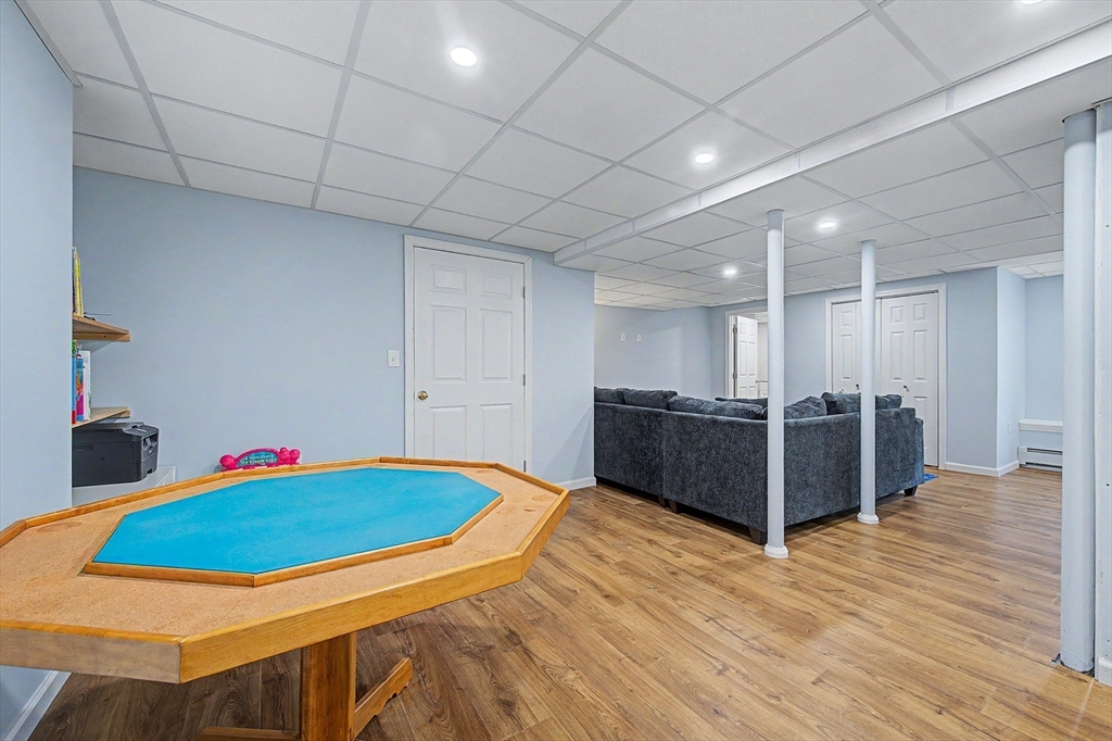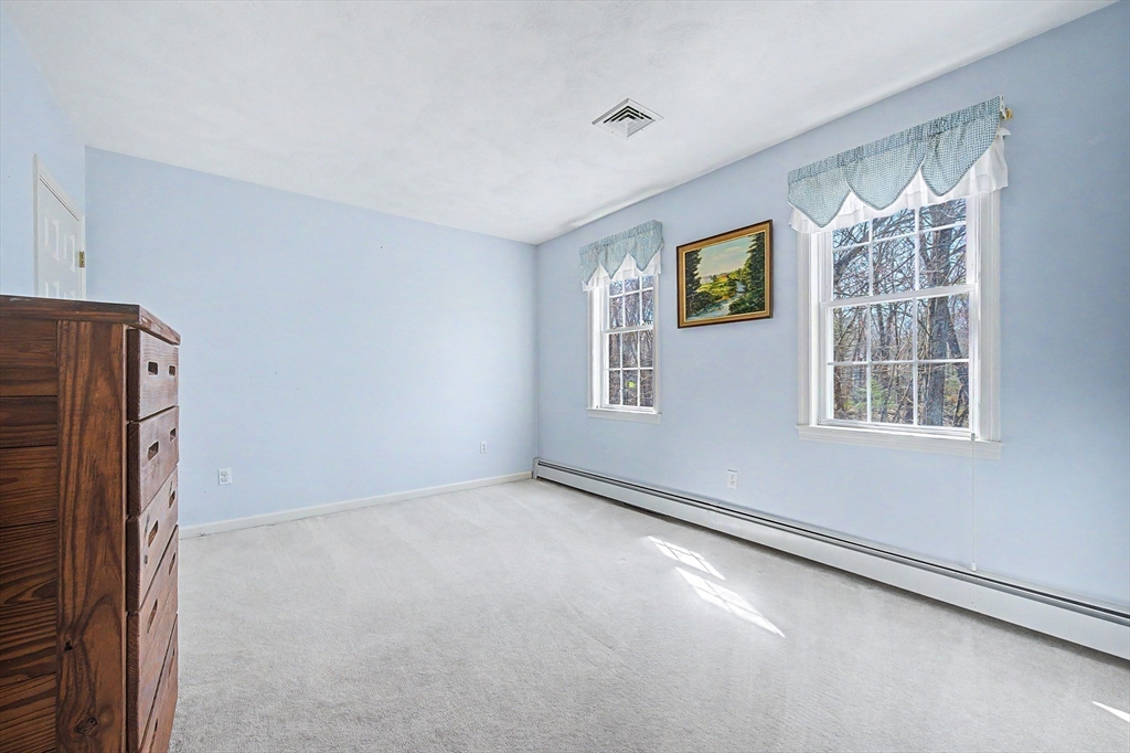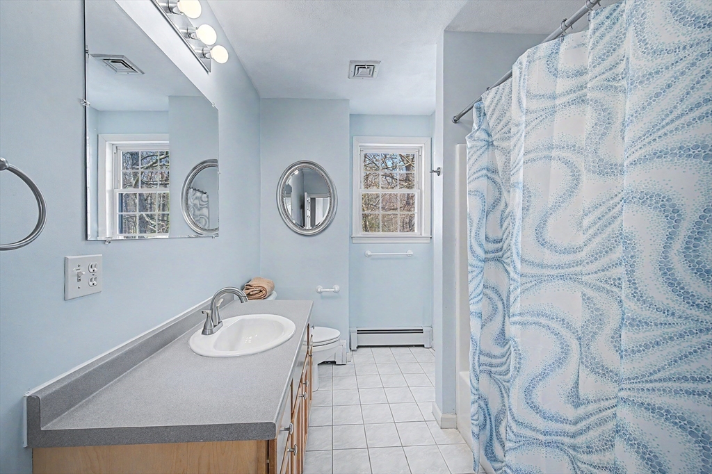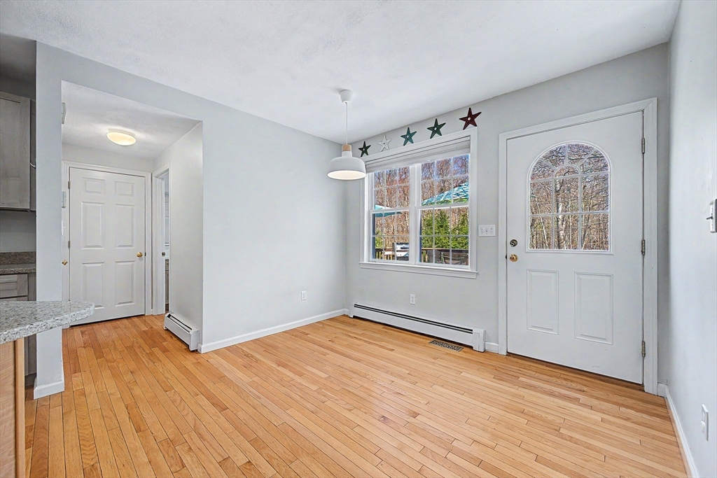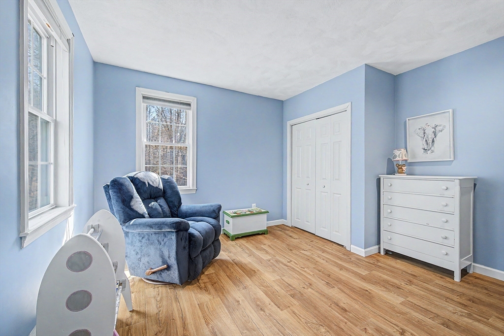Welcome to beautiful 6 Field Pond Road nestled on two private and wooded acres! The inviting farmers' porch greets you as you enter the front door. The first floor has hardwood flooring throughout. Open kitchen and family room with views to the huge composite deck and woods behind . Kitchen has SS appliances, quartz counter tops and breakfast bar, as well as large eating area and door to deck. Family room has wood burning fire place. First floor office has bay window with window seat. Bedrooms are spacious and primary bedroom has vaulted ceiling, a lovely updated shower, ceiling fan, and a walk in closet. Lower level is a walk out to the backyard. Sellers have done major updates to the home including new high end propane heating system ( replacing former oil heat) in 2021. Driveway replaced in 2025. Newly finished basement with new half bath in 2024. New high efficiency AC units in 2023. With conservation land right behind your backyard, this home has everything!