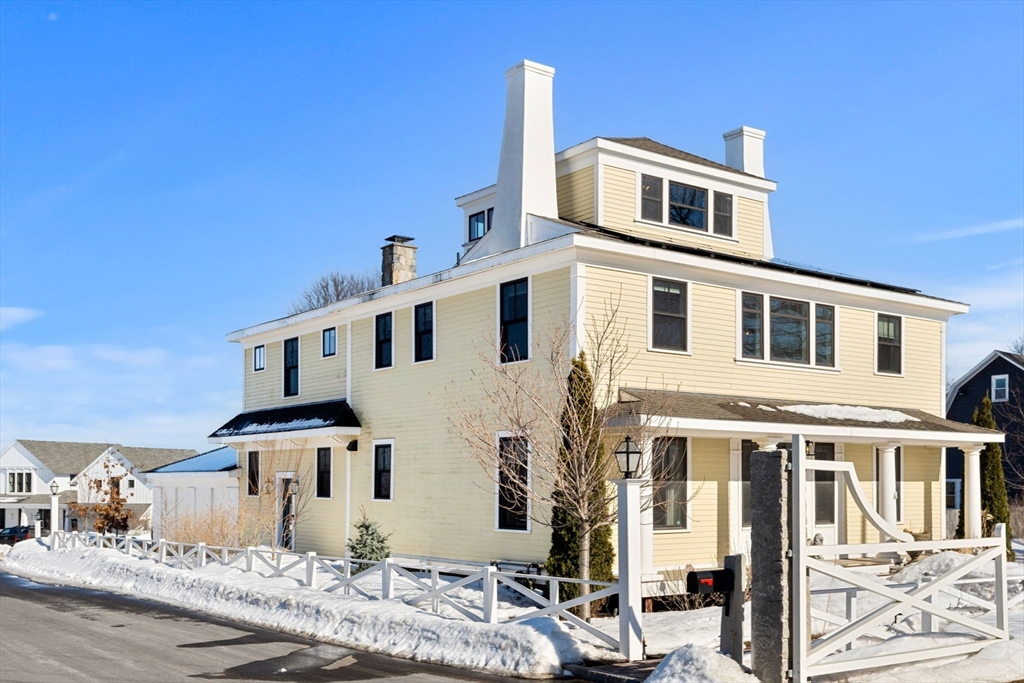 Tucked in the exclusive "Seagate" community, this Modern Coastal Farmhouse w/ Colonial Revival influence offers a well-designed layout surrounded by farmland, fields & trails. Originally built in 1825 on Grape Island, relocated & completely rebuilt in 2016, w/ extensive renovations in 2022, this 4-bed, 3.5-bath, 4,252sqft home blends character w/ luxury & energy efficiency. 1st floor features 10-foot ceilings, a chef’s kitchen, dining area, sunken living room w/ fireplace, a 1/2 bath, 2 office spaces, grand foyer & 2-car garage. 2nd floor offers 4 bedrooms, including 2 w/ ensuite baths. The vaulted primary suite includes a spa bath w/ heated floors, along w/ a private stairway leading to the 3rd-level "crow’s nest" w/ views over farmland & Plum Island. Outside, enjoy the 38'x24' inground saltwater heated pool w/ PebbleTec finish, pavers & custom pool cover, along w/ fruit trees, firepit, outdoor shower & gas lanterns. Fully owned $70K solar system & whole-house water filtration system.