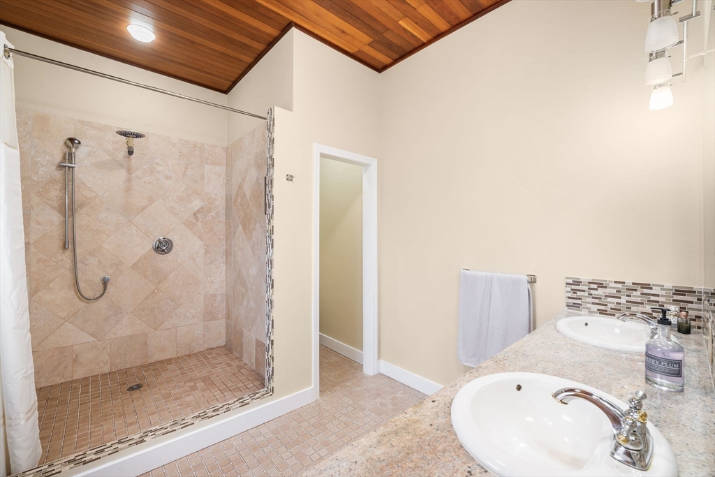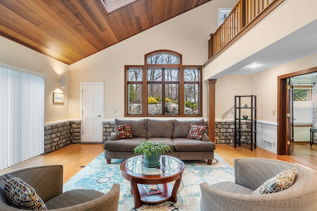 Set at the end of a cul-de-sac, conveniently close to schools,local shops,theaters,& restaurants this 4 BR,3.5 bath home offers a harmonious blend of comfort combined with contemporary design. The expansive sunlit living room is a true centerpiece,featuring 6 skylights,multiple seating areas, a dining area plus a gas fireplace with a striking stone facade.Glass french doors lead to a cozy family room with a raised hearth fireplace. The renovated kitchen with stunning quartz counters, tile backsplash,& stainless appliances offers a large center island, perfect for casual dining or a morning cup of coffee, plus there is a separate dining alcove. A spacious mudroom, with a 1/2 bath leads to the attached garage. Upstairs, a balcony over looks the living room, continuing the overall sense of openness. This floor features an ensuite primary bedroom with oversized shower, a guest room with a second ensuite bathroom,plus 2 bedrooms with shared bath. Extensive landscaping enhance the exterior.