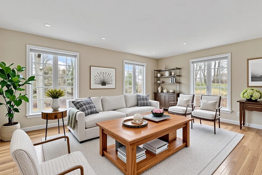 Striking curb appeal meets serene, pastoral beauty in this exceptional Center Hall Colonial, ideally situated on 2.33 acres across from Scorton Creek off of idyllic 6A. The property is a true retreat, featuring an in-ground pool, meandering stone walls, extensive hardscape, and lush landscaping poised to bloom with vibrant spring color. Inside, the home is filled with natural light and timeless charm. The thoughtfully designed first floor offers a graceful flow, highlighted by dual living rooms, gleaming hardwood floors, and three wood burning fireplaces that create warmth and character throughout. A versatile separate wing with its own driveway and entrance provides flexible living options--perfect for a first-floor primary suite or private workspace. The sunny, renovated kitchen overlooks the expansive backyard and pool. Adding even more flexibility, the detached two-car garage includes finished space above and a propane powered whole-house generator. An opportunity not to be missed!