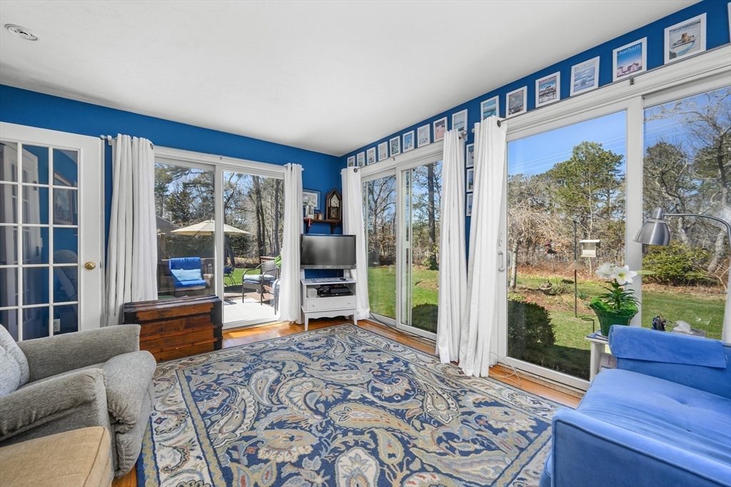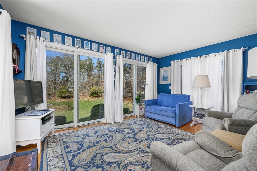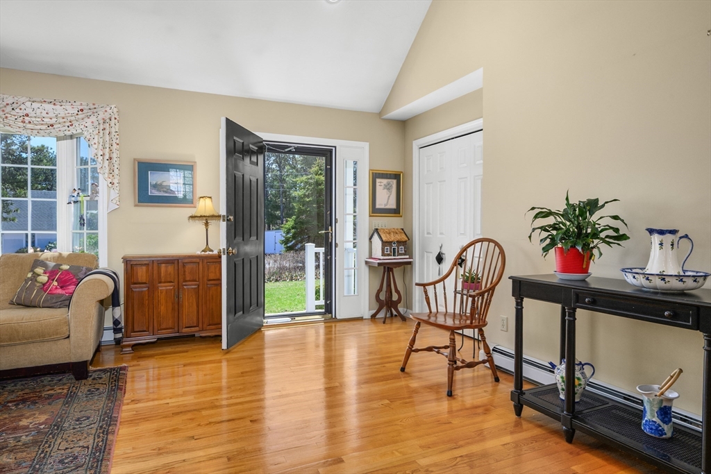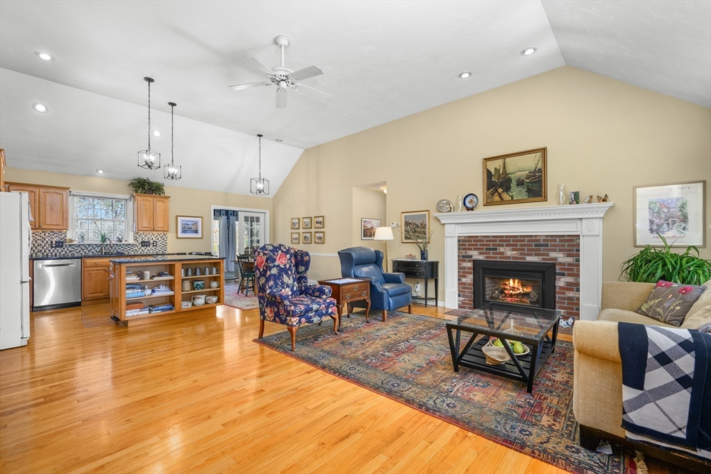 A distinctive lifestyle begins its unfolding at 58 Tirrell's Way. This ranch style residence, constructed in 2001, offers a blend of comfort and easy maintenance all set on impressive .67 Acre level lot. The residence thoughtfully encompasses open plan living area, providing a relaxed concept of living/ dining and kitchen with cathedral ceiling, gas fireplace, gleaming hardwood floors and pretty bay window. The kitchen has granite countertops and a center island great for entertaining leading to a cheery Sun room at rear with deck, awning and patio plus outside shower. Within this generous footprint, 2 private bedrooms serve as tranquil havens, each designed for comfort and relaxation. The primary ensuite bath has oversize shower and double vanity sinks. Guest bath has jacuzzi and all tile floors. The 1st FL laundry also includes a pantry. The single car garage has attic storage above. The lower level has a heated finished recreation/hobby, or home office room with ample storage.