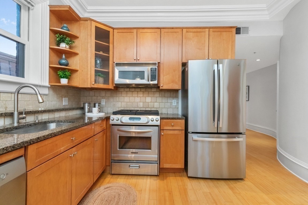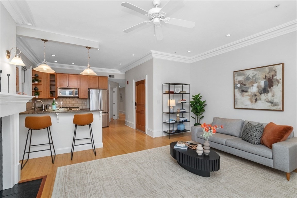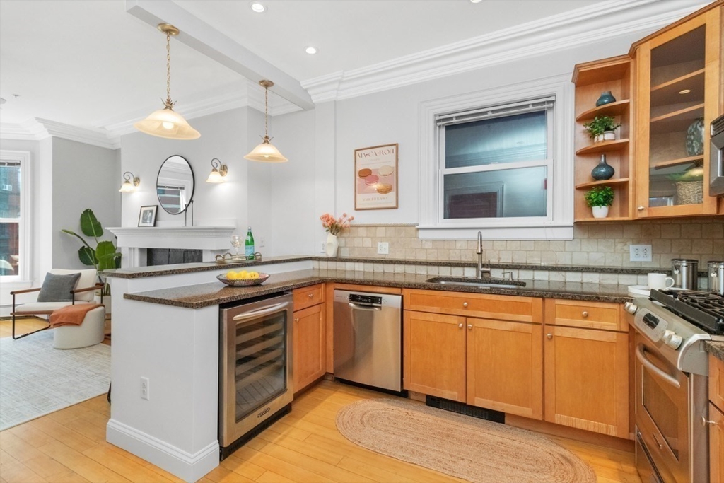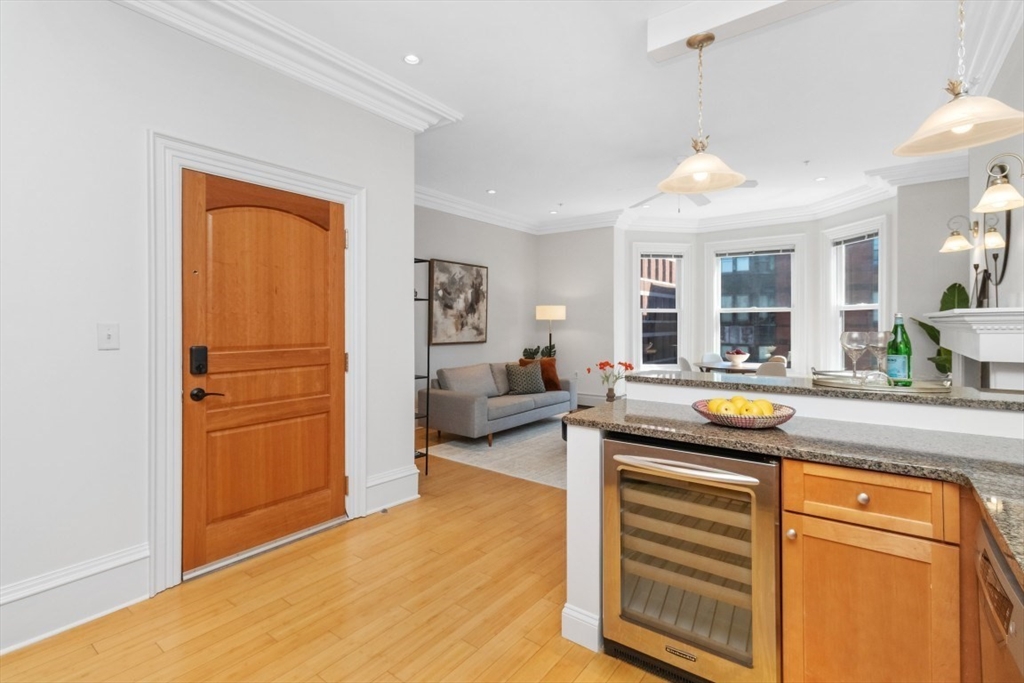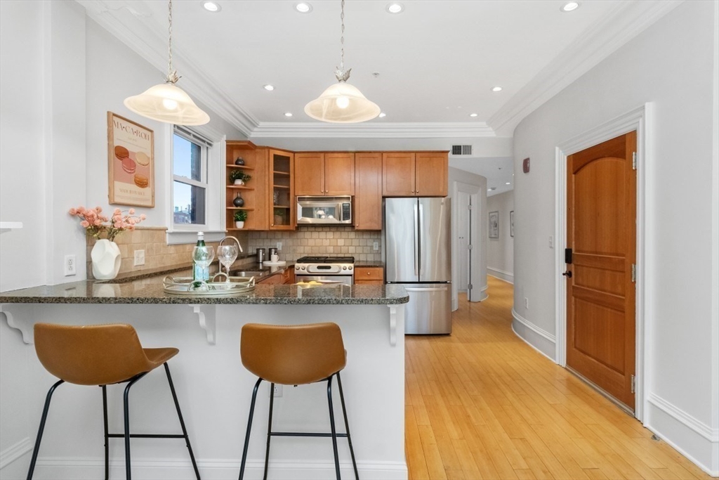 Modern renovated 2-bedroom condo with Charles River views in prime Back Bay location between Beacon & Marlborough. This bright, elevator building home offers an ideal open layout for today’s lifestyle. Gut-renovated in 2016 with high-end finishes including hardwood floors, recessed lighting, crown molding, and central A/C. Spacious living room with bay window showcasing river and Back Bay skyline views. Chef’s kitchen features shaker cabinetry, granite countertops, breakfast bar, and stainless-steel appliances including gas range, French-door refrigerator, beverage fridge, and built-in microwave. Spa-like bath with floor-to-ceiling tile and in-unit washer/dryer. Steps to the Esplanade, Newbury Street, Prudential Center, Fenway, and top universities including Berklee, BU, Northeastern, and MIT. Easy access to Green Line (Hynes), #1 bus to Harvard, Mass Pike & Storrow Drive. Pet-friendly building.