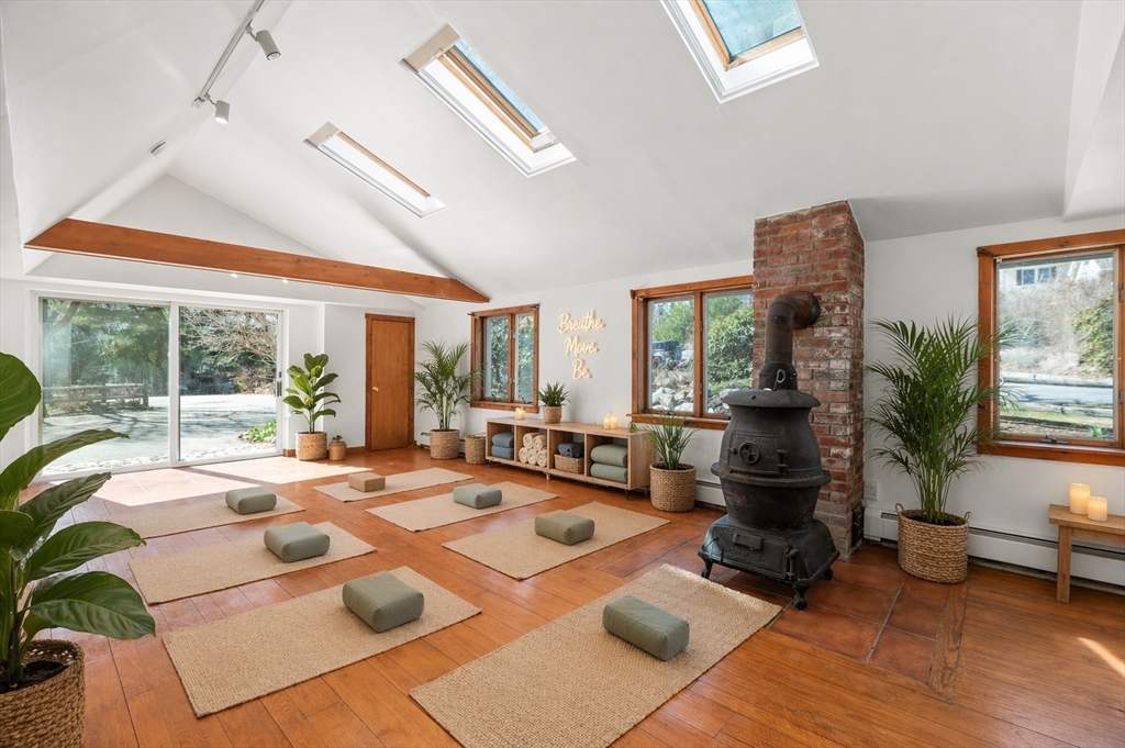 Extraordinary two-family property complete with an additional lot for privacy and featuring space for an artist studio, yoga studio. Many possibilities! Surrounded by rolling greens, mature trees, and a magical garden setting, this one of a kind offering overlooks West Pond and captures the essence of refined coastal living. The main home showcases soaring vaulted ceilings, an open floor plan, and a charming loft, while the separate apartment offers its own entrance, full kitchen, and full bath, ideal for guests, extended family, rental income, or a private work-from-home setup. Perfectly positioned between downtown Gloucester and Manchester, just moments from the ocean, beaches, shops, and restaurants, and only 22 minutes from Beverly Regional Airport. With three distinct spaces including the main house, legal apartment, and studio, this special property offers rare flexibility, character, and opportunity. A truly unique Cape Ann retreat with endless possibilities ahead.