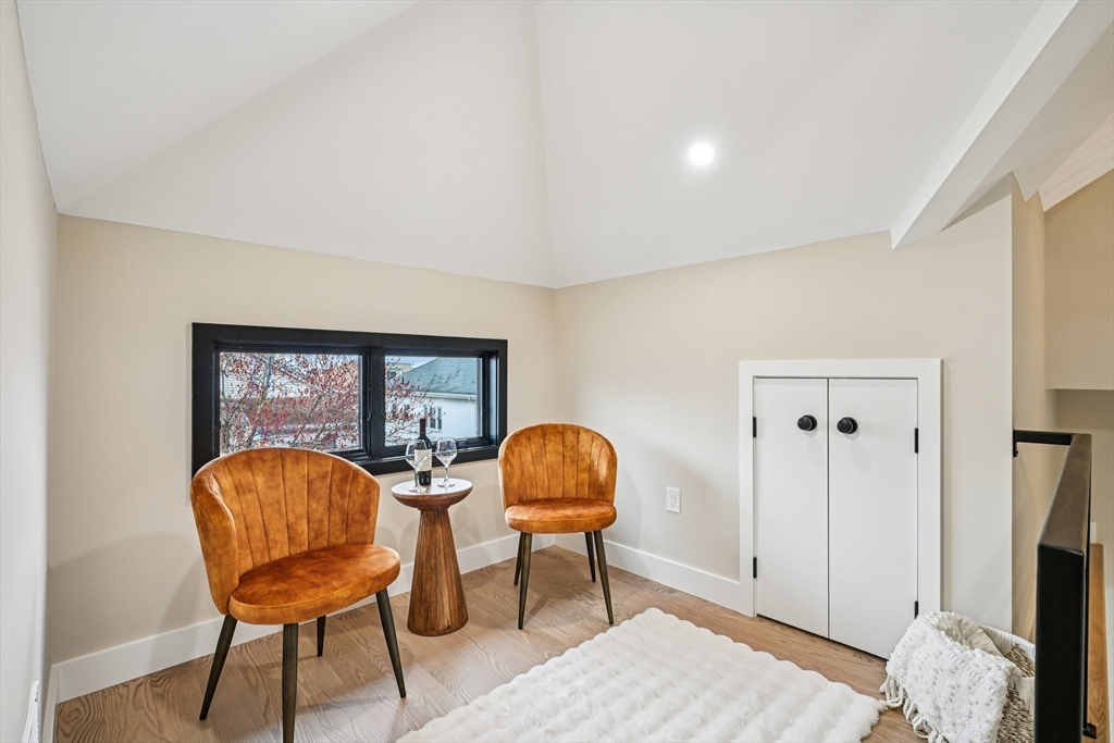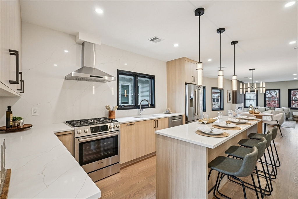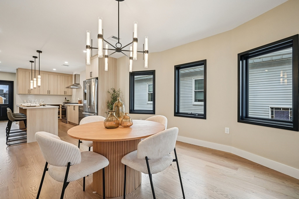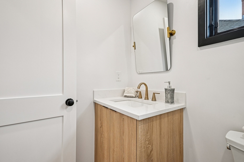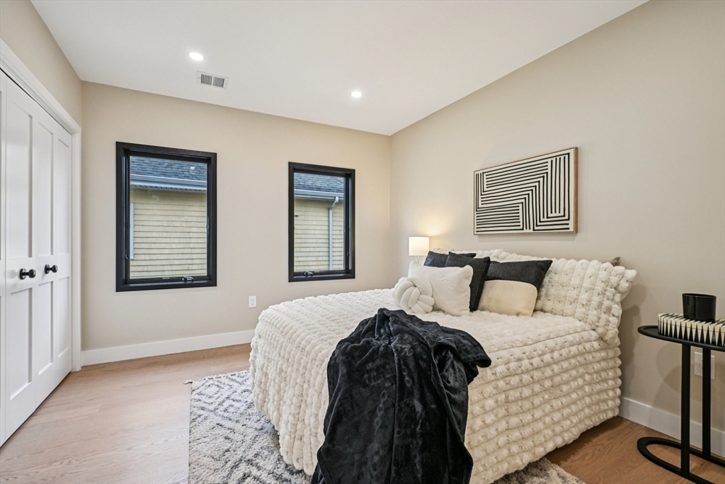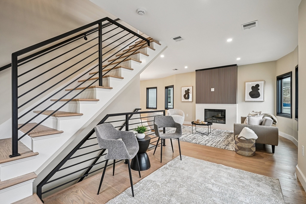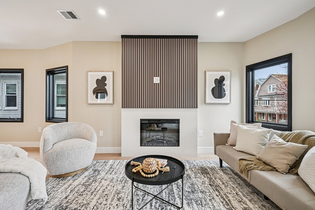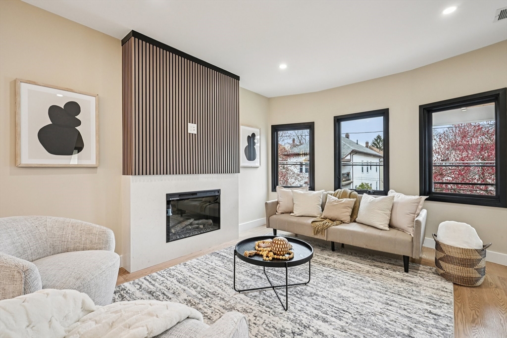 Stunning new 3BR residence with luxury finishes in sought-after Medford, just minutes from Tufts University and Boston. The open-concept layout seamlessly connects the living, dining, and gourmet kitchen, featuring quartz countertops, custom cabinetry, and stainless steel appliances. Hardwood floors and oversized windows fill the home with natural light. The private 3rd-floor primary suite offers a spacious sitting area, fireplace, and spa-inspired bath with its own fireplace—creating a true retreat. Two additional bedrooms are located on the 2nd level. 2.5 baths, in-unit laundry, private deck, front balcony, and 1 off-street parking. Exceptional turnkey living in a prime location.