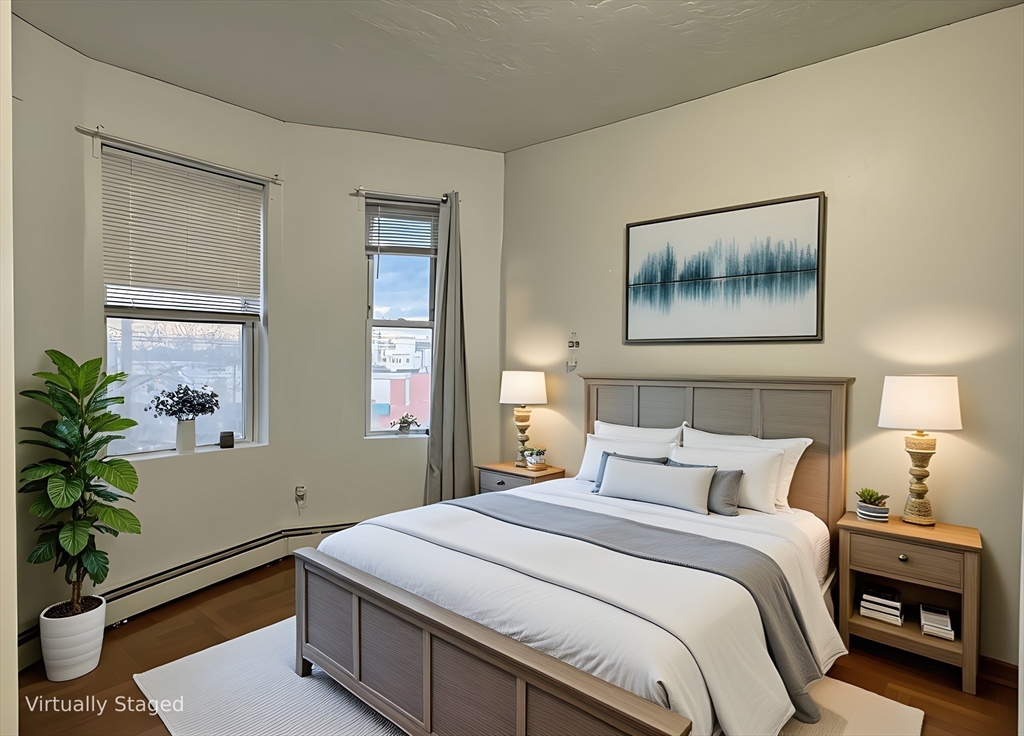 Large three-bedroom, one bath on the third floor for rent! The unit features hardwood floors, an updated kitchen and living room, high ceilings, a gas-on-demand combi system for heating and hot water, and gas cooking. Just a few blocks to the Greenway, Maverick T, Bremen St. Park, Central Square shops, groceries, restaurants, and more—15 mins to downtown by train. The apartment is ready for occupancy on May 1, 2026.
